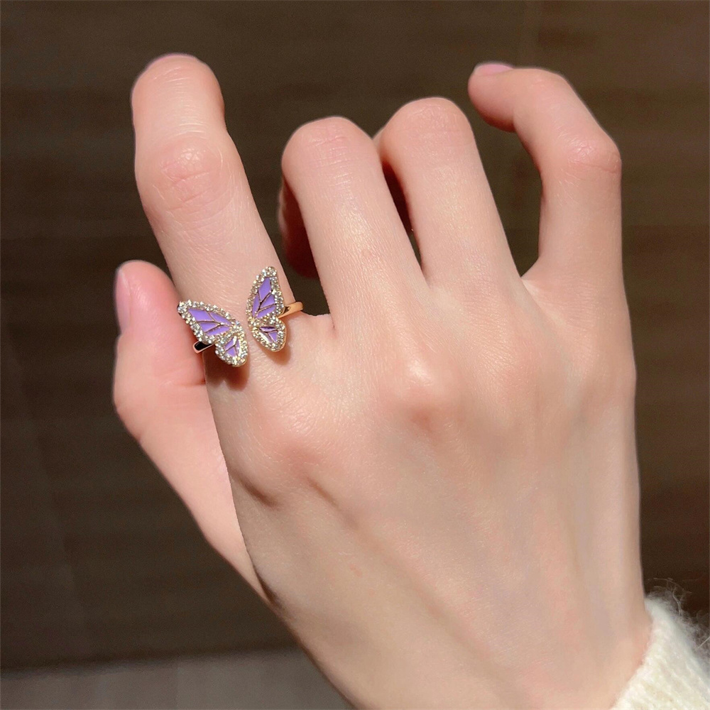 彩色滴釉珐琅蝴蝶戒指女紫色小众轻奢风设计高级感指环百搭不掉色