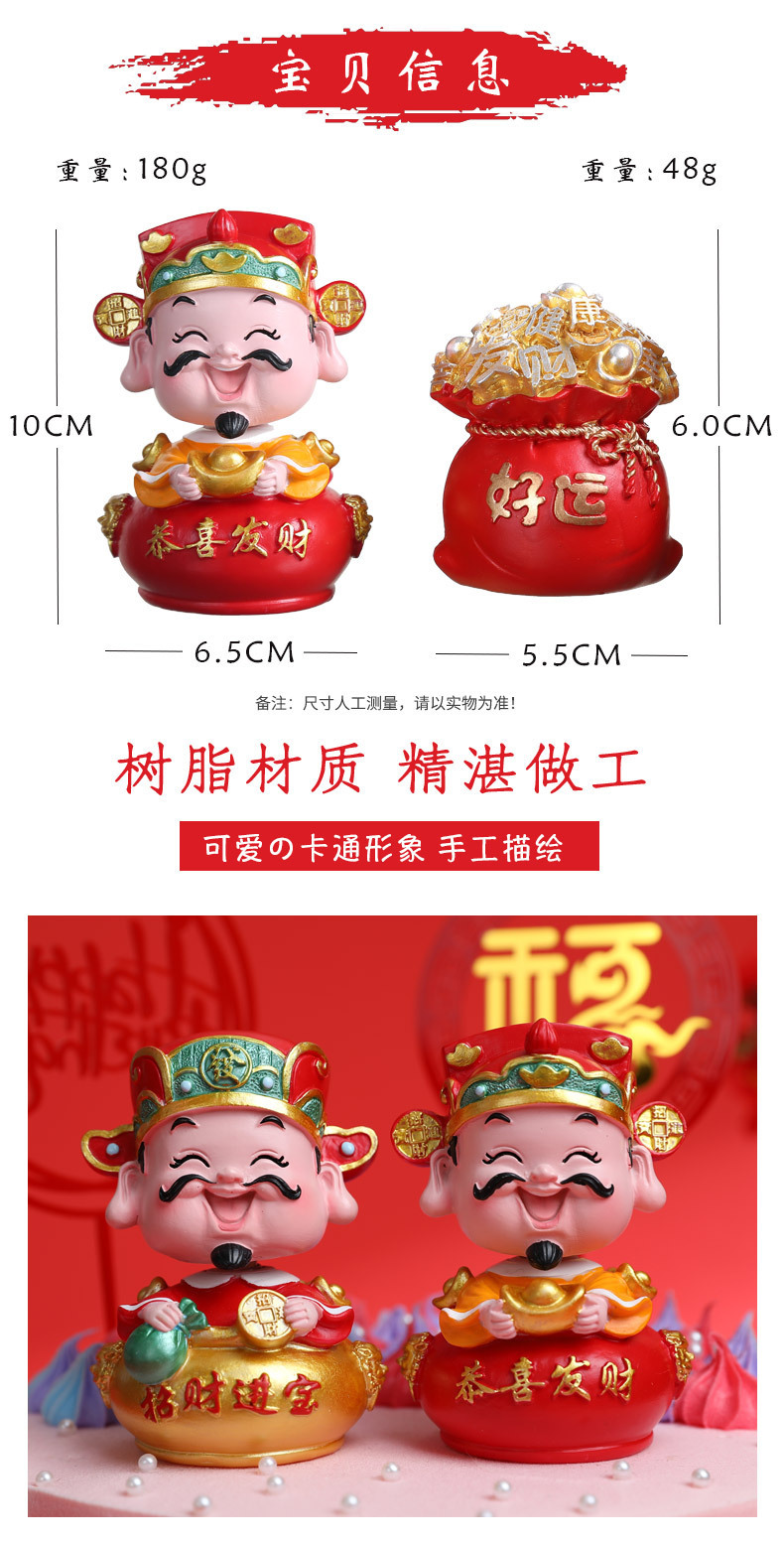 汽车小摆件摇头财神创意车载中控台可爱车内装饰品大全树脂工艺品