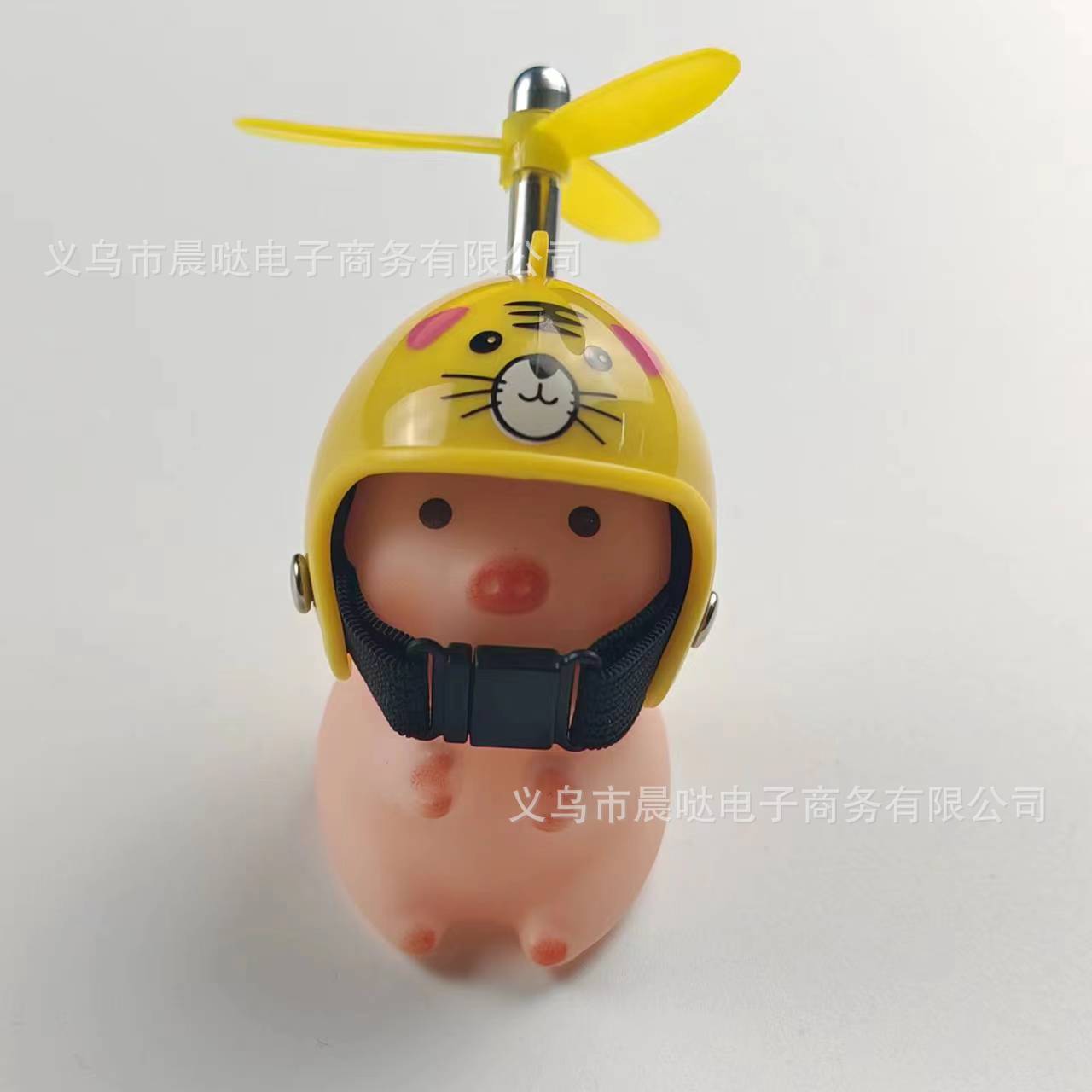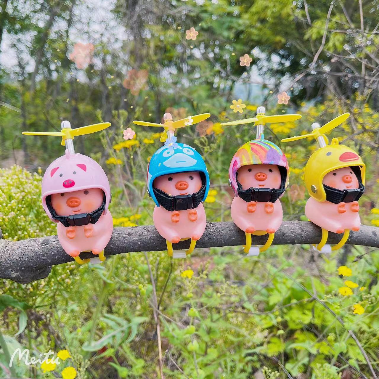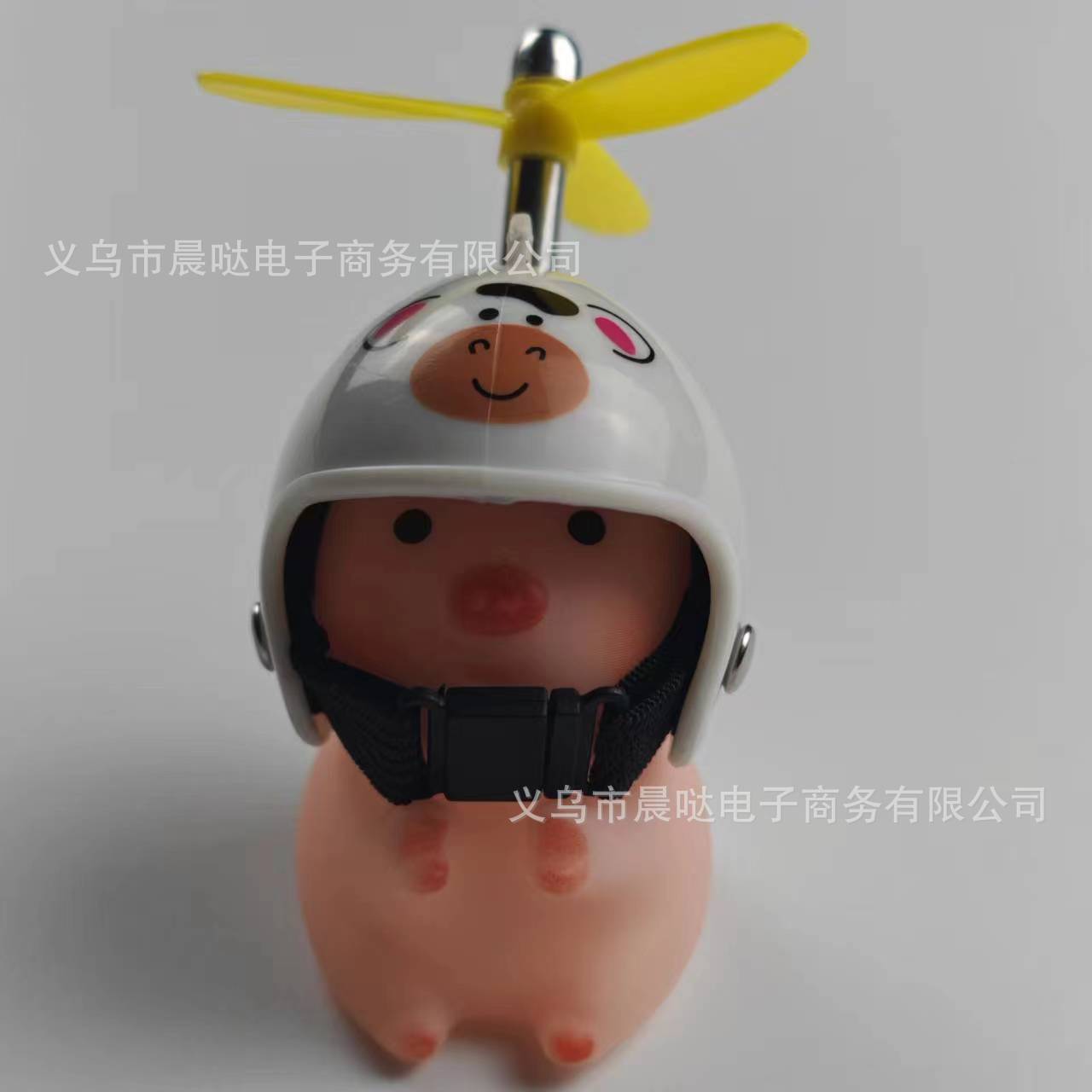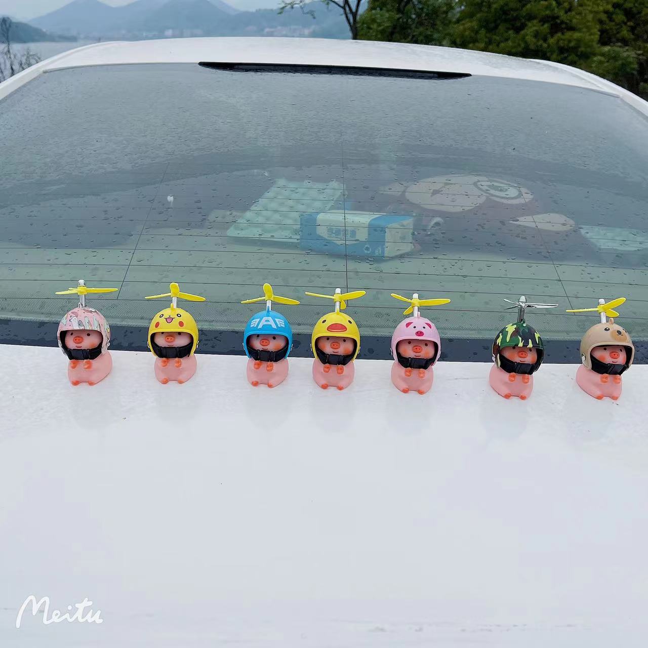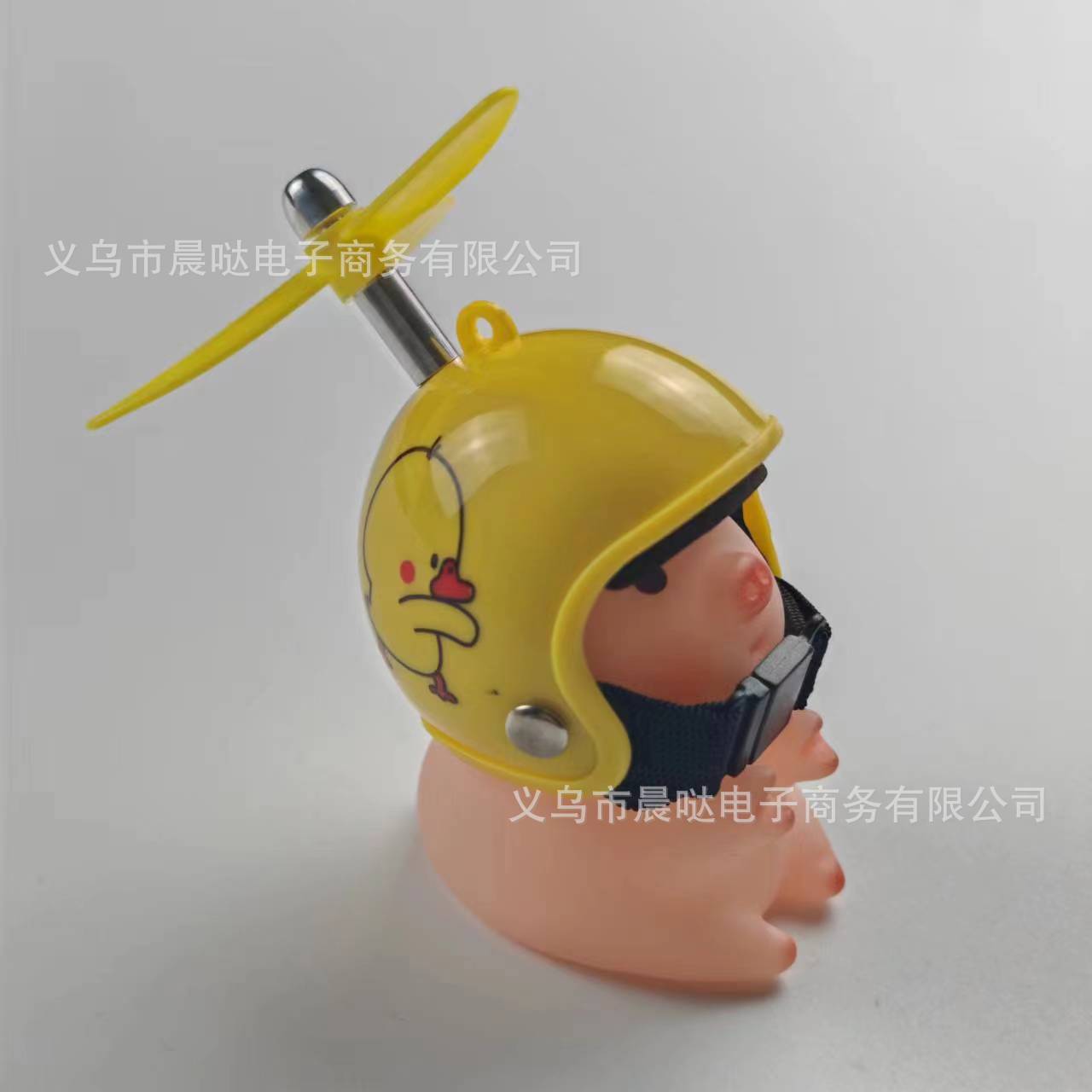 网红小猪车载摆件电动车小黄鸭装饰品头盔竹蜻蜓摩托车破风鸭公仔