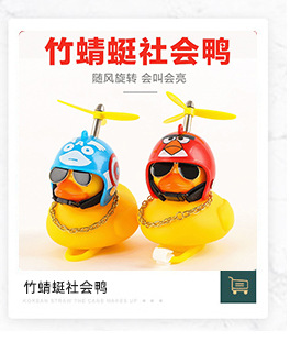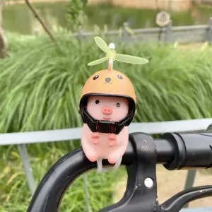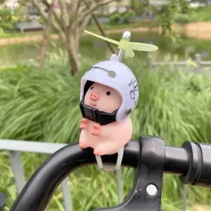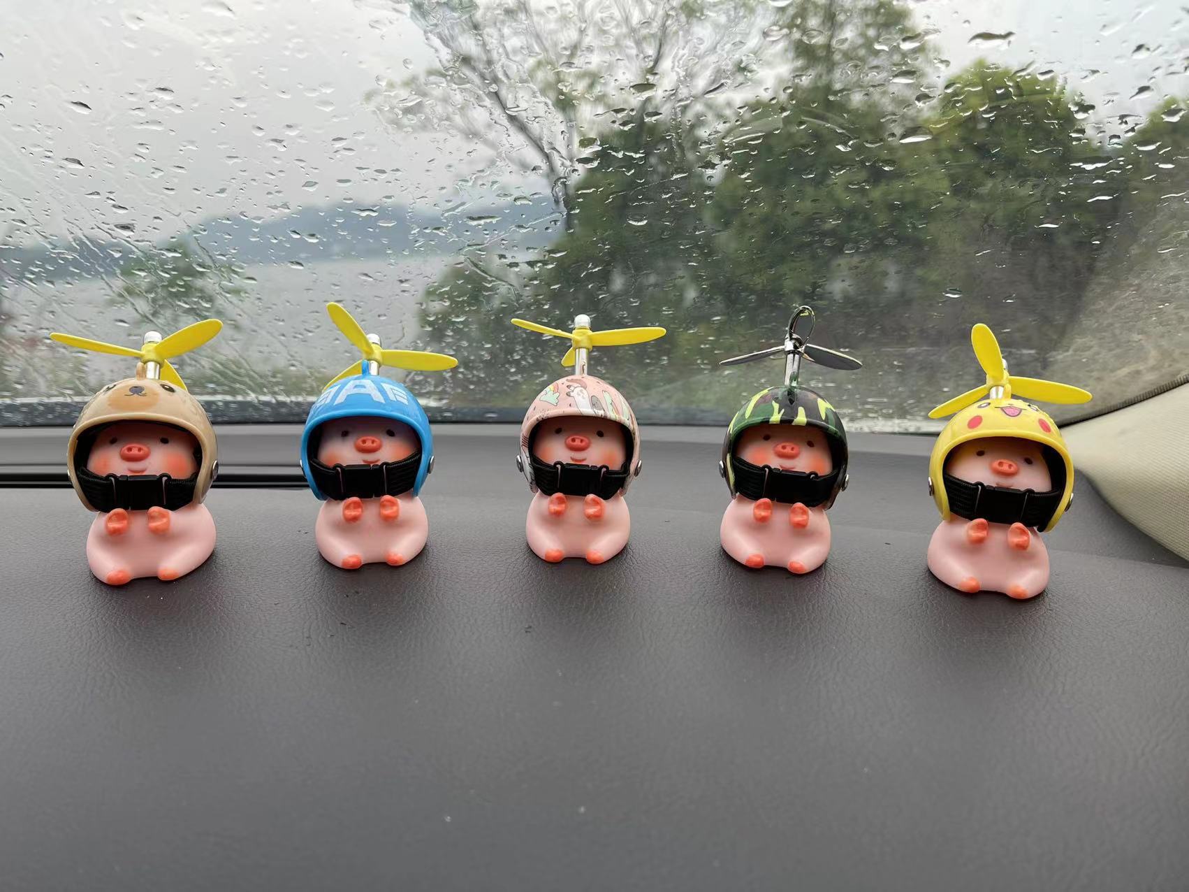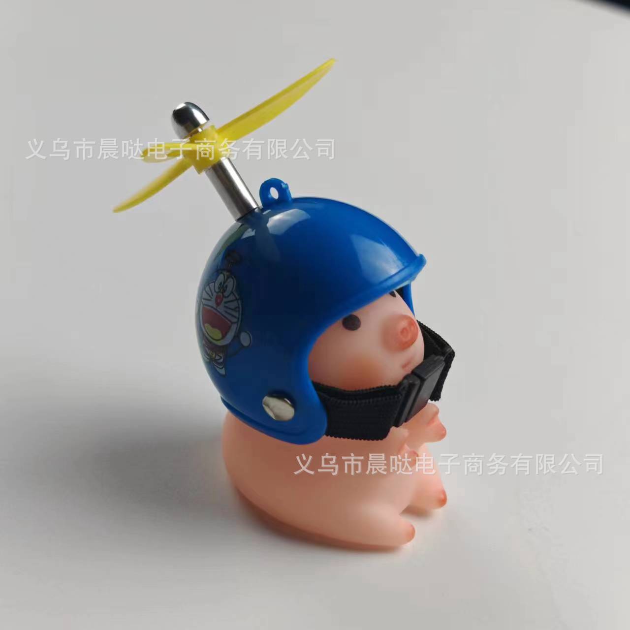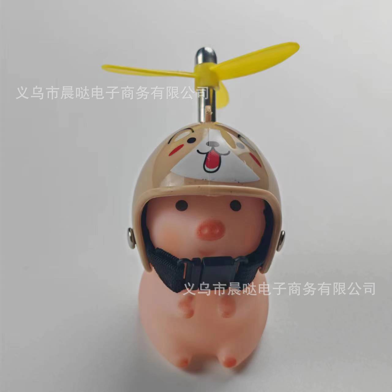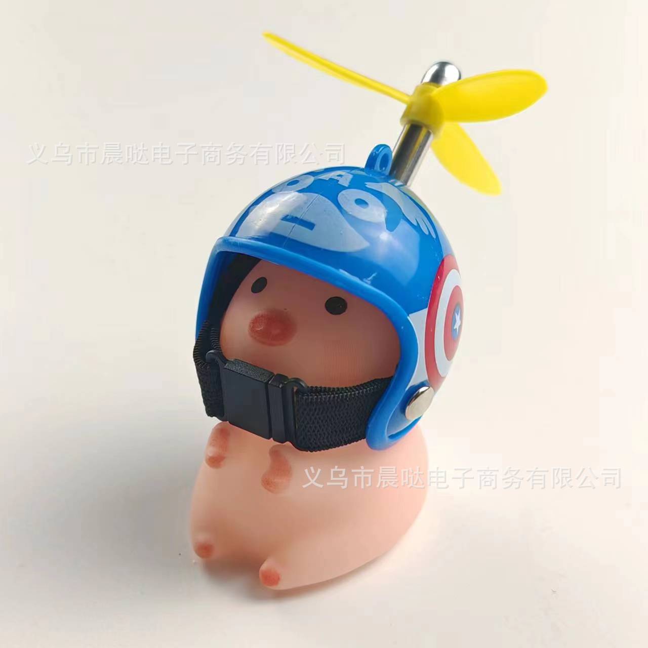 网红小猪车载摆件电动车小黄鸭装饰品头盔竹蜻蜓摩托车破风鸭公仔