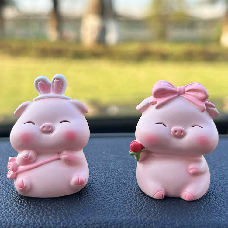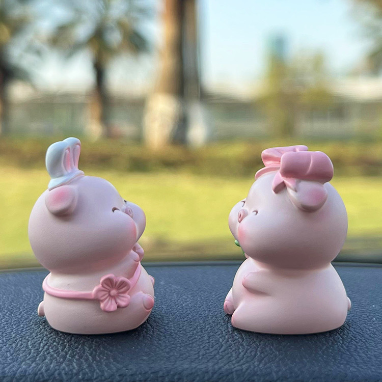 树脂汽车摆件可爱男女love小猪车载装饰猪年车上情侣车内装饰用品