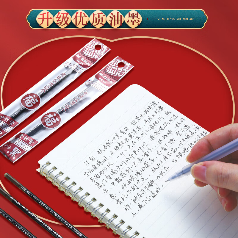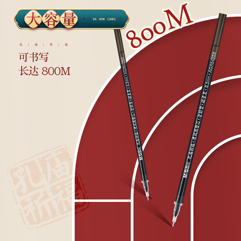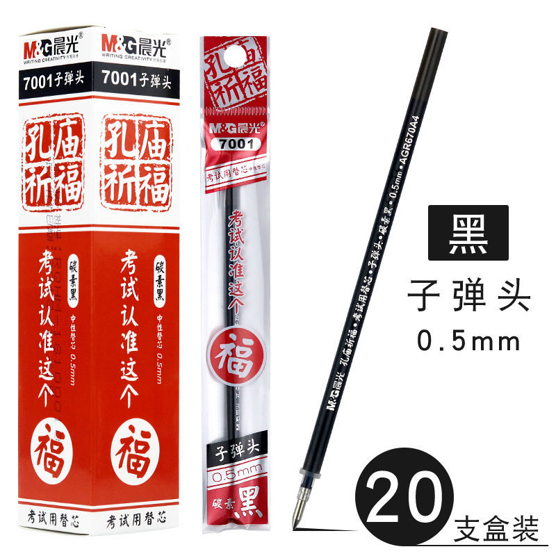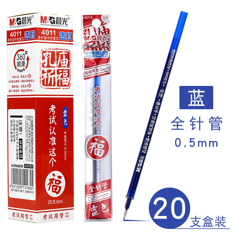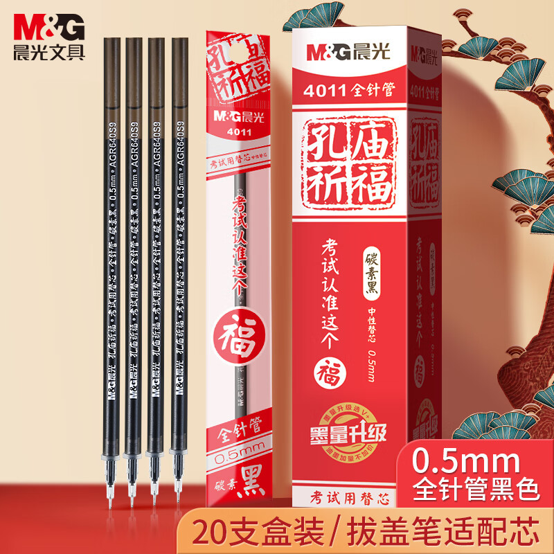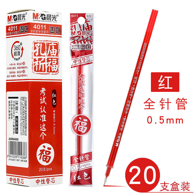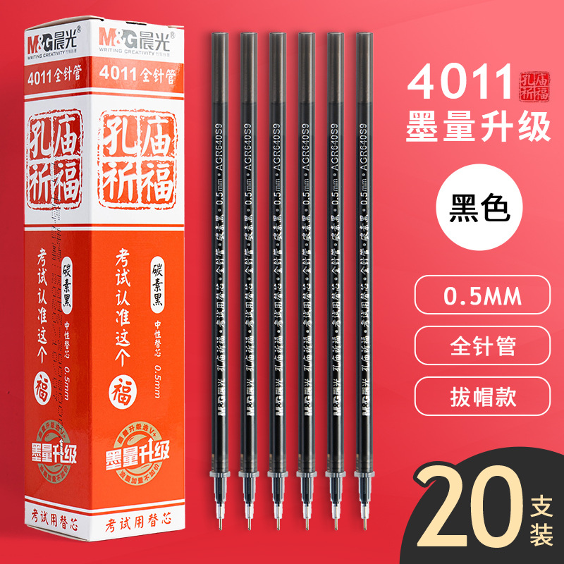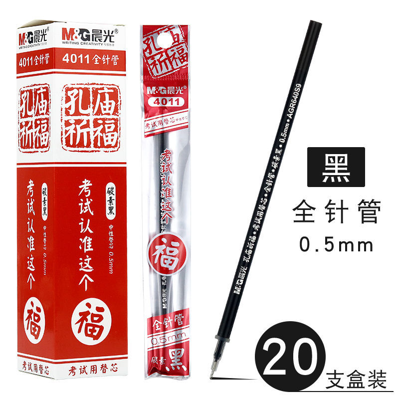 晨光4011孔庙笔芯0.5黑色中性笔芯全针管学生用考试专用笔红笔芯