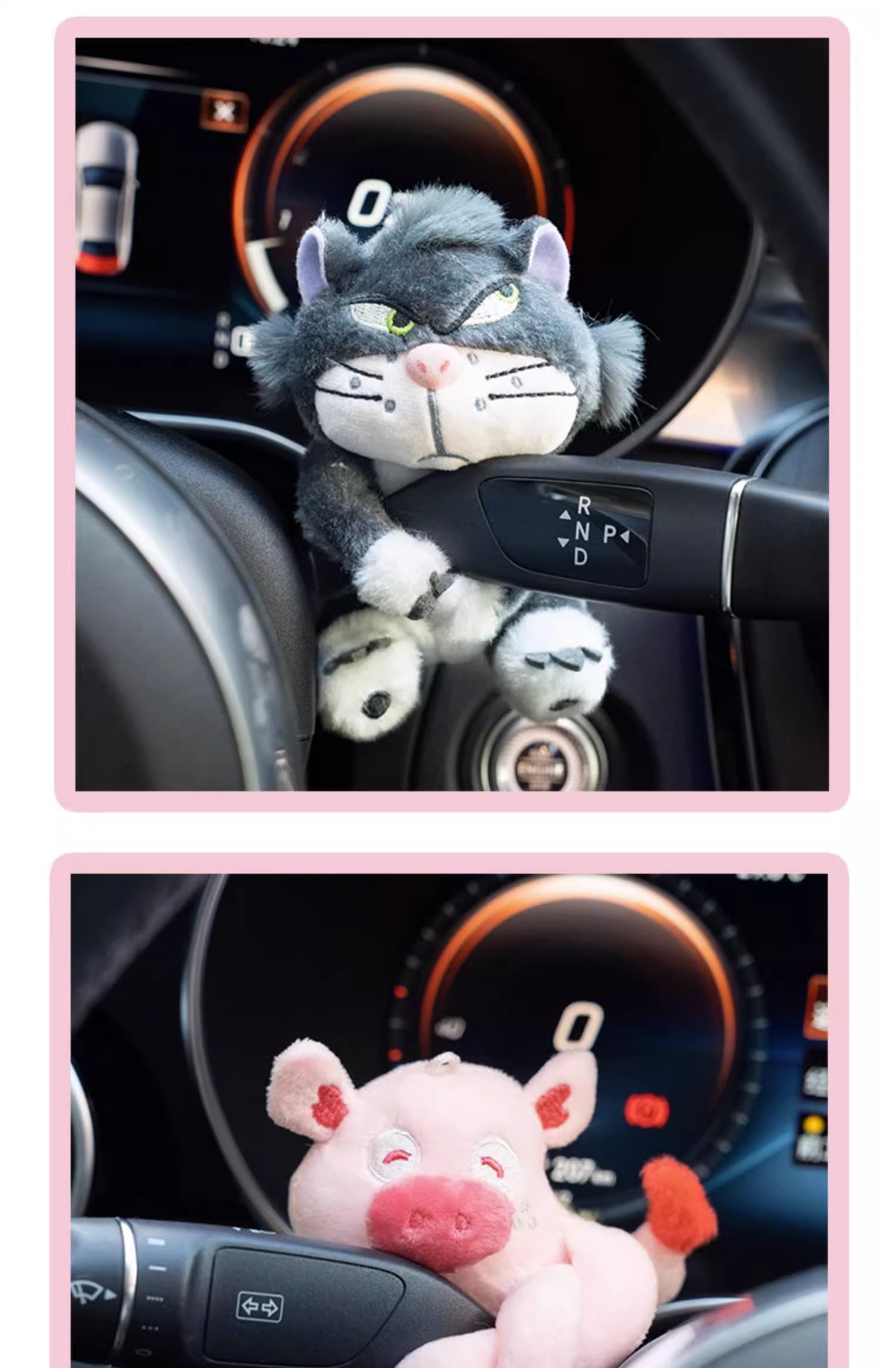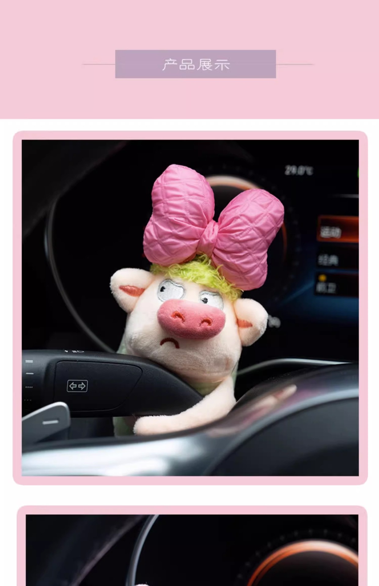 汽车摆件小猪怀挡装饰品可爱公仔毛绒玩偶转向灯雨刮器个性路西法