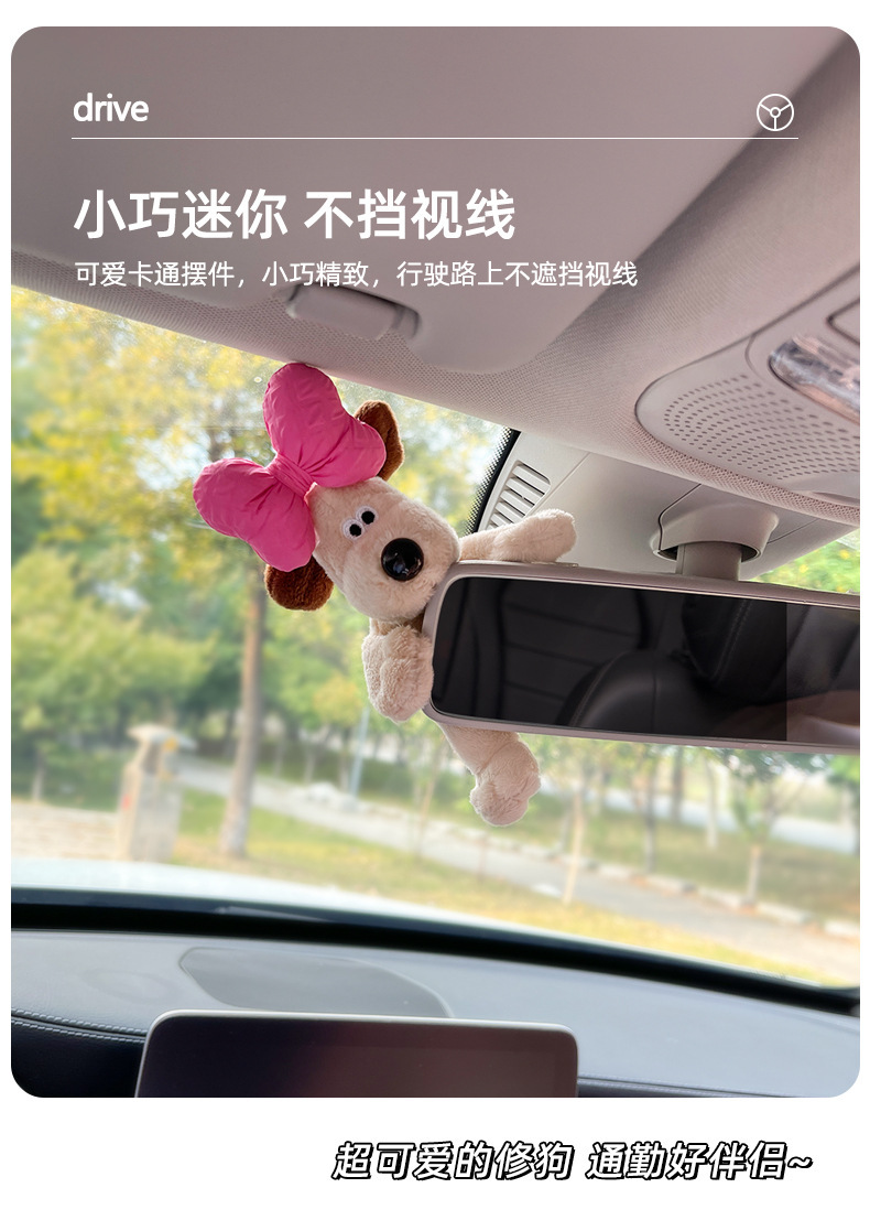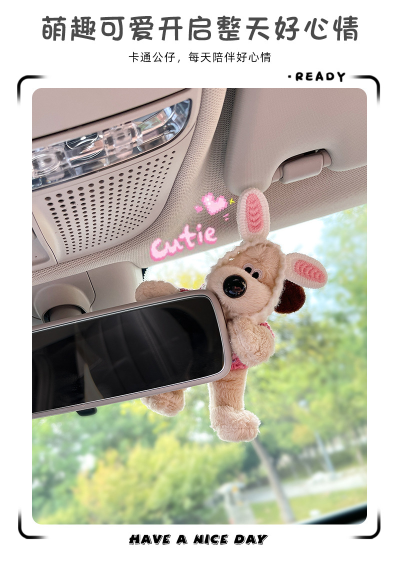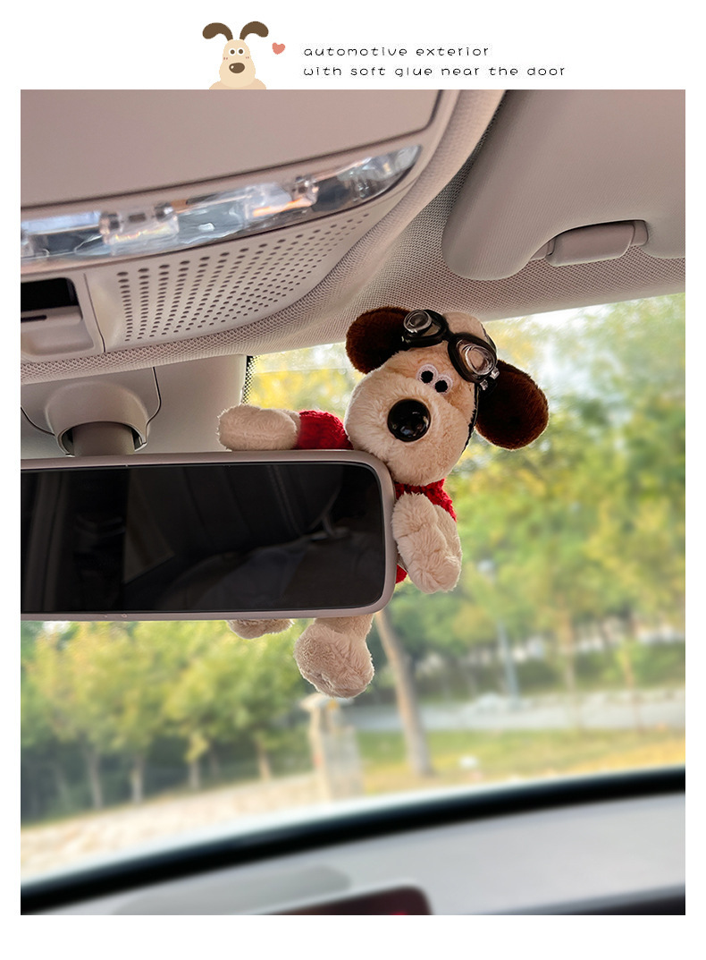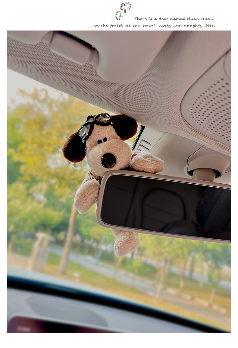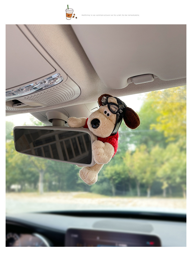 飞行员掌门狗汽车后视镜装饰趴趴公仔车载饰品摆件中控玩偶可爱女