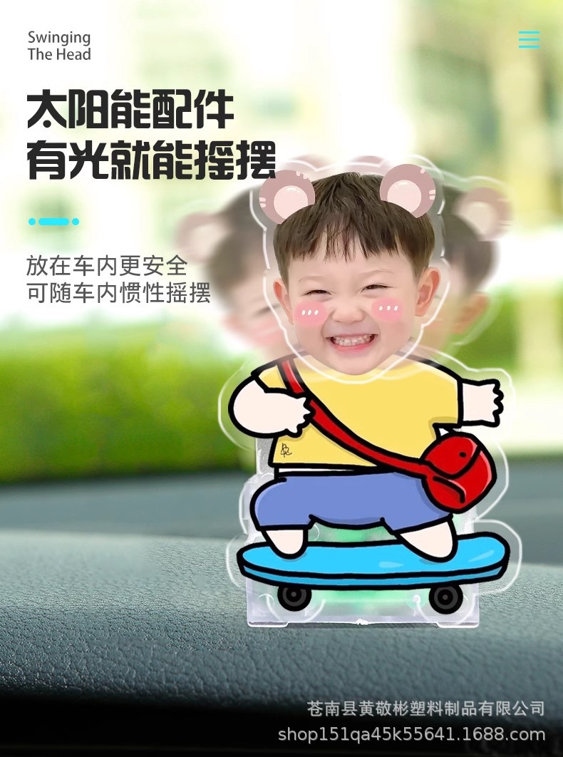 车载摇头摆件太阳能双用汽车摇摇乐Diy毕业照片亚克力车内装饰品