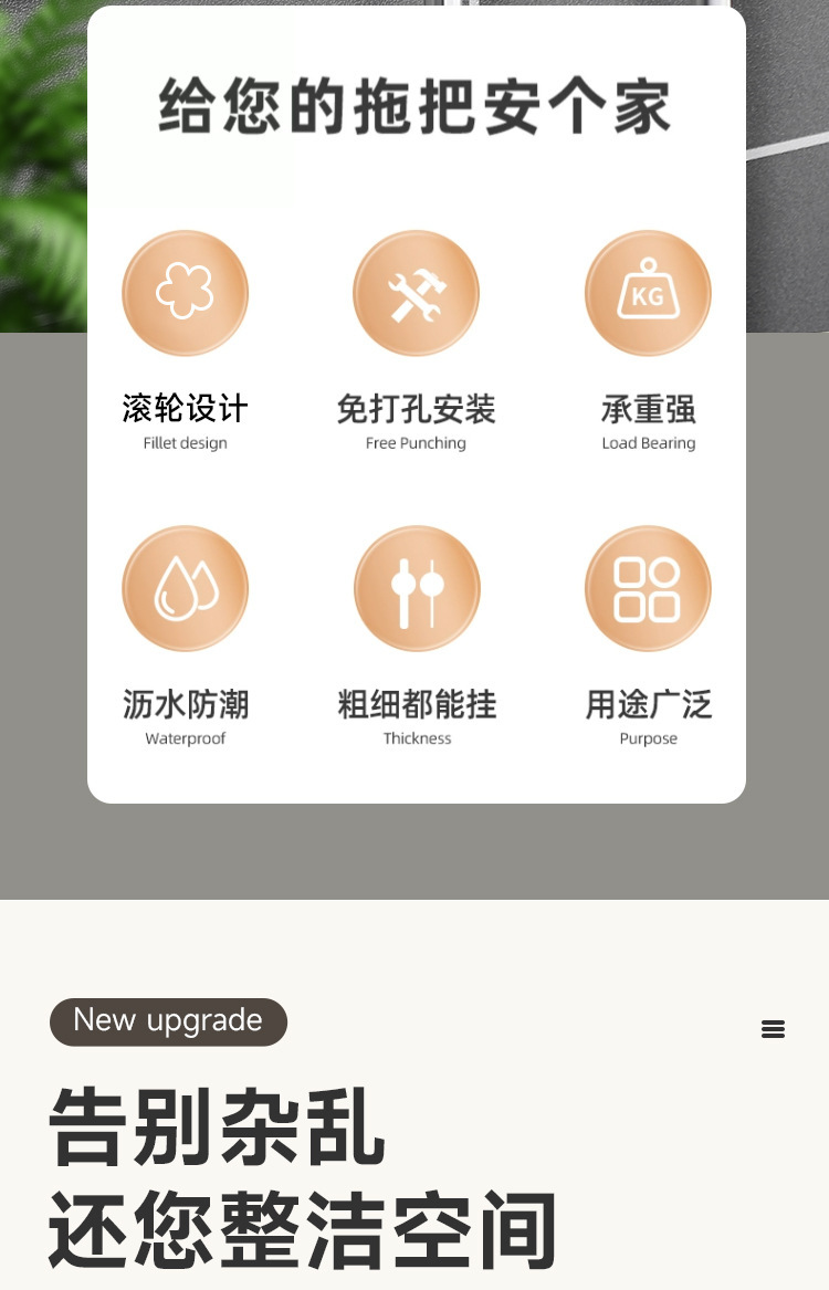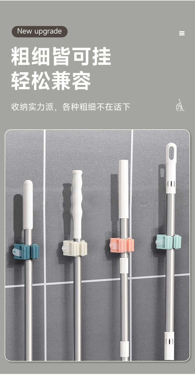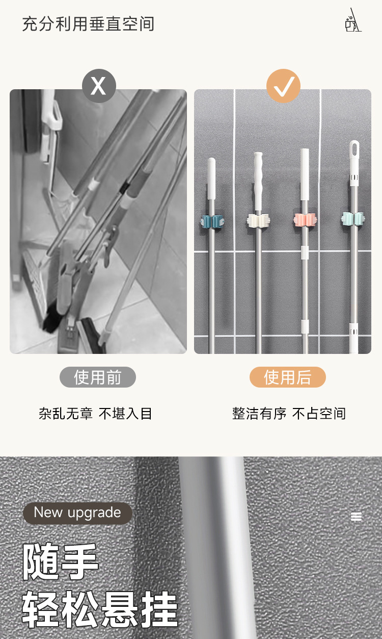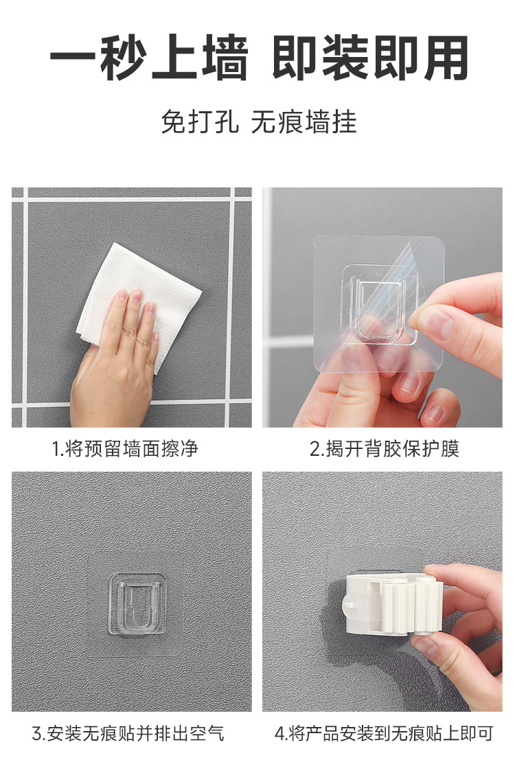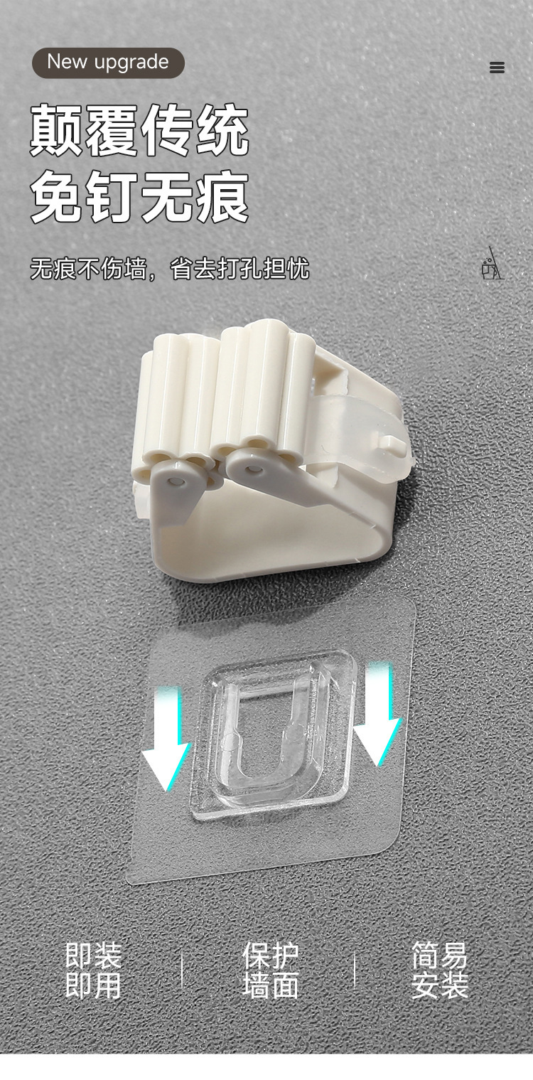 免打孔无痕拖把架收纳拖把挂钩卫生间浴室厨房壁挂扫把挂架拖把夹