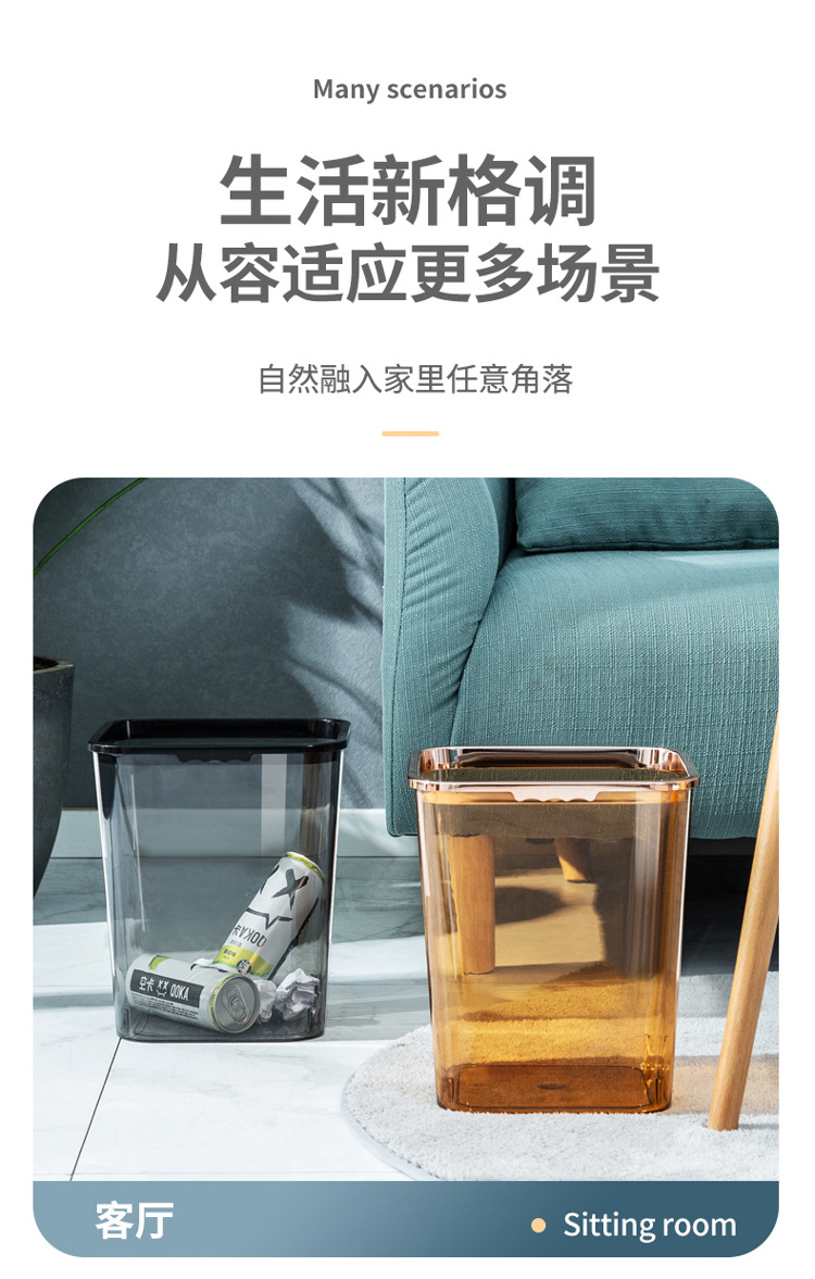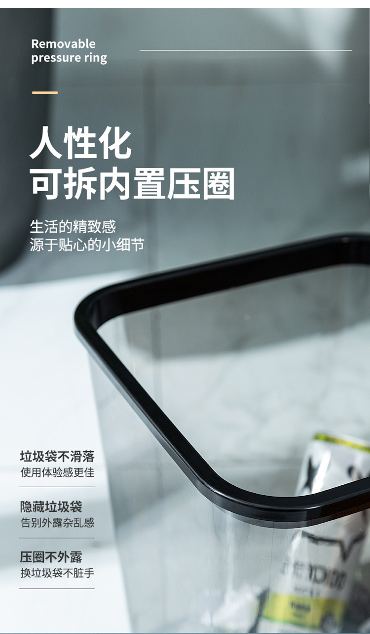 轻奢透明垃圾桶家用厕所卫生间大号纸篓厨房客厅高级感民宿垃圾筒