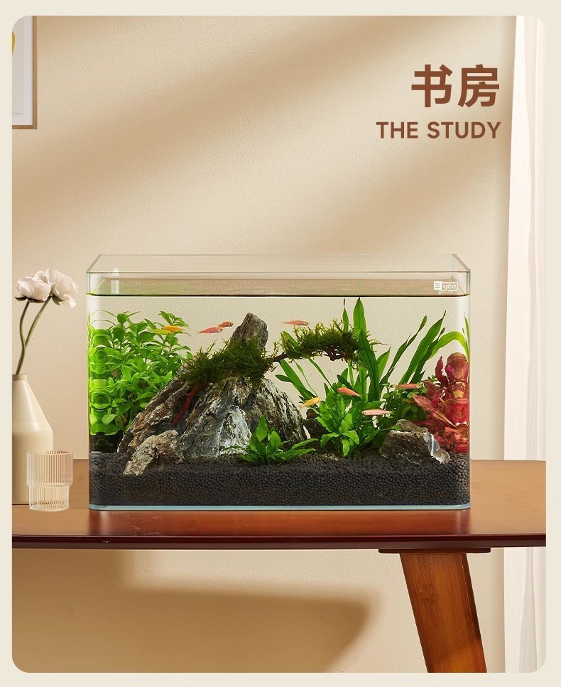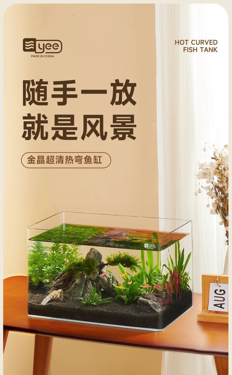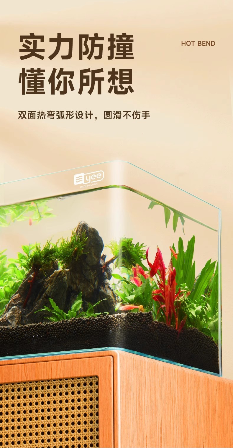 2024新款超清玻璃热弯鱼缸桌面小型水族箱客厅水草造景乌龟生态缸