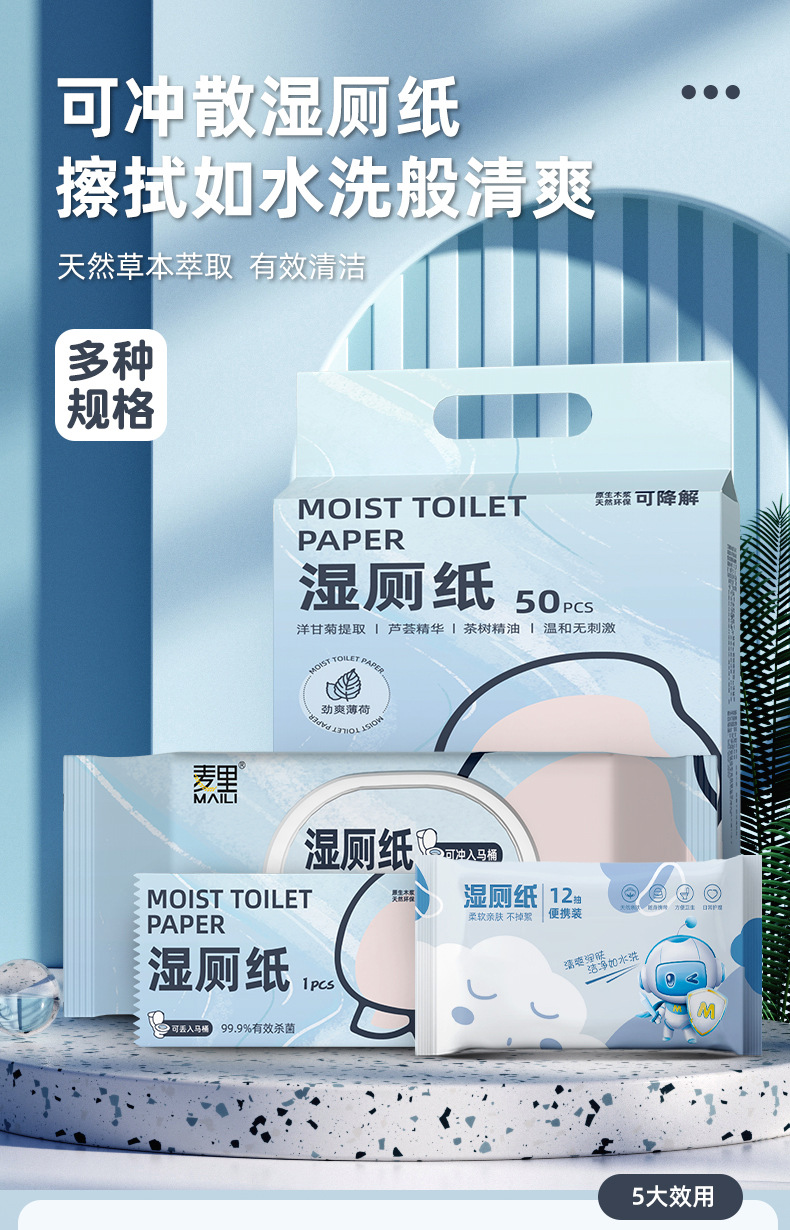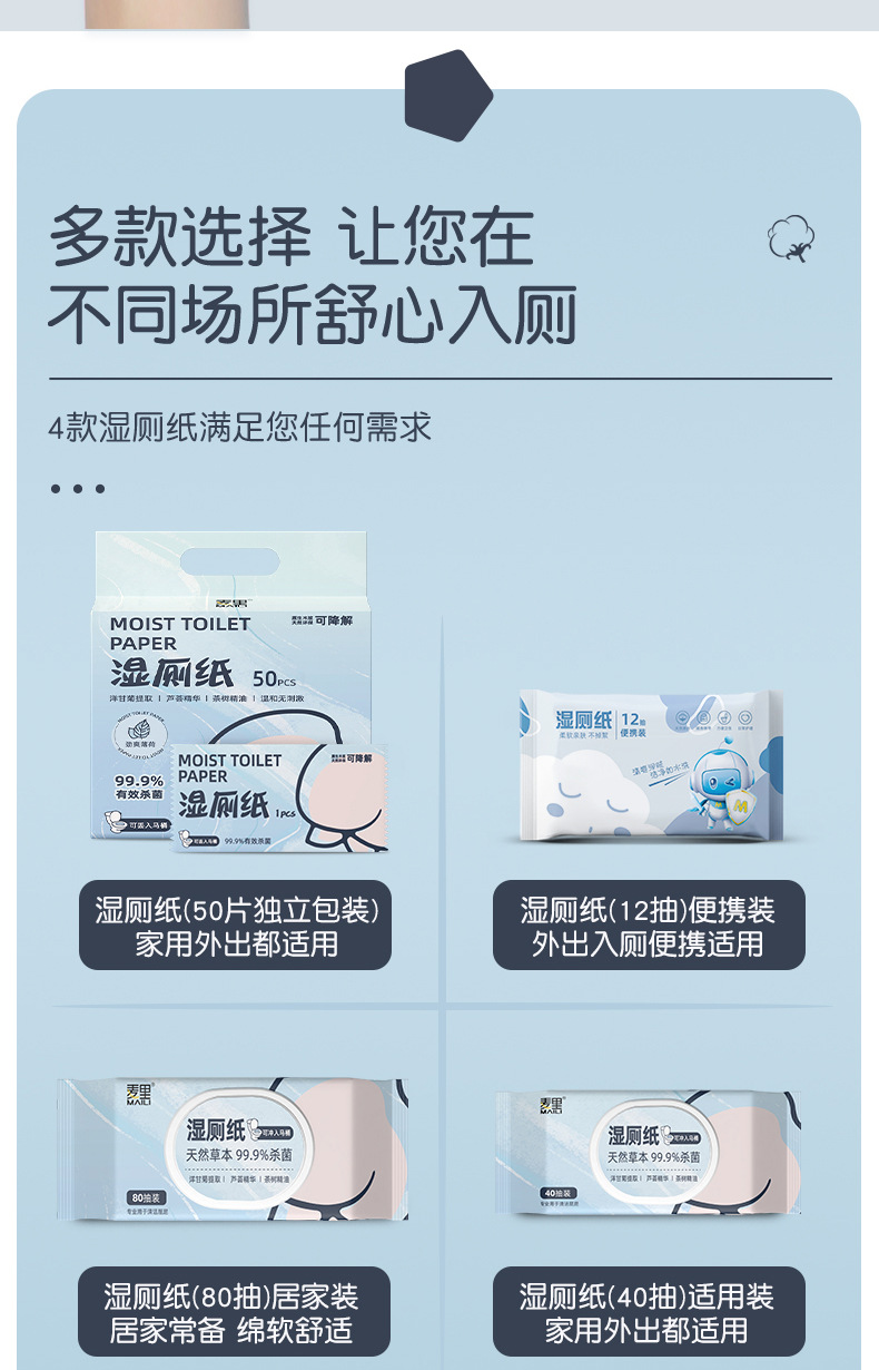 麦里湿厕纸家用大包可降解湿厕巾可冲散便携式婴儿一次性厂家批发