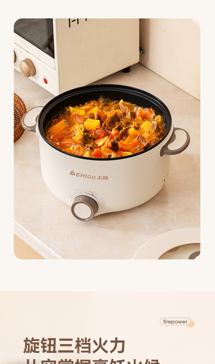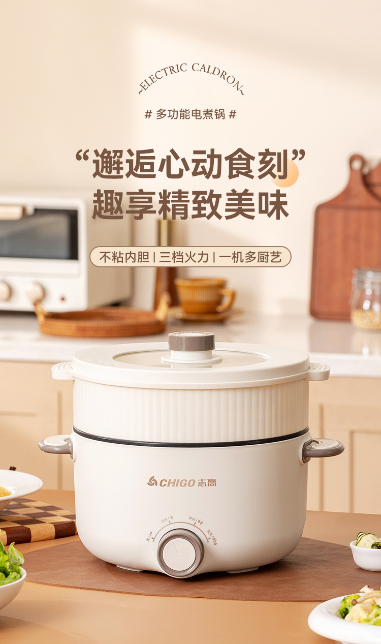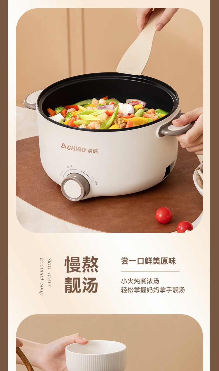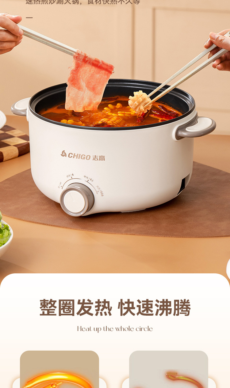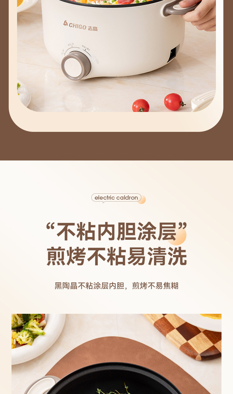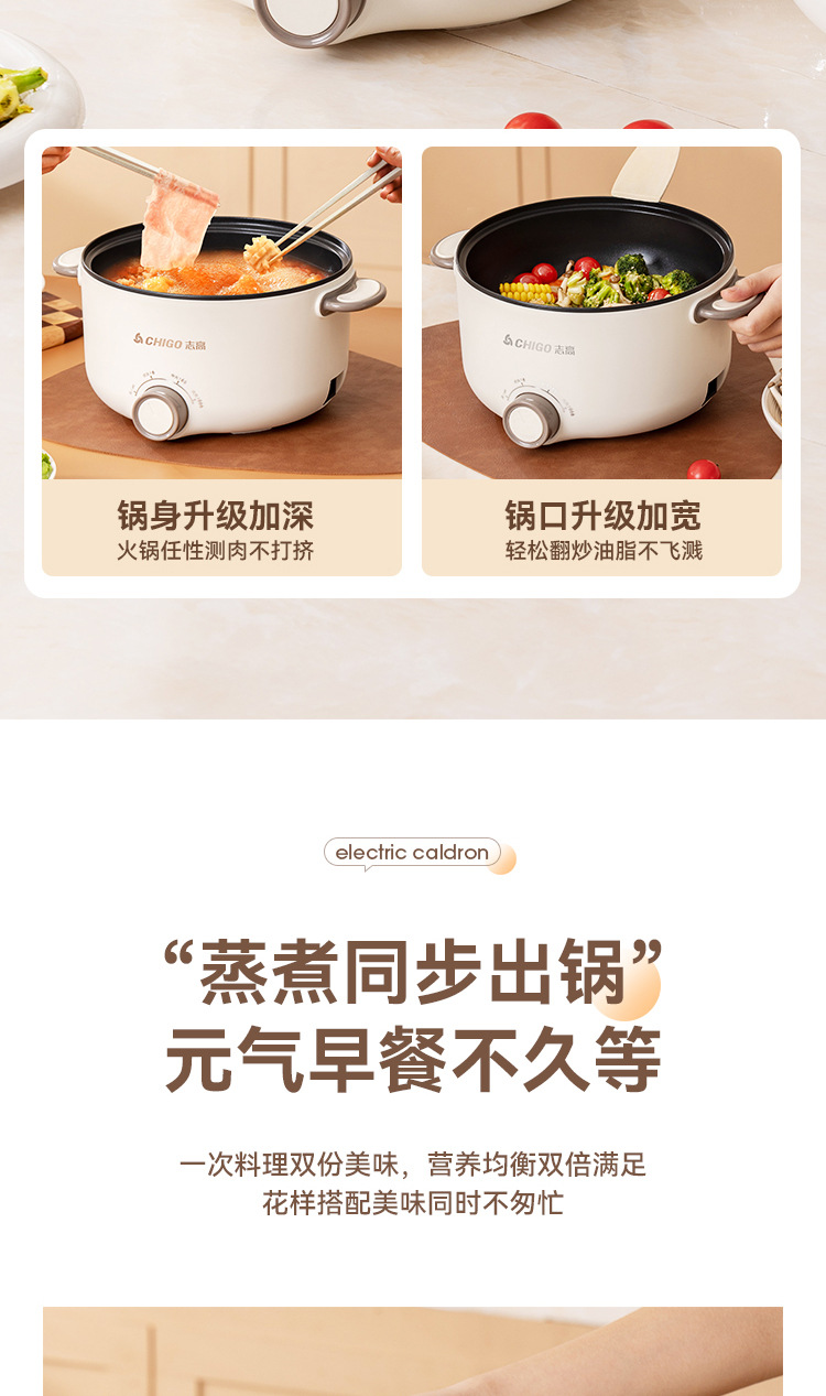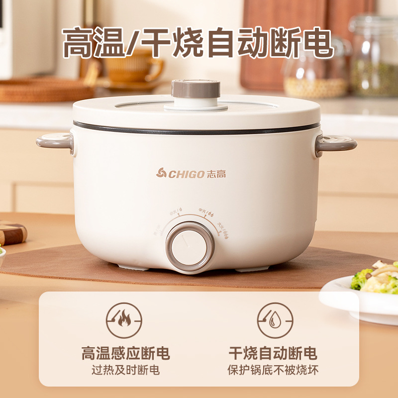 志高电煮锅学生宿舍锅蒸煮煎炒一体不粘锅迷你小电锅家用电热火锅