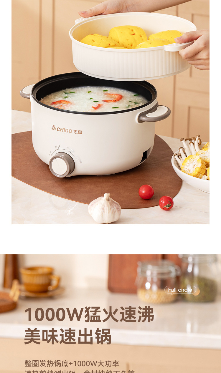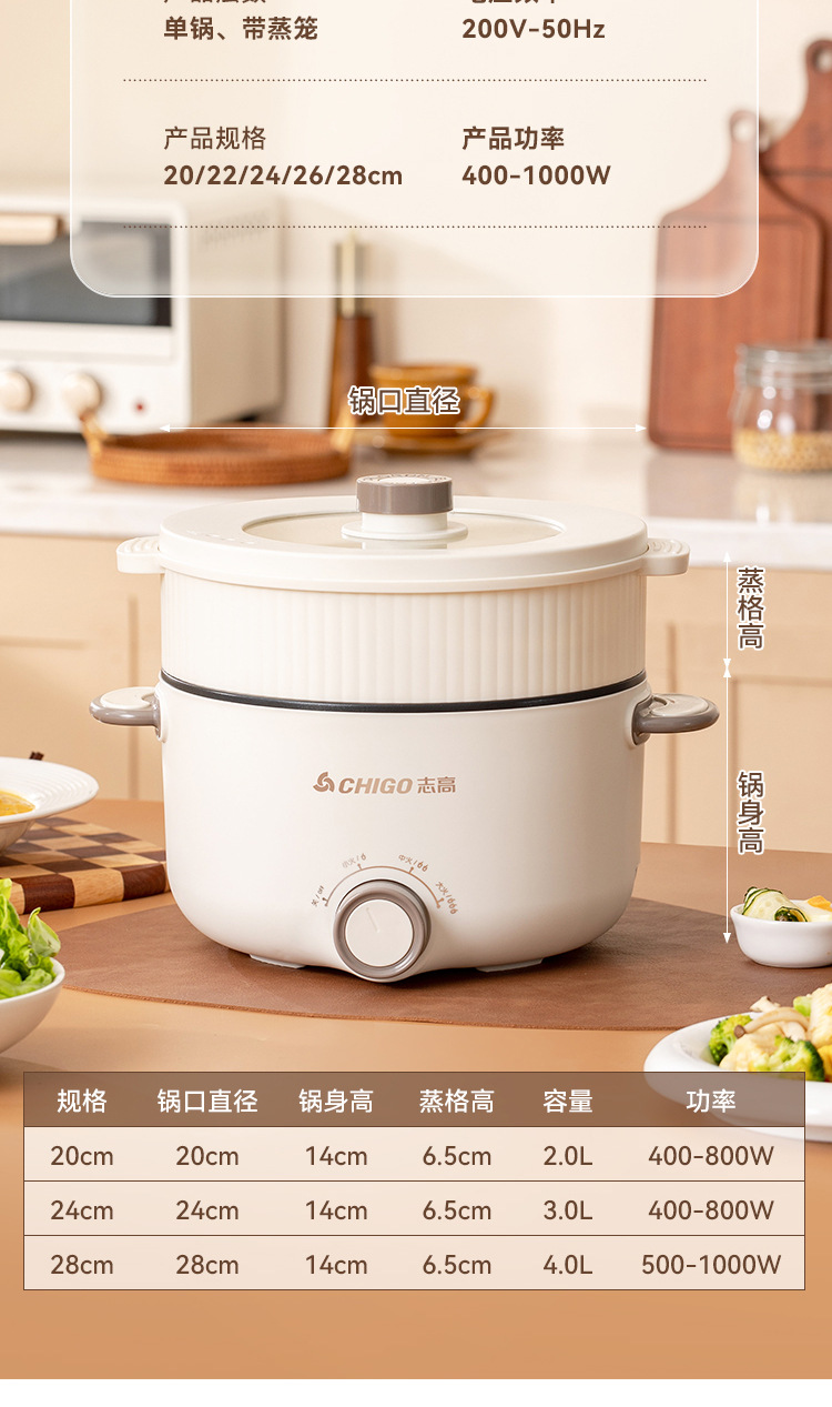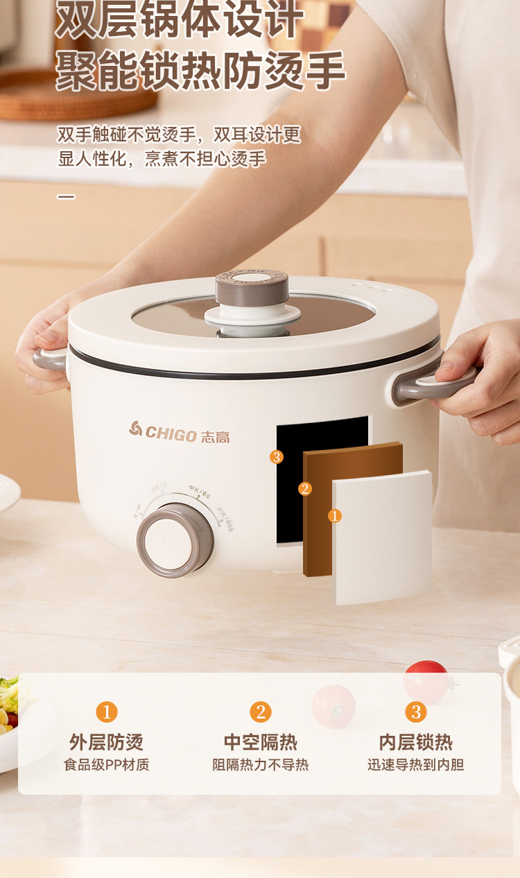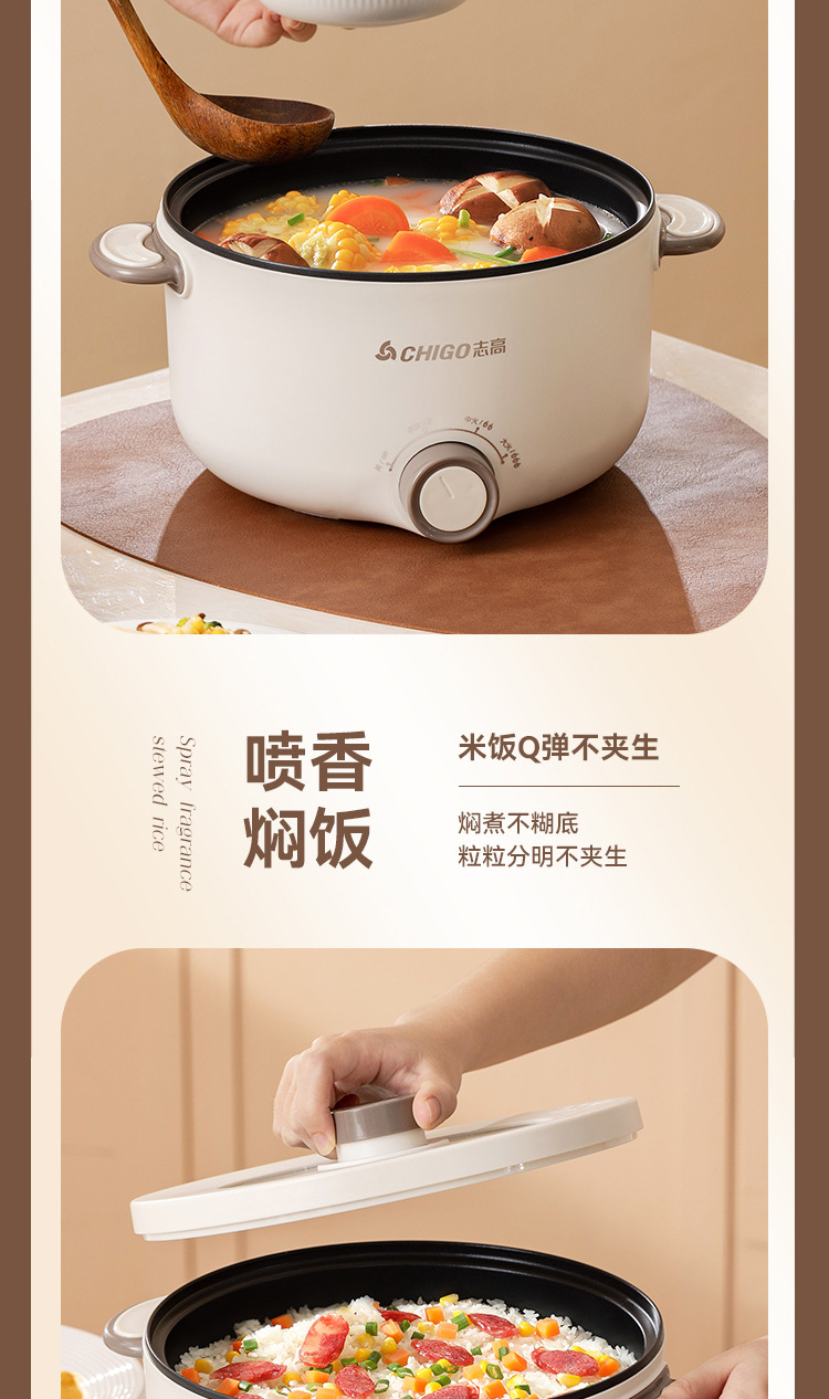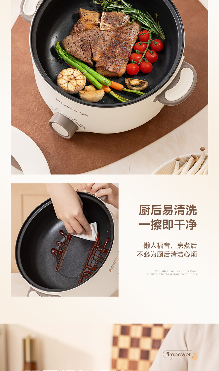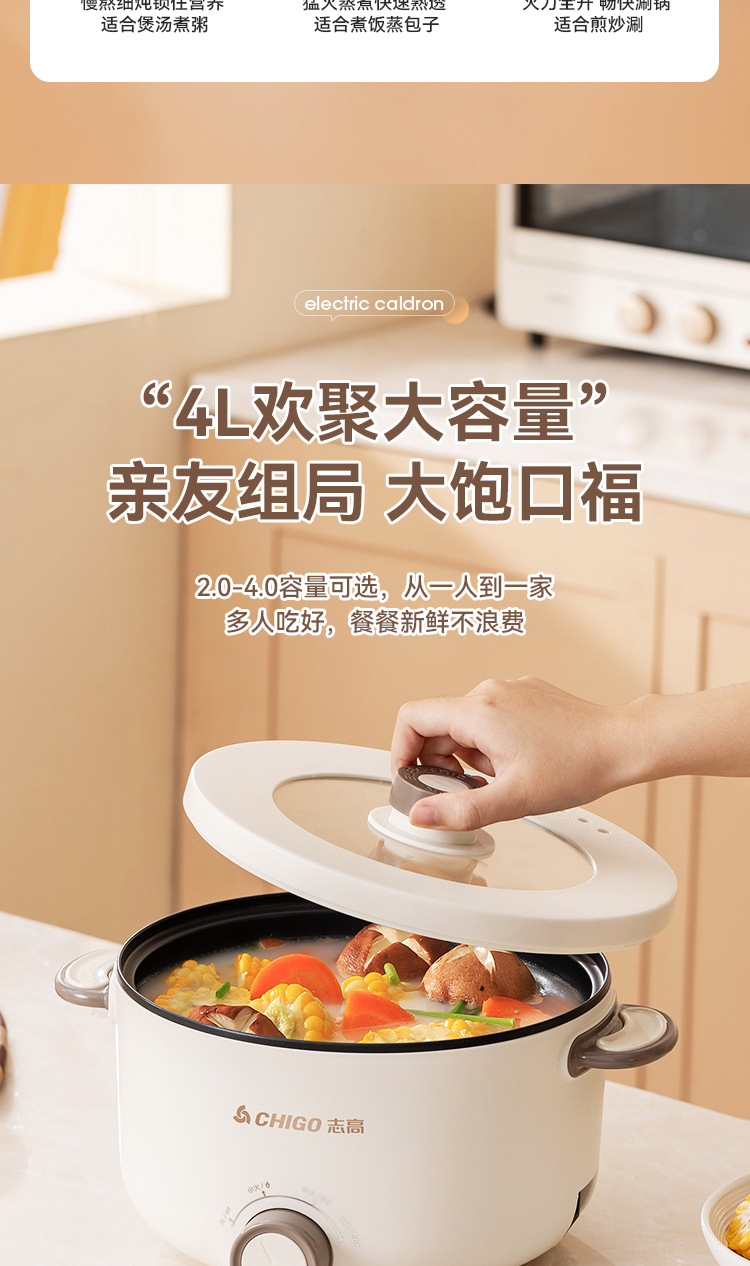 志高电煮锅学生宿舍锅蒸煮煎炒一体不粘锅迷你小电锅家用电热火锅