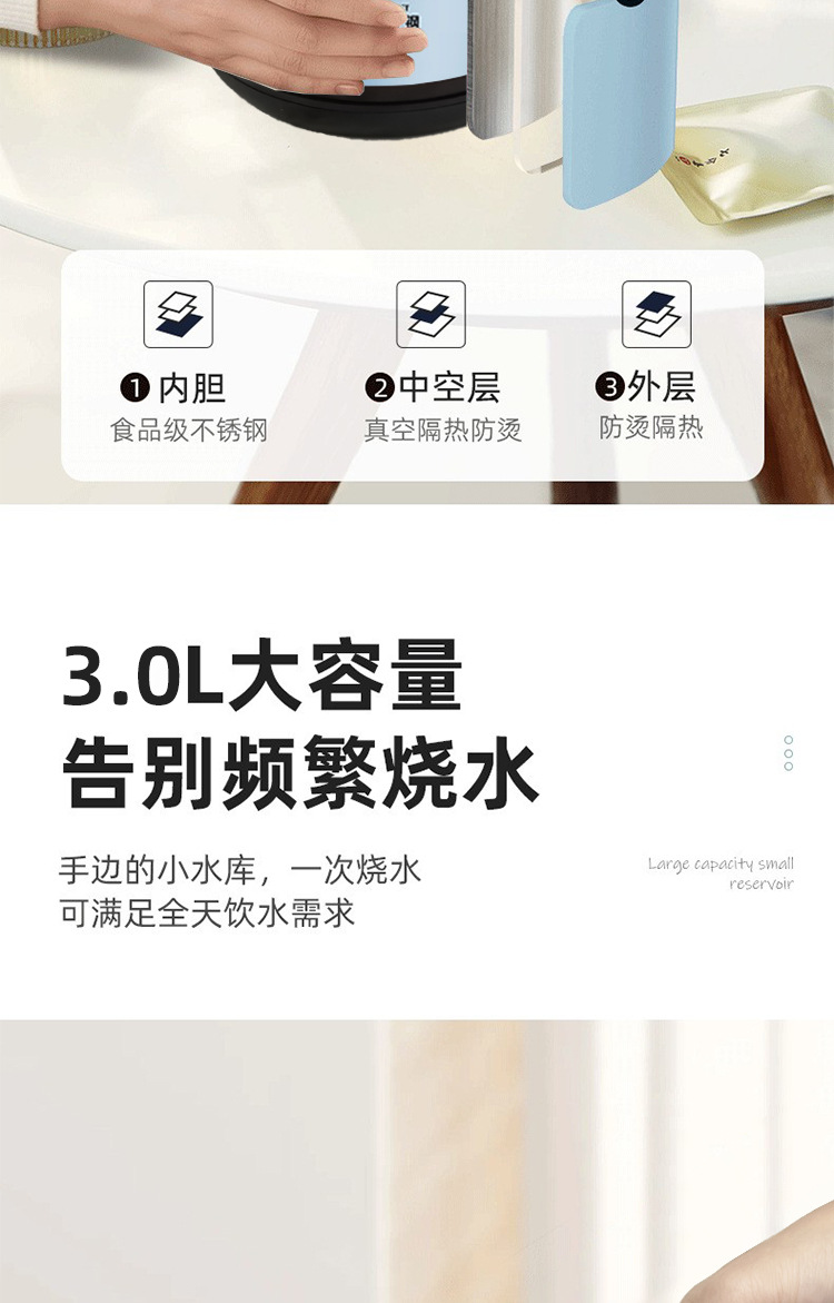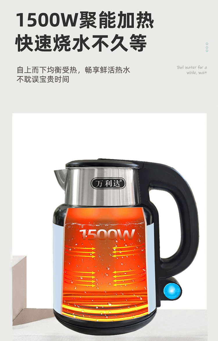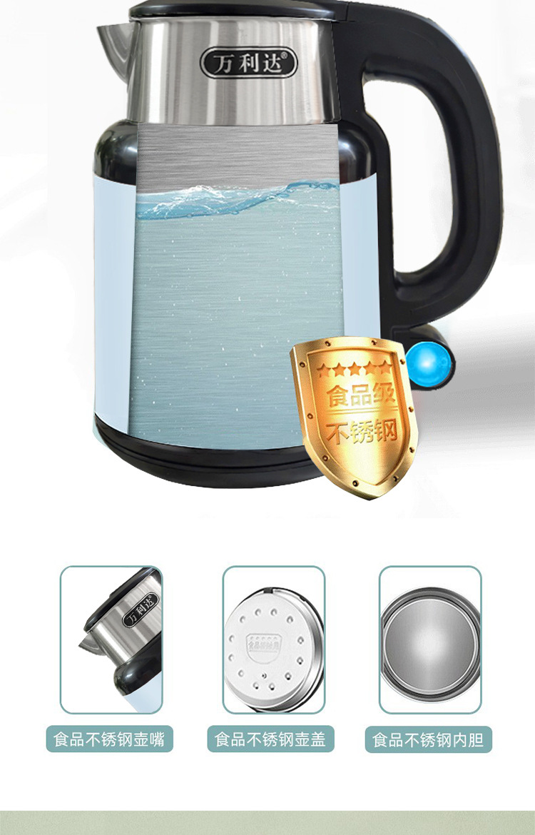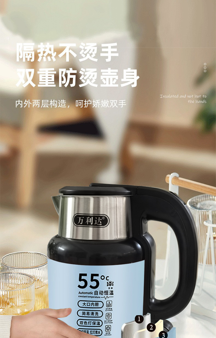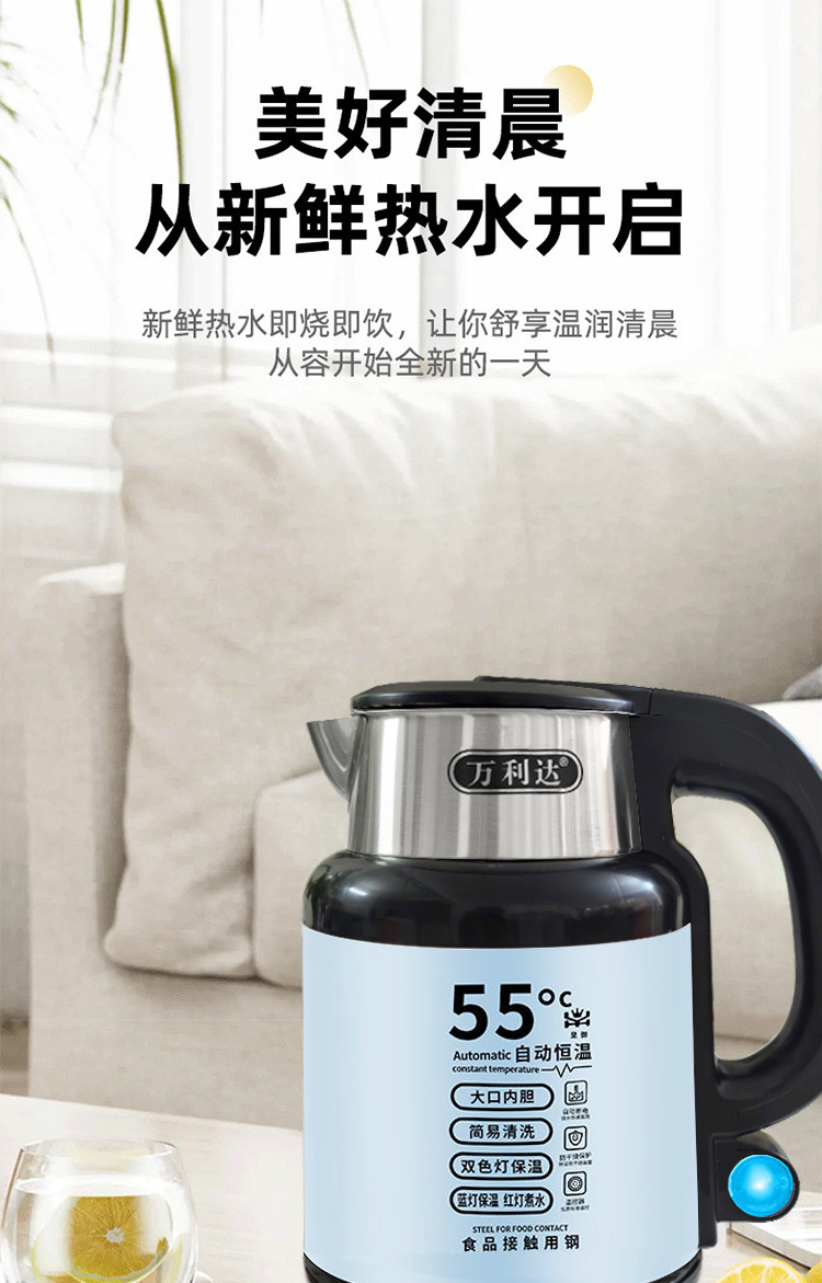 万利达3L电热水壶不锈钢自动断电保温一体恒温一件代发烧水壶家用