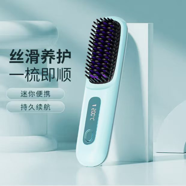 新款液晶USB充电直发梳陶瓷加热负离子电梳子无线便携迷你直发器