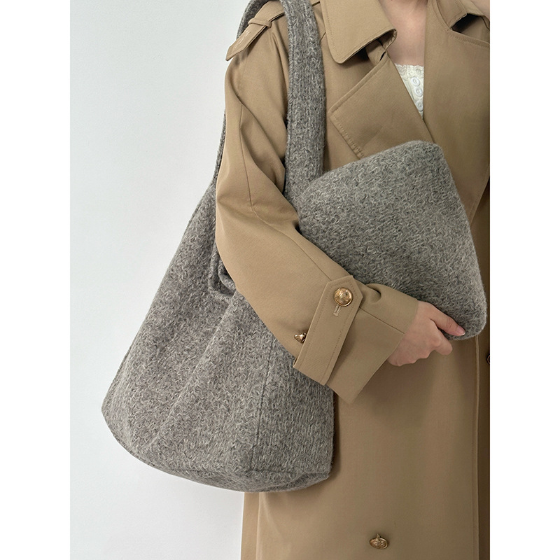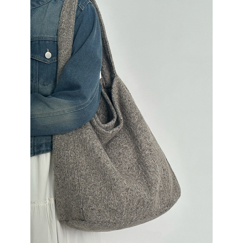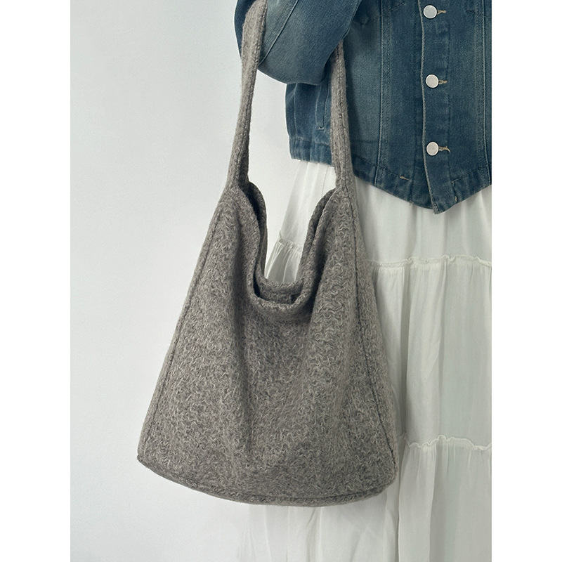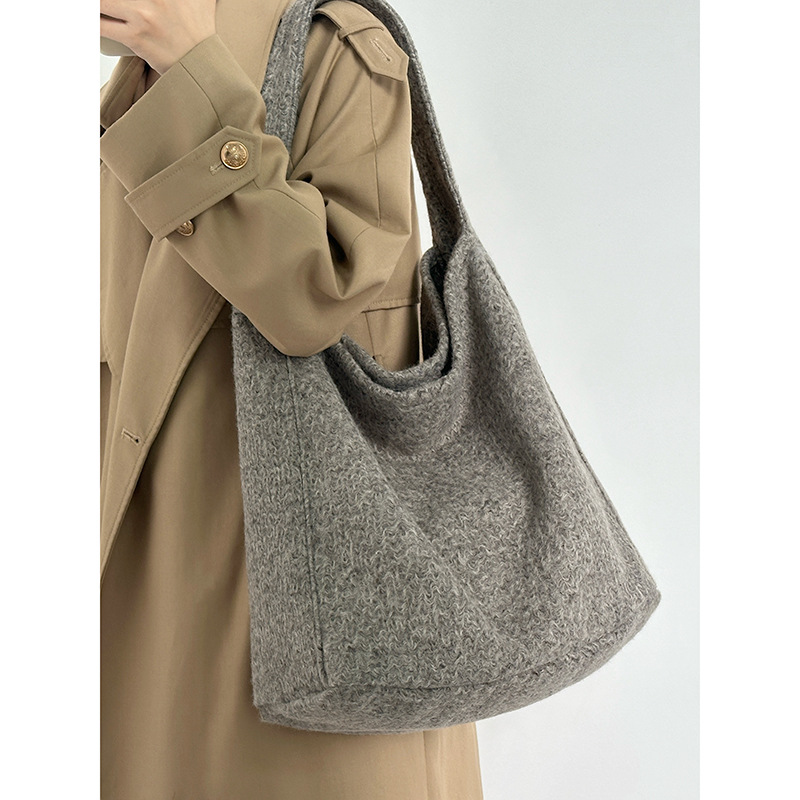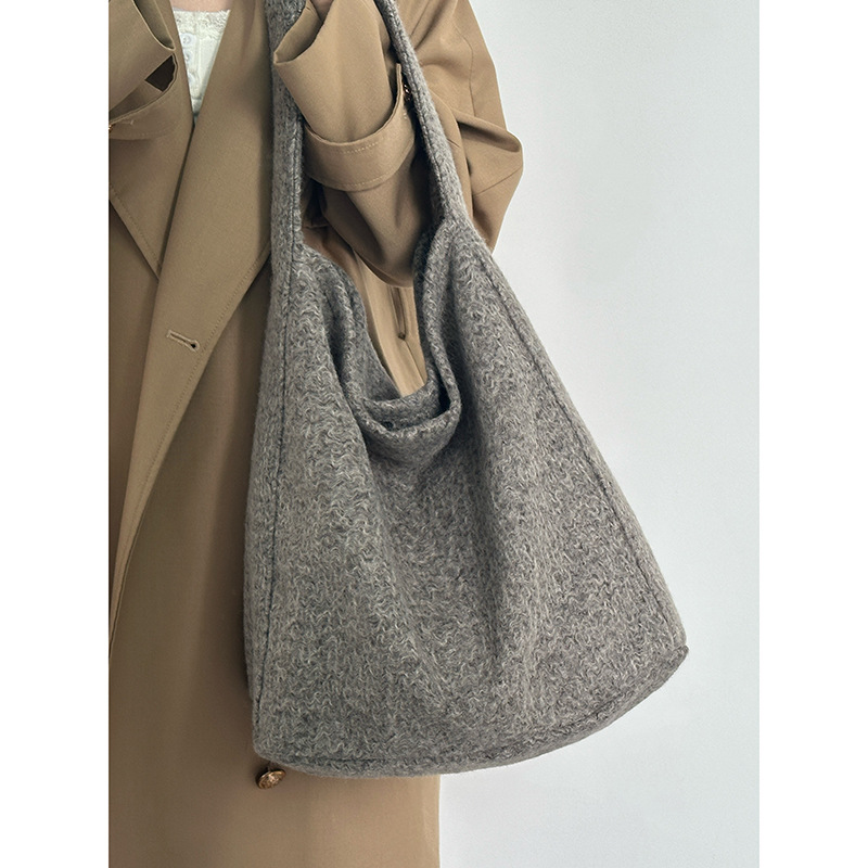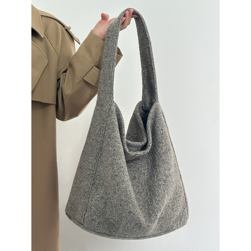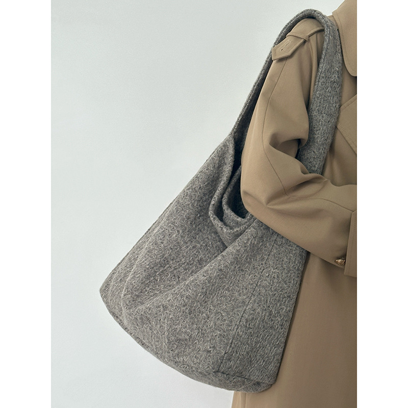 复古女慵懒风韩系毛呢托特包新款秋冬大容量通勤单肩包子母包