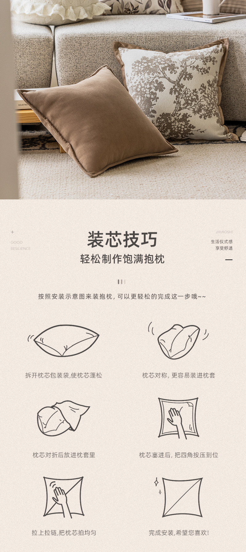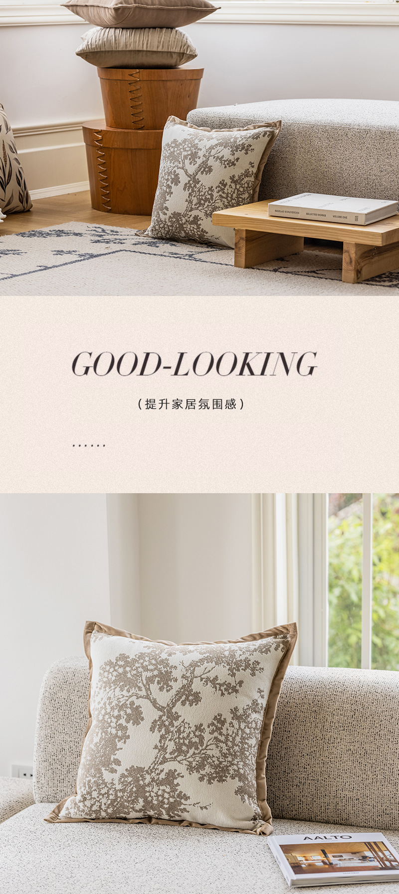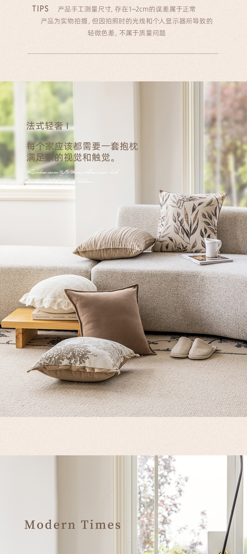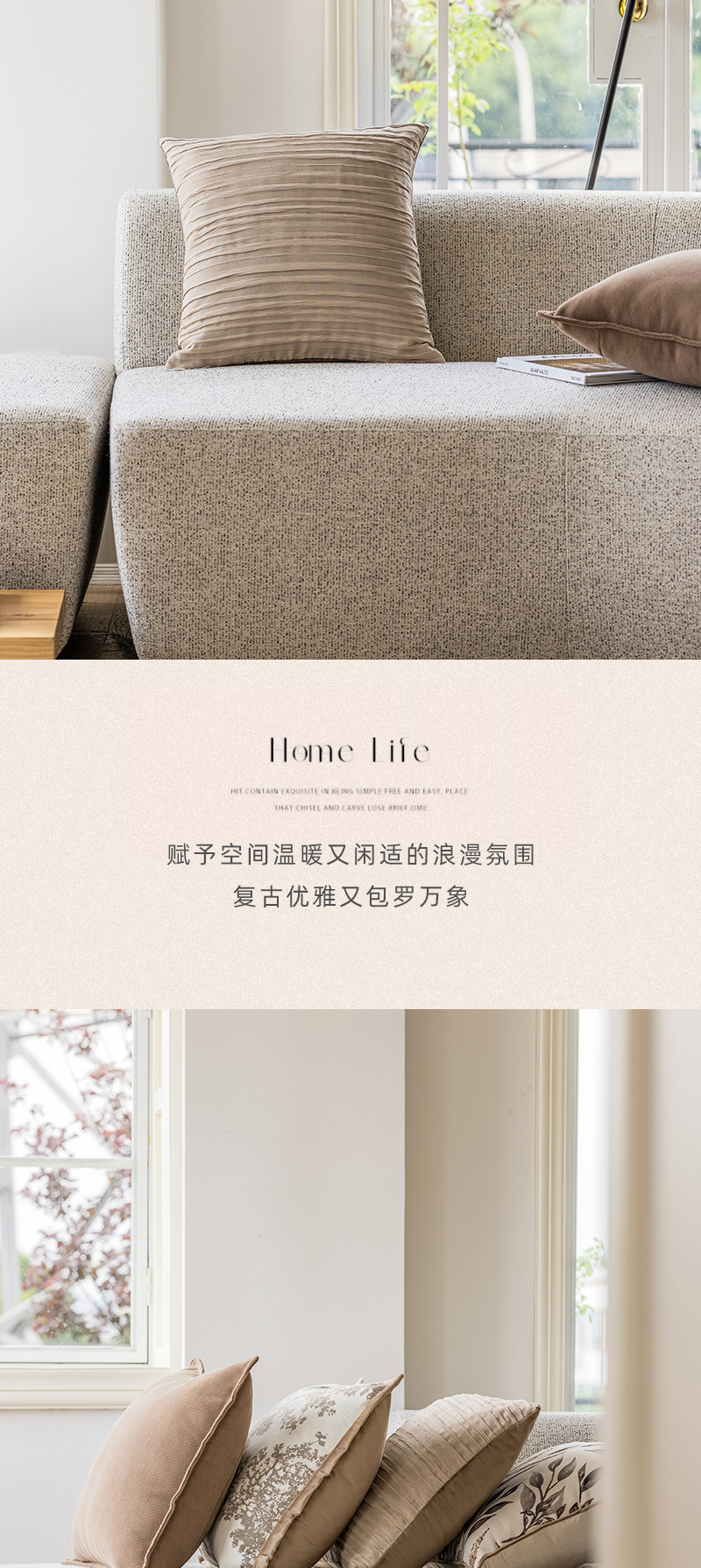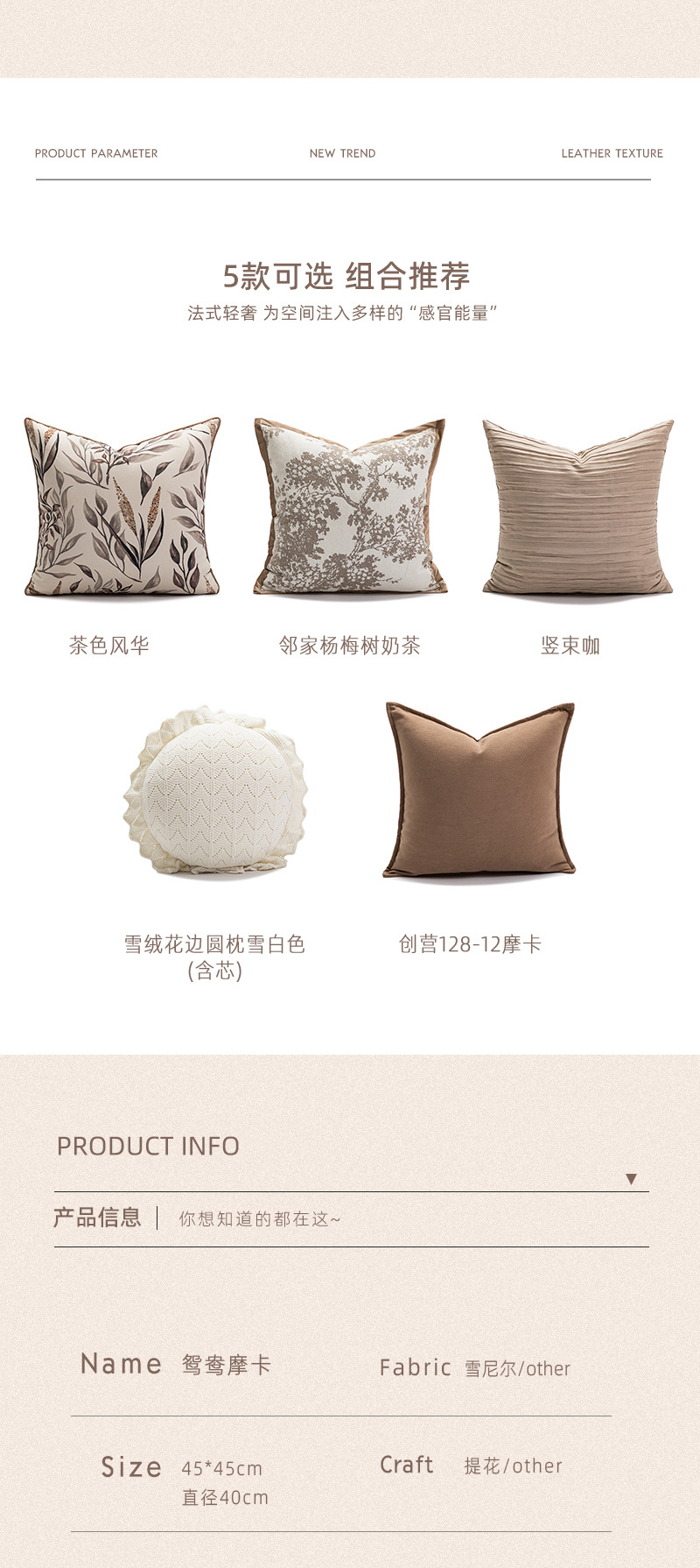 法式轻奢复古卡其色沙发抱枕高级感客厅靠垫民宿别墅卧室床头软包