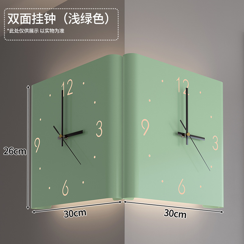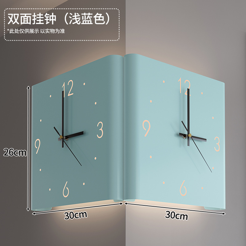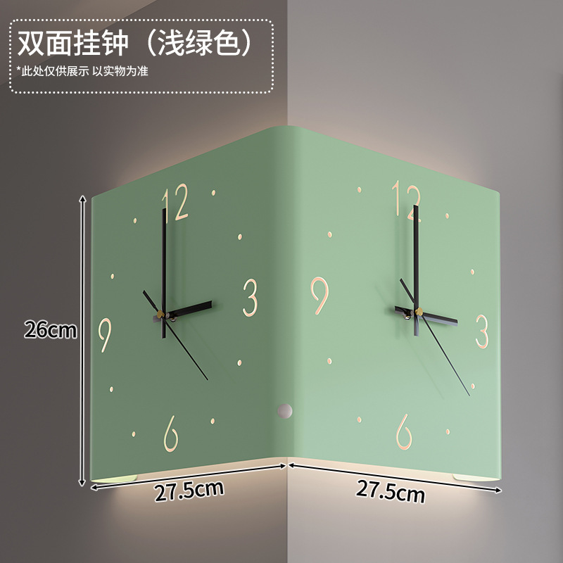 新款简约时尚贴壁钟创意阳角时钟双面转角客厅家用拐角壁灯款挂钟