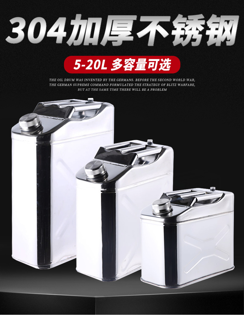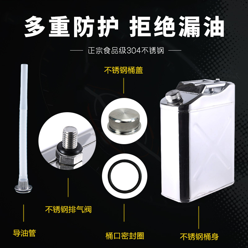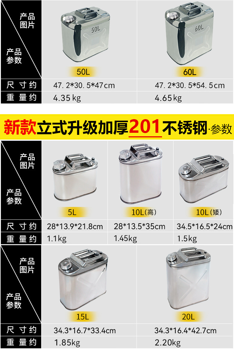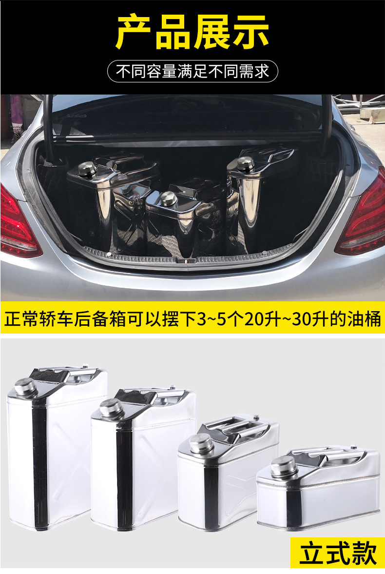 立式201不锈钢汽油桶加厚柴油壶汽车加油桶摩托车便携备用油箱20L