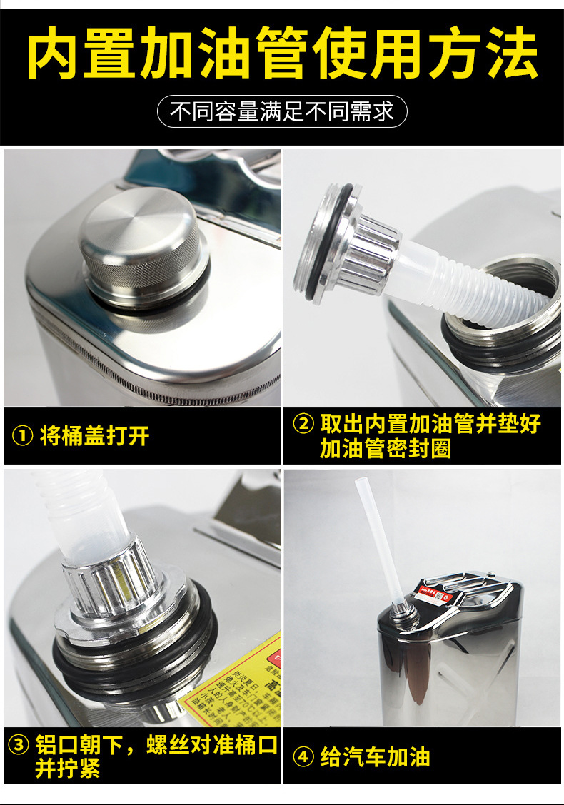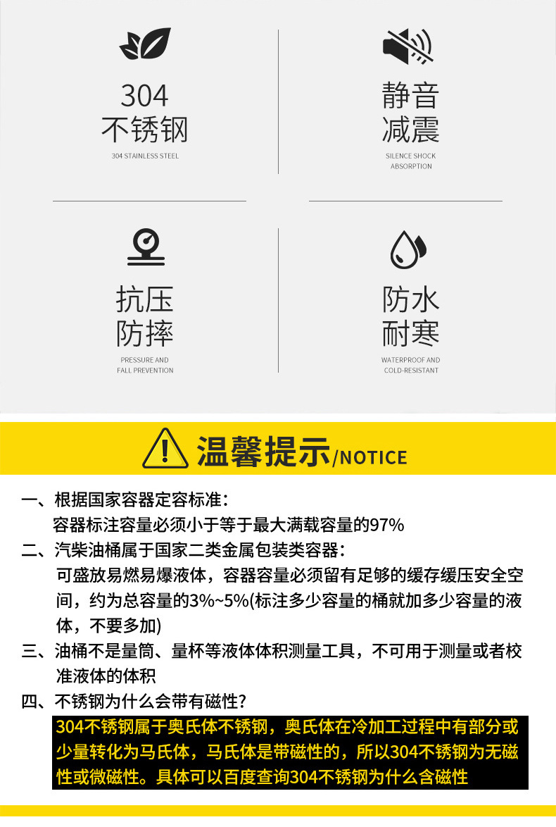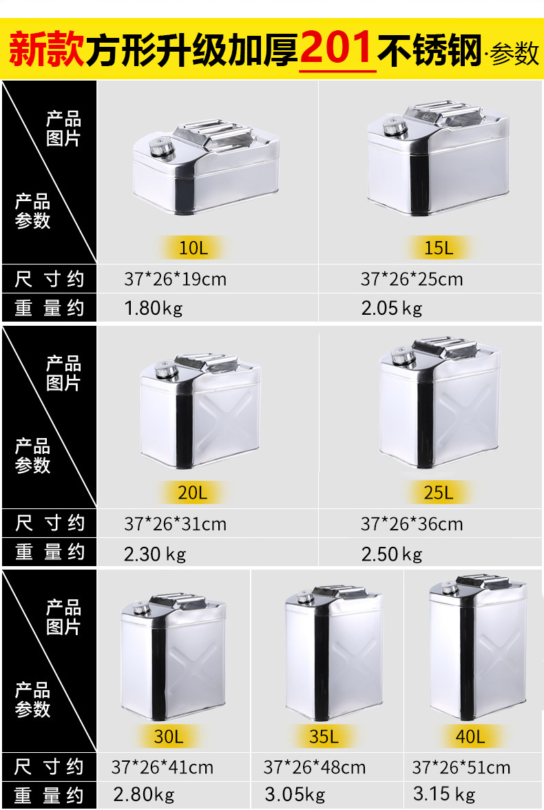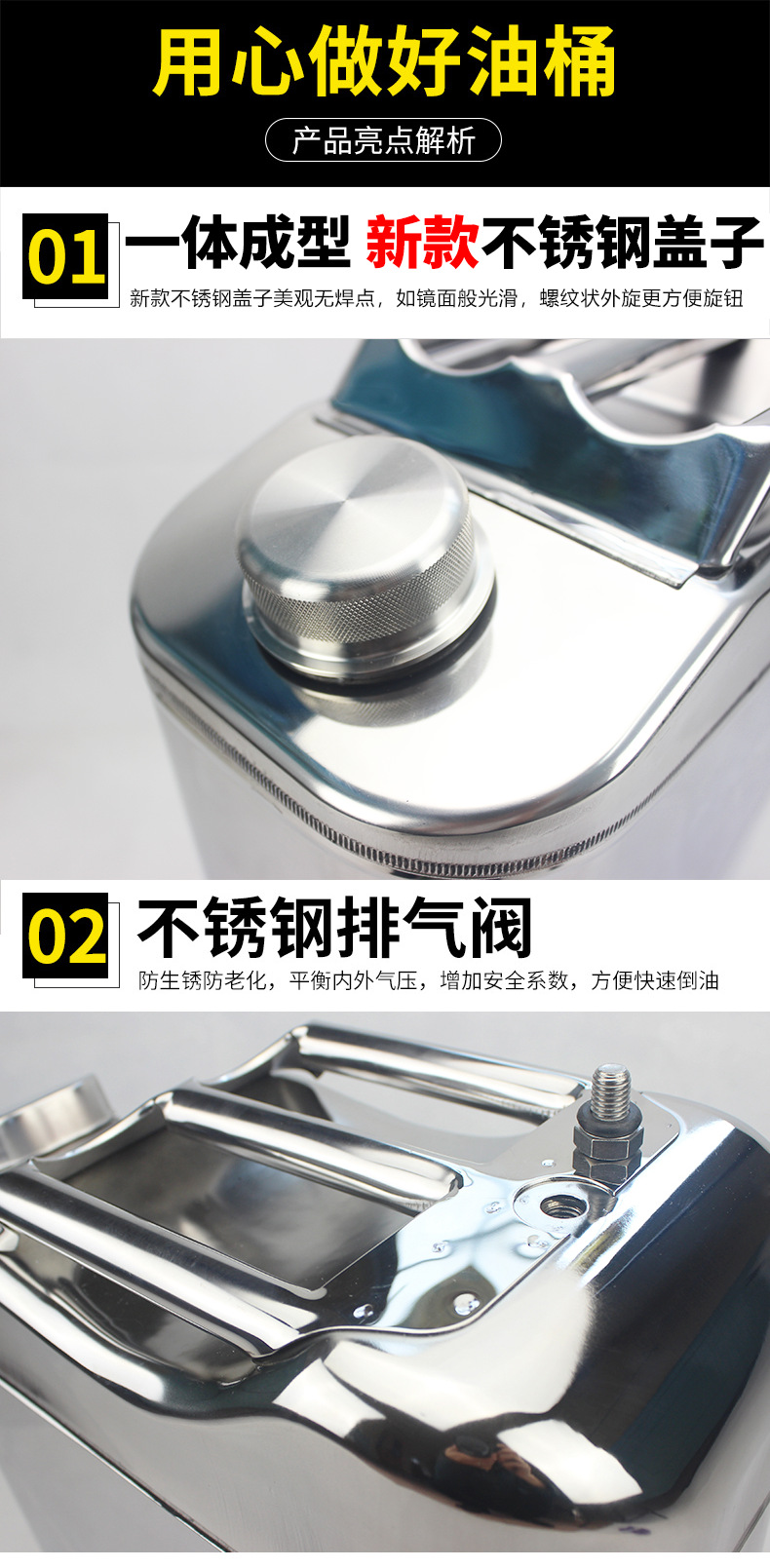 立式201不锈钢汽油桶加厚柴油壶汽车加油桶摩托车便携备用油箱20L