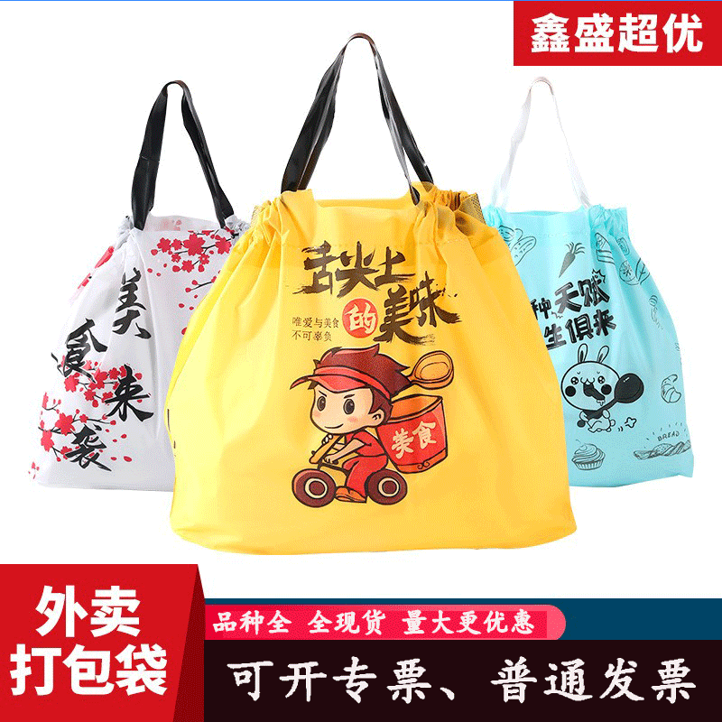 现货四川外卖打包袋一次性束口袋实惠抽绳拉拉袋加厚冒菜水果捞