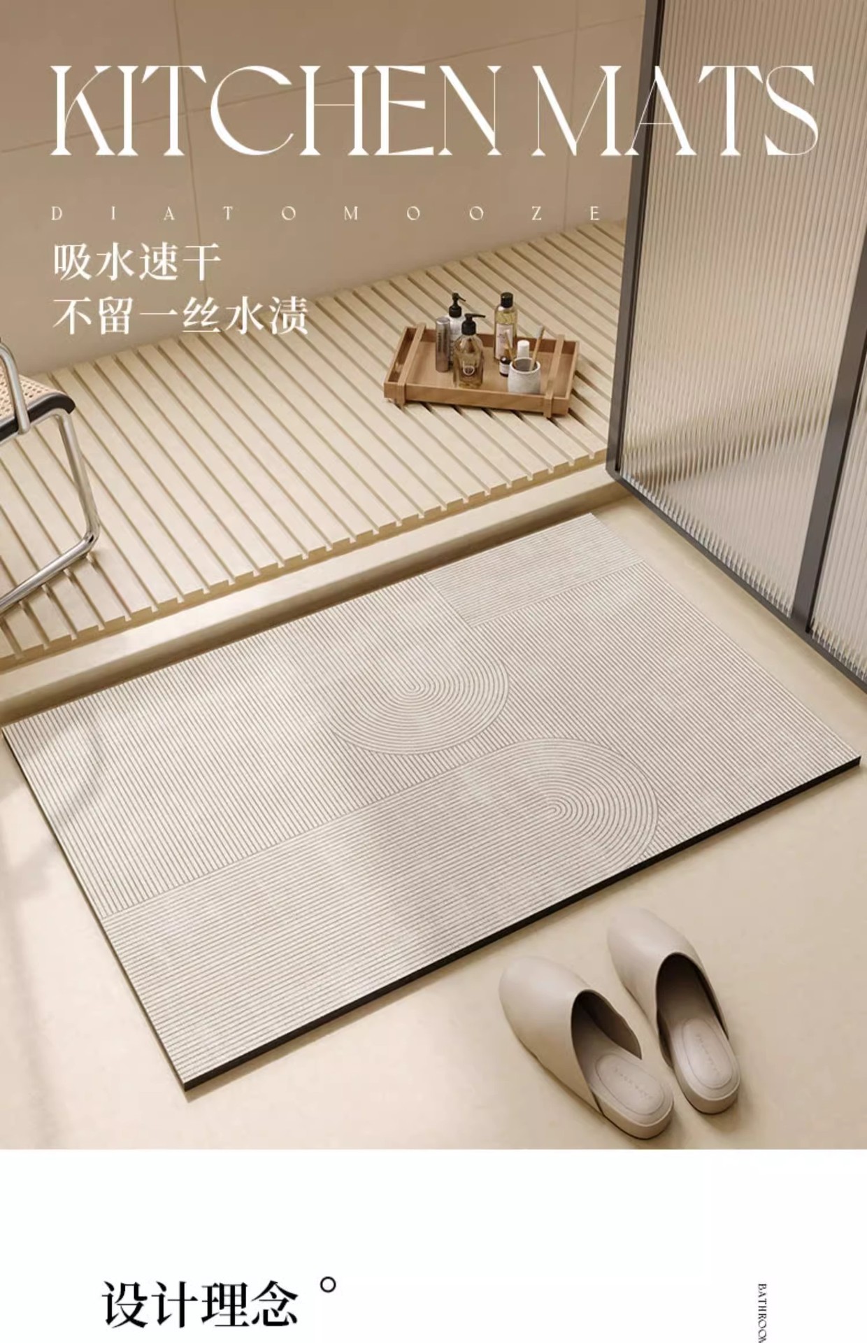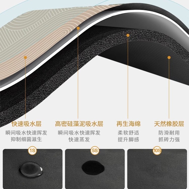 日式软硅藻泥地垫家用吸水速干浴室地垫卫生间门口耐脏防摔防滑垫