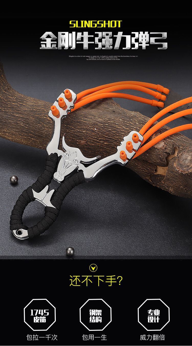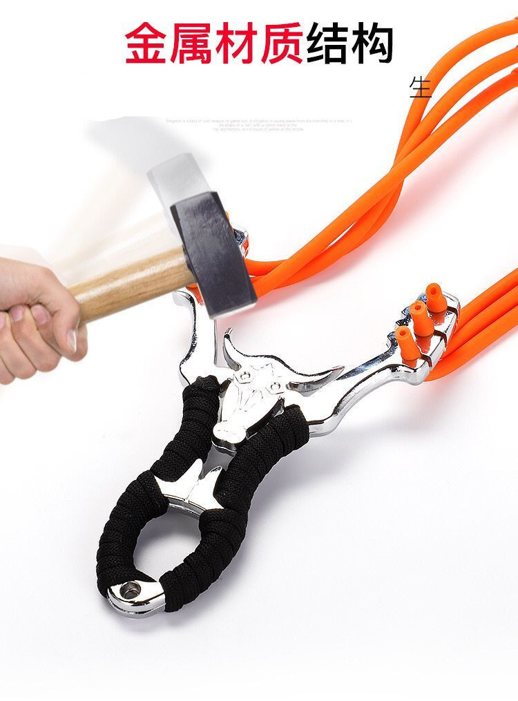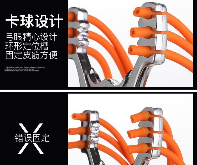 户外传统弹弓合金精钢牛三卡六股皮筋圆皮筋卡球弹弓金刚狼竞技