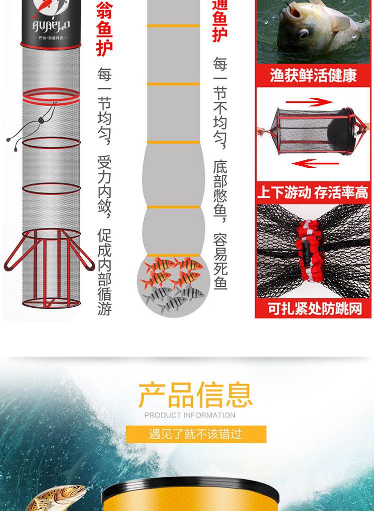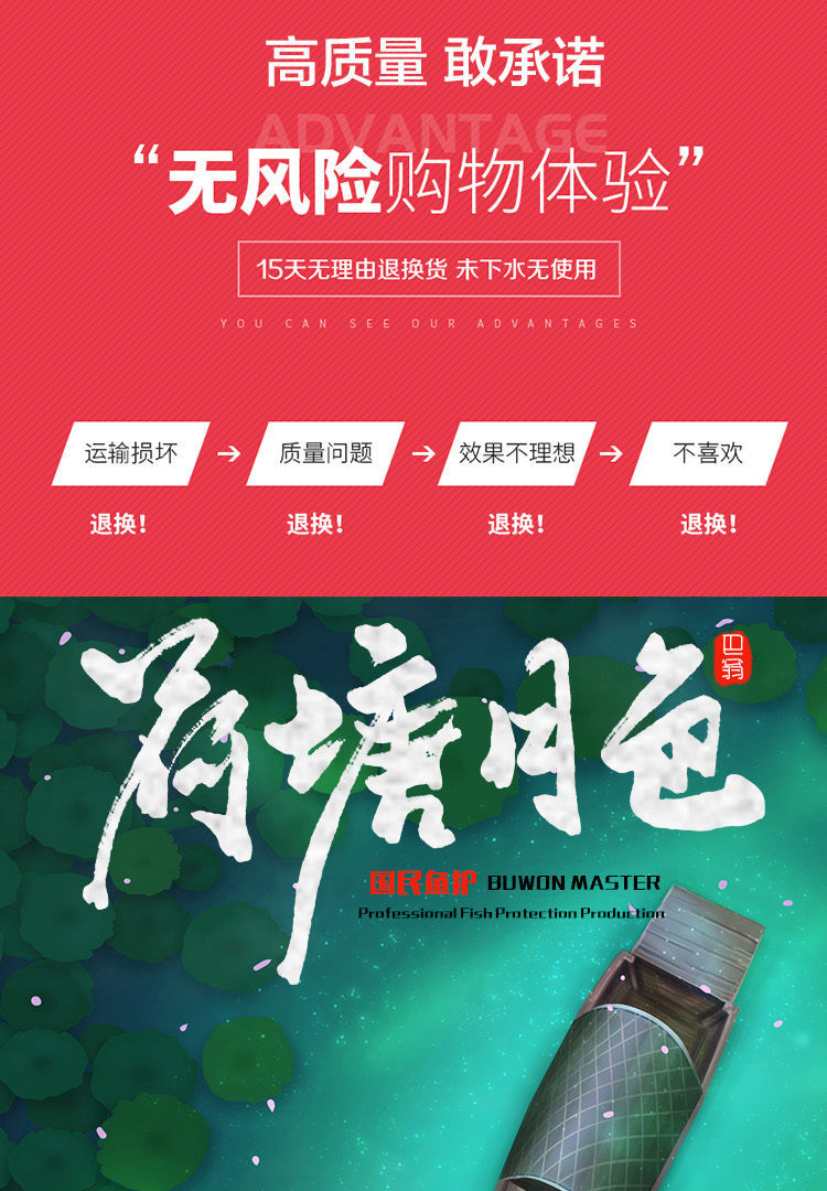 加厚鱼护新款万向定位黑坑鱼护纳米涂胶卡边渔护厂家批发渔网网兜