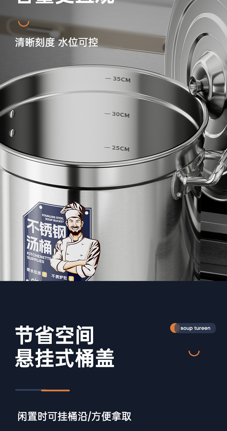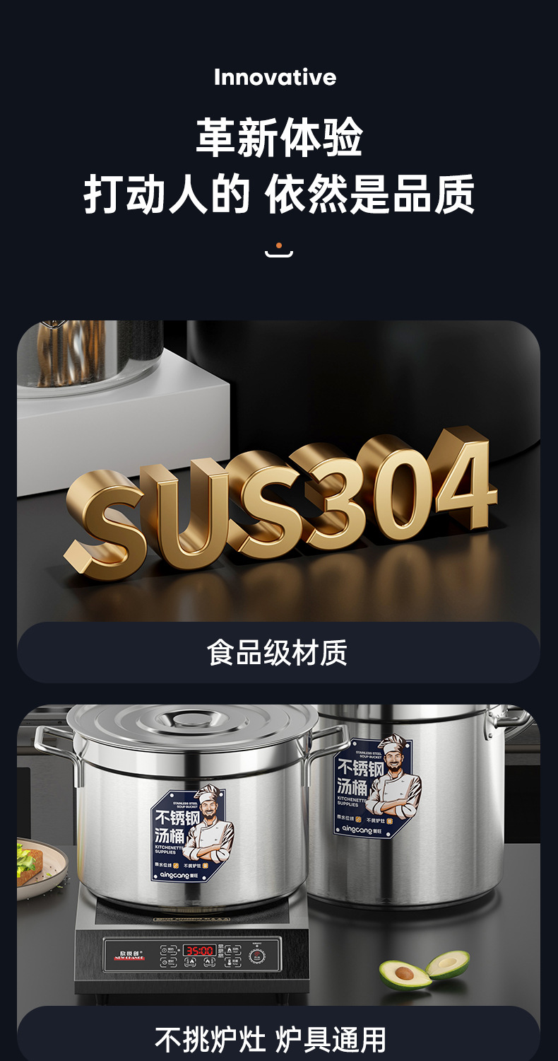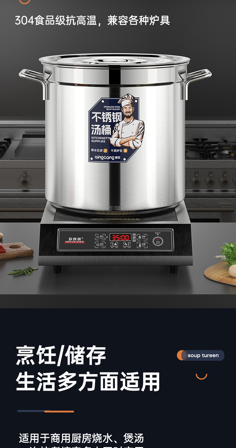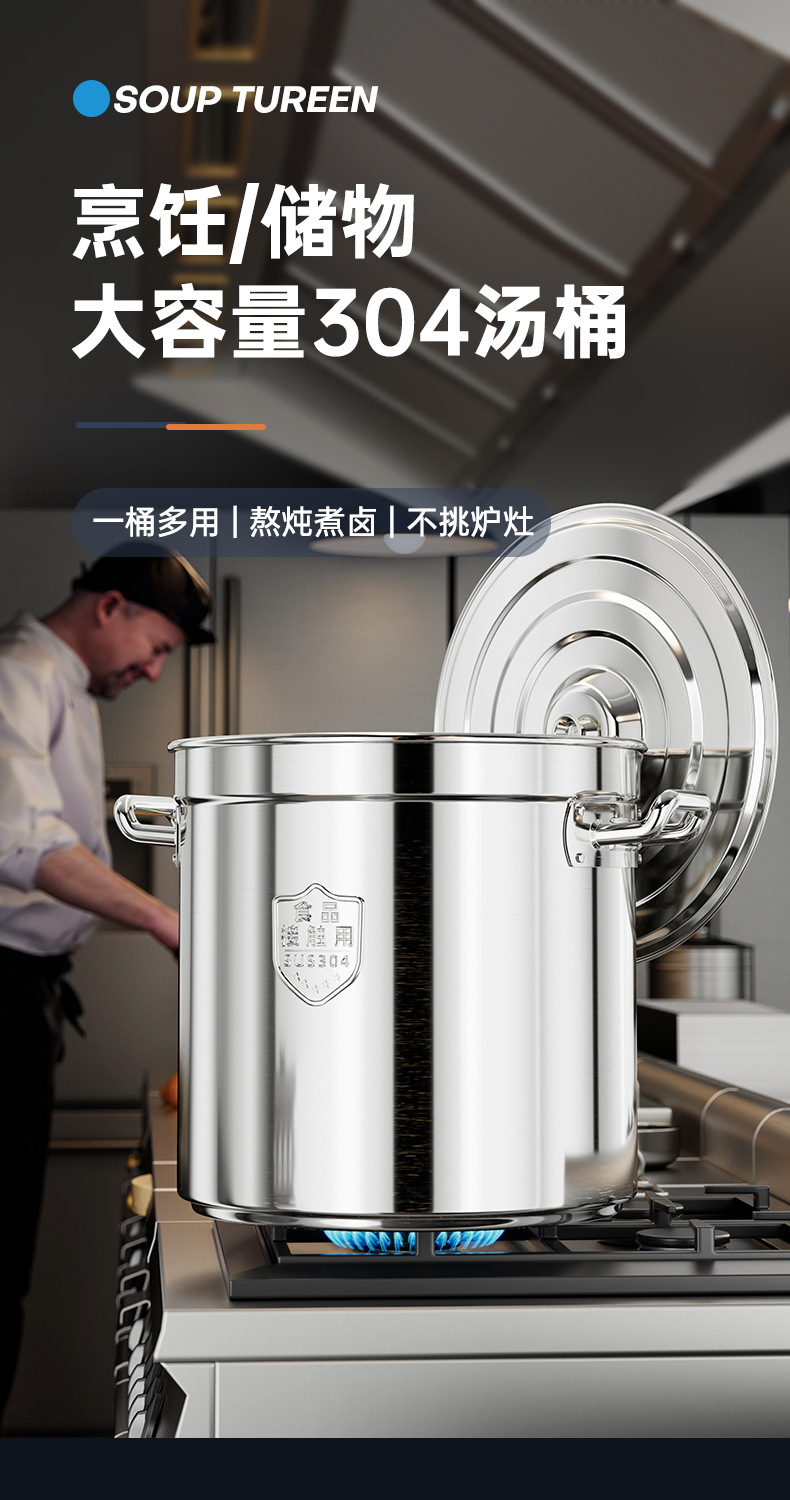 【一件包邮】304不锈钢桶带盖汤桶大容量储水桶饭堂卤肉商用汤锅