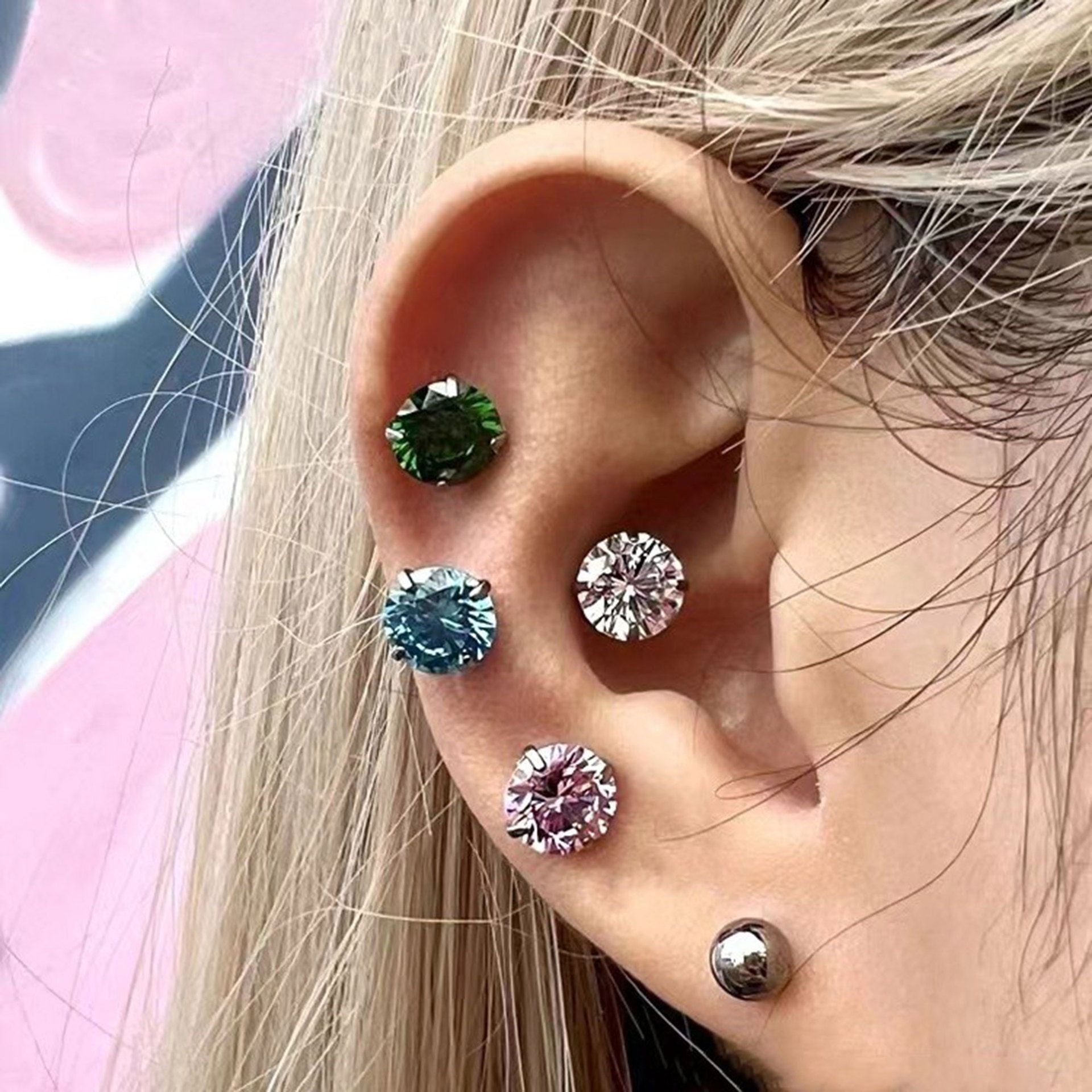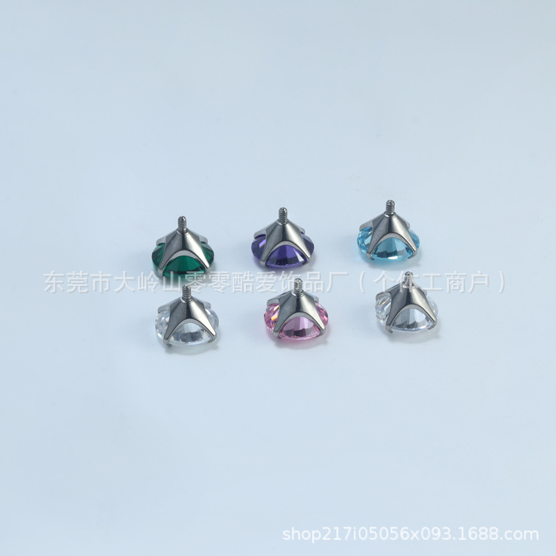 F136钛合金5A锆石爪镶耳钉鼻钉内螺旋替换头爆闪穿刺饰品配件批发