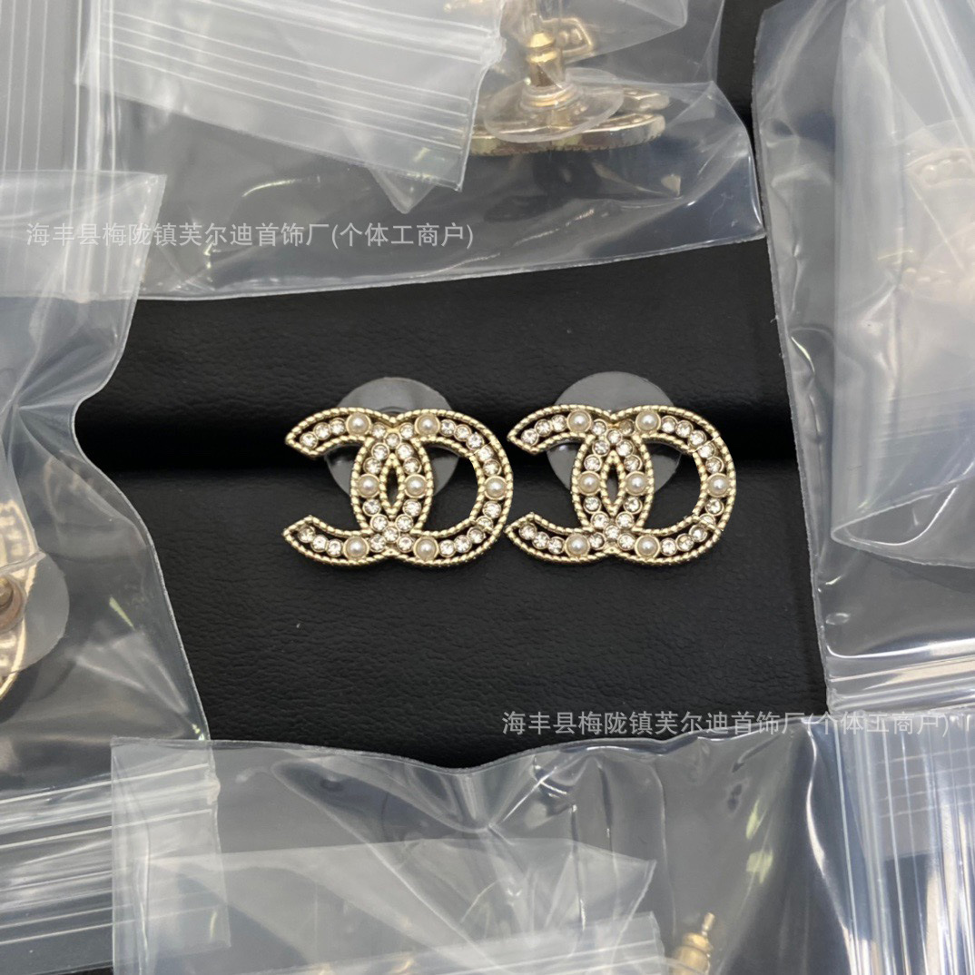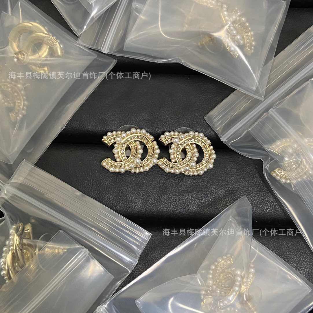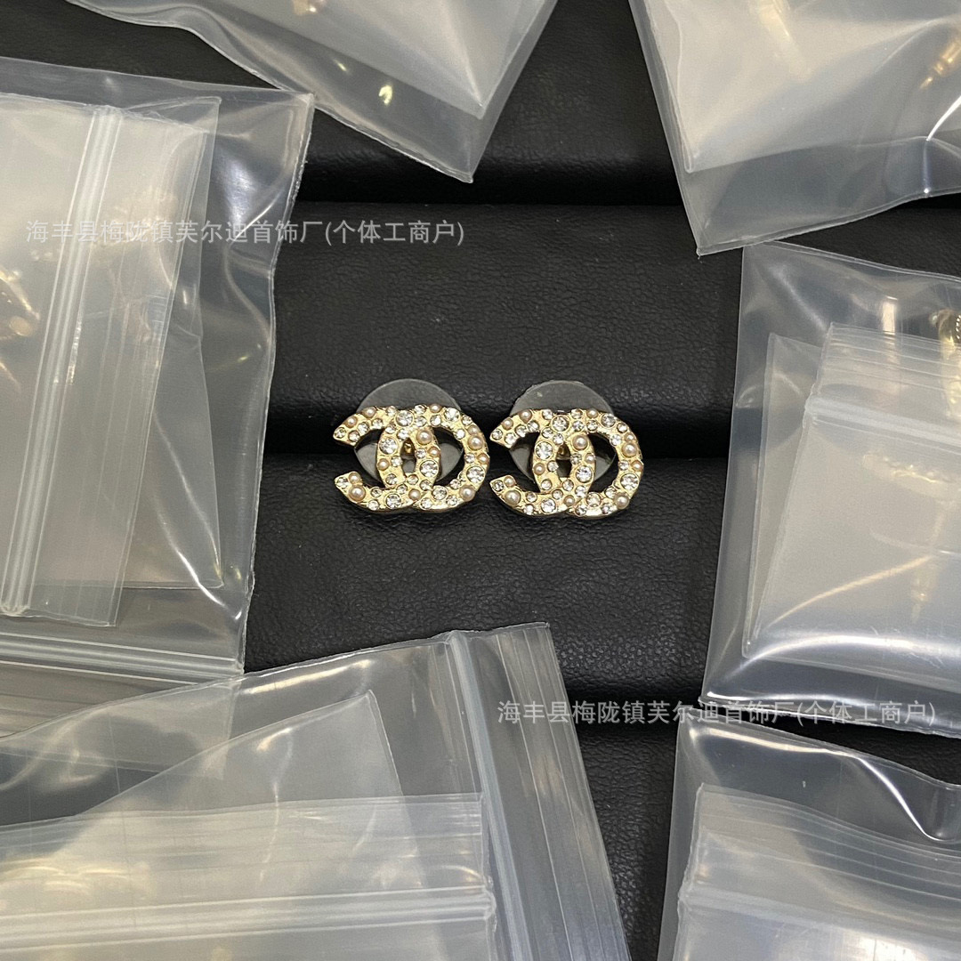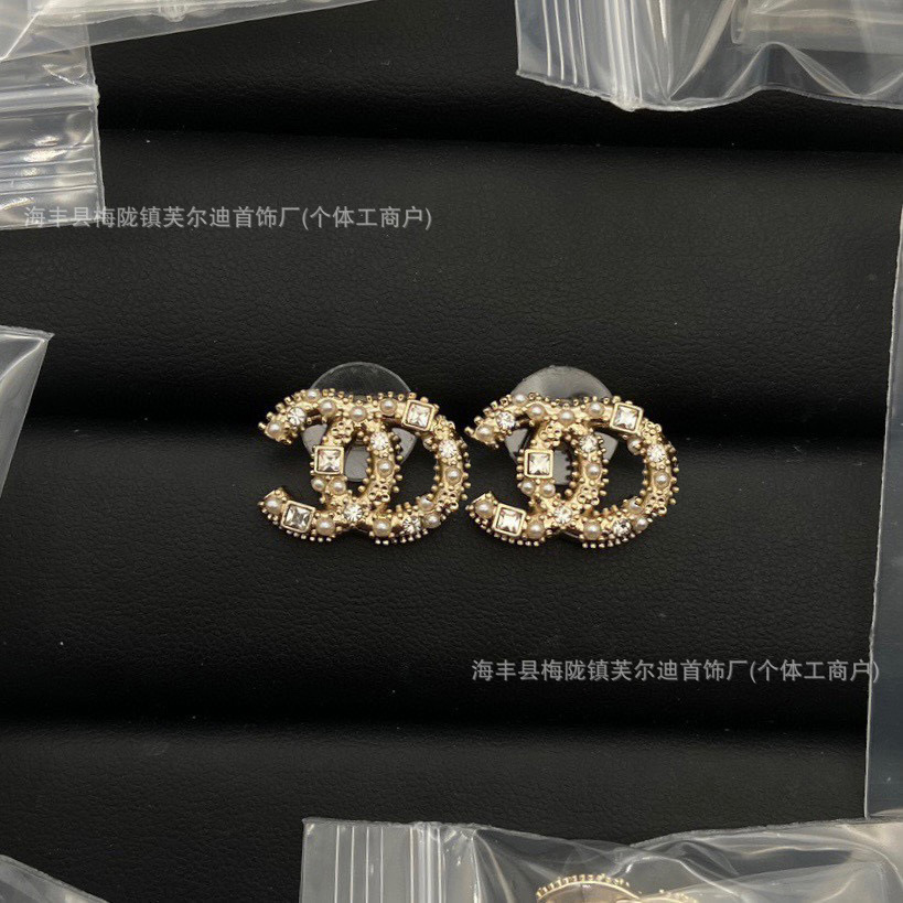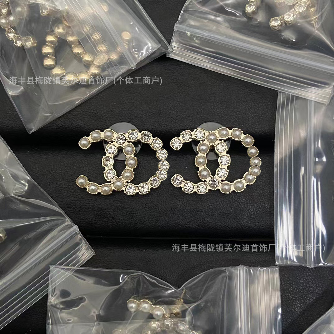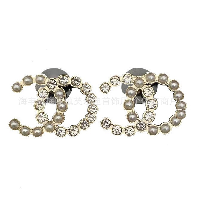 小香双C珍珠经典耳钉 香家珍珠拼钻高版本耳环香奶奶新款字母耳饰