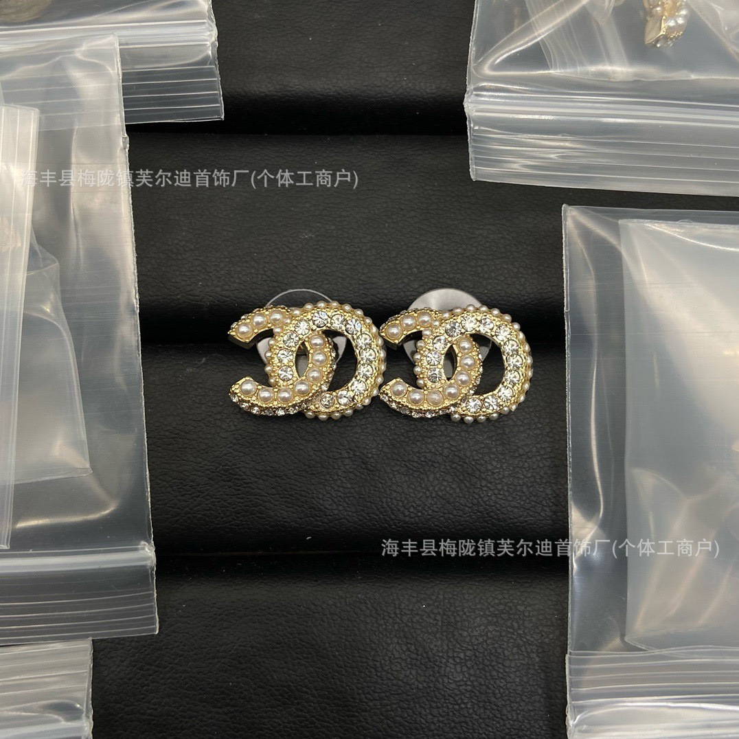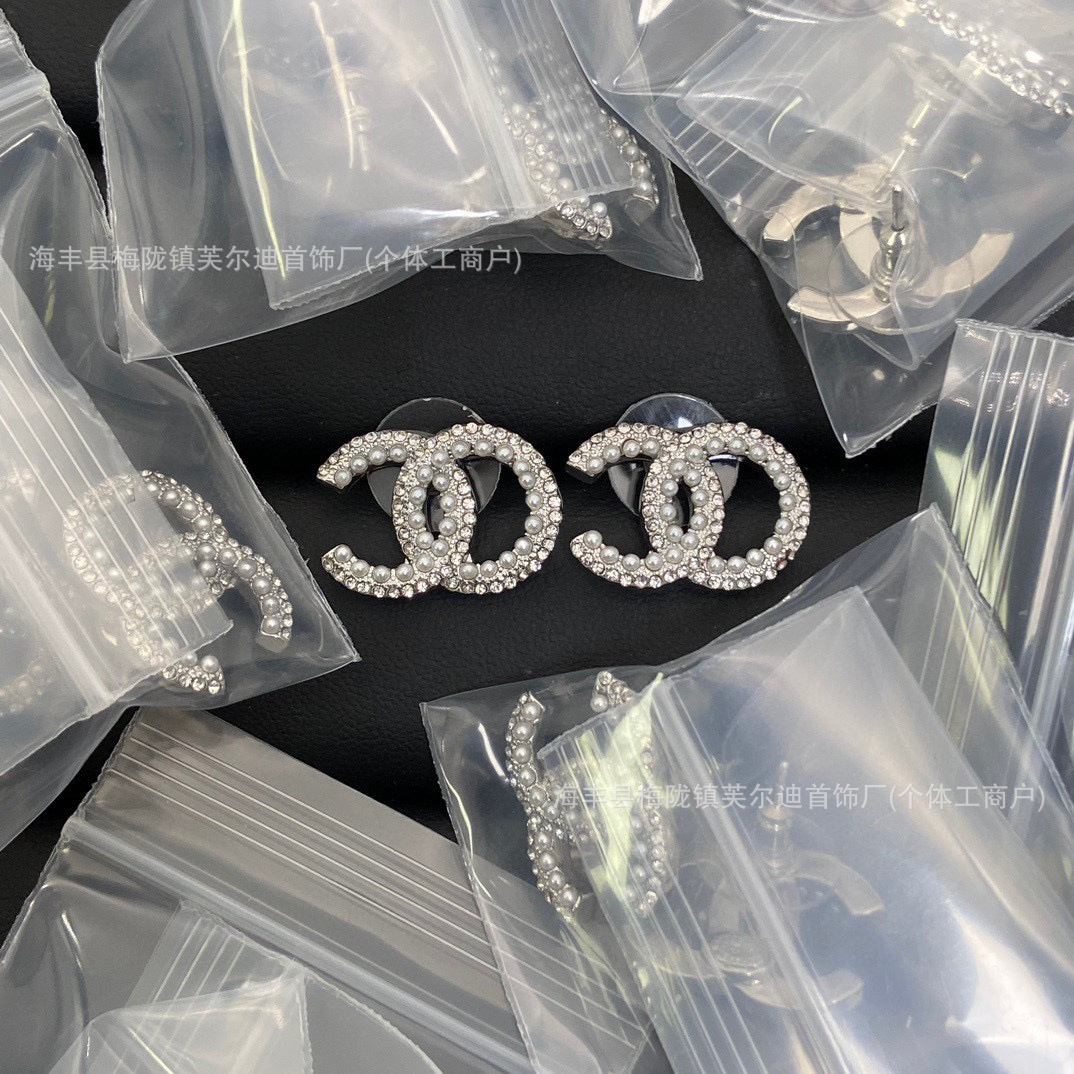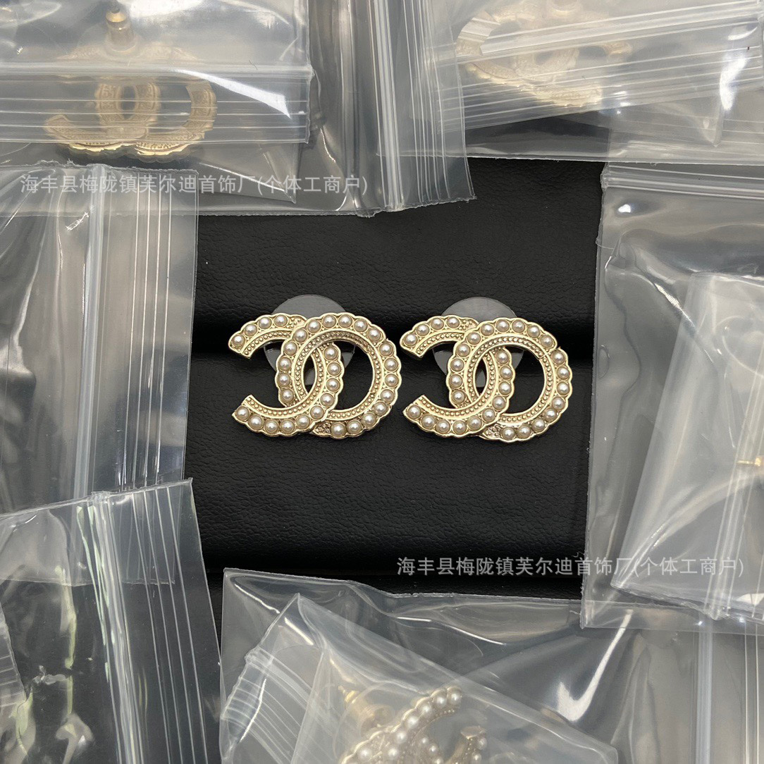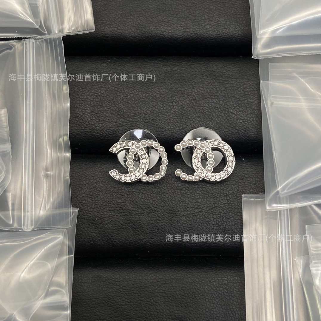 小香双C珍珠经典耳钉 香家珍珠拼钻高版本耳环香奶奶新款字母耳饰