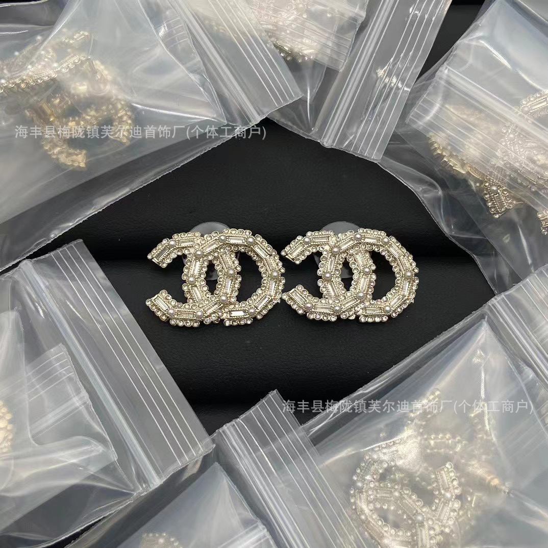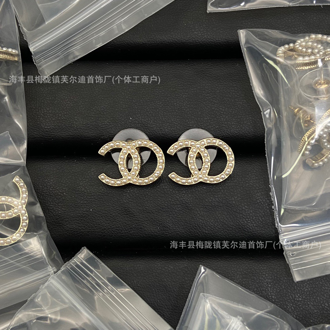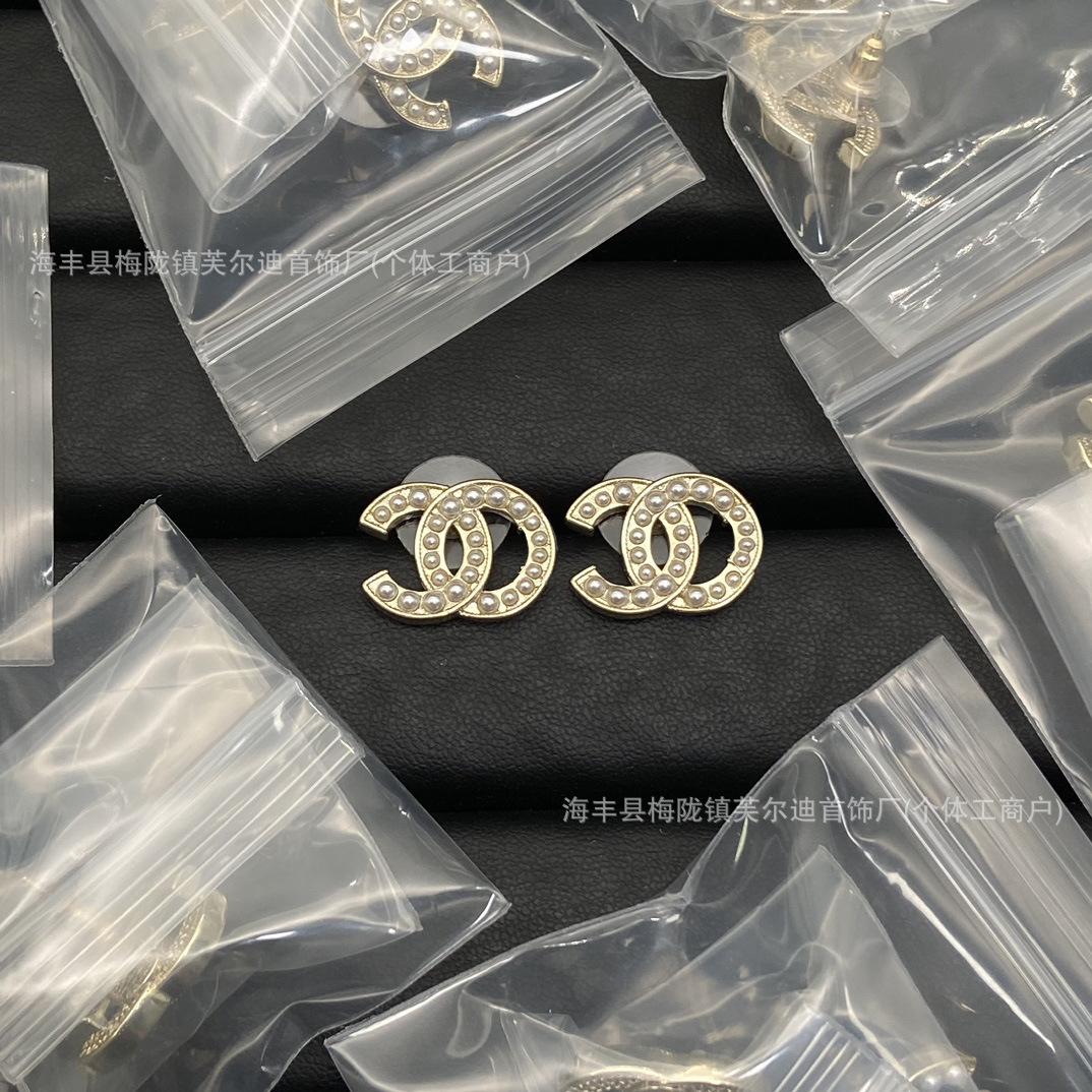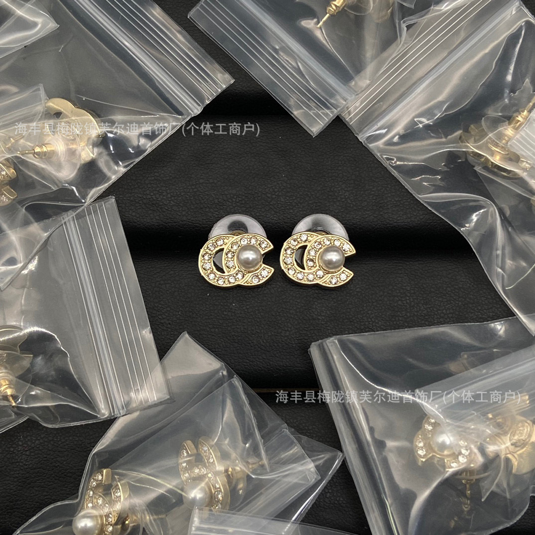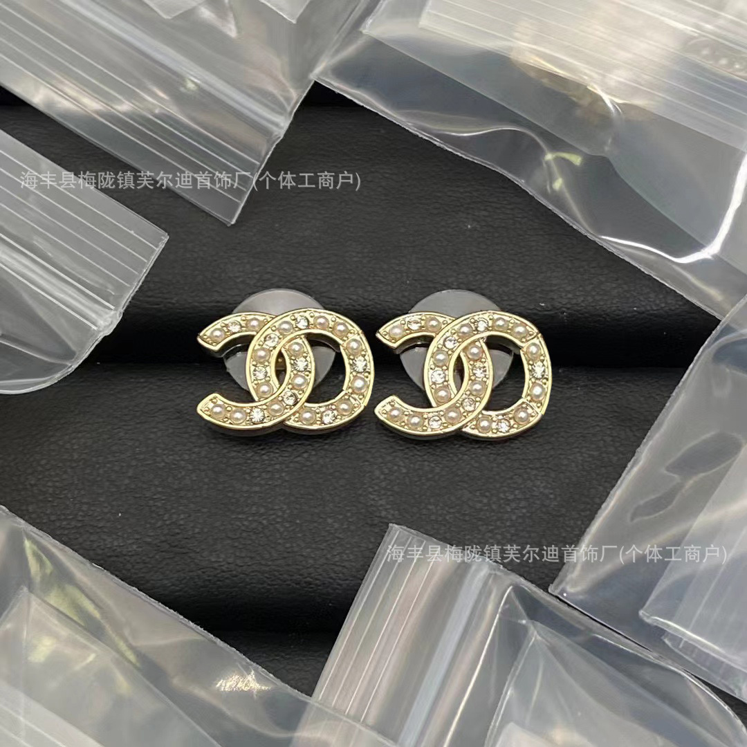 小香双C珍珠经典耳钉 香家珍珠拼钻高版本耳环香奶奶新款字母耳饰