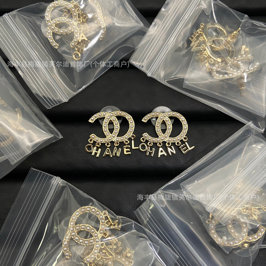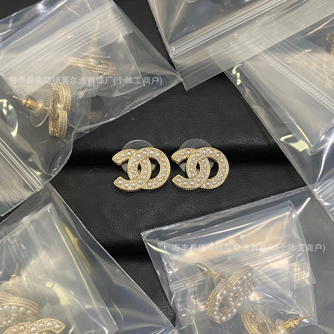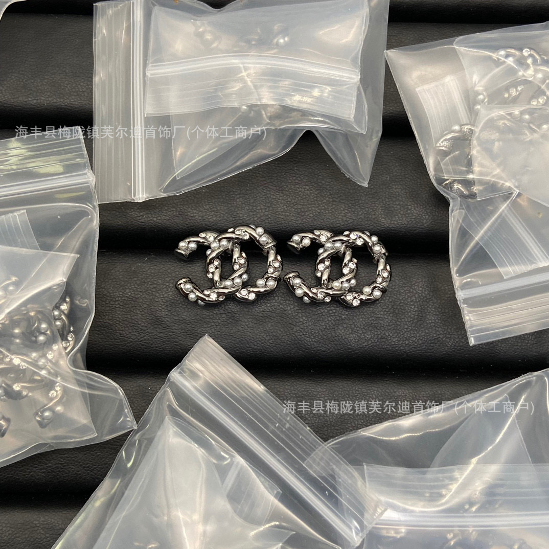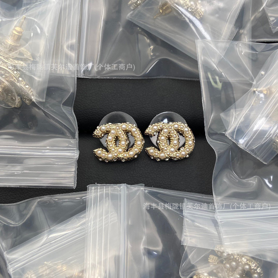 小香双C珍珠经典耳钉 香家珍珠拼钻高版本耳环香奶奶新款字母耳饰