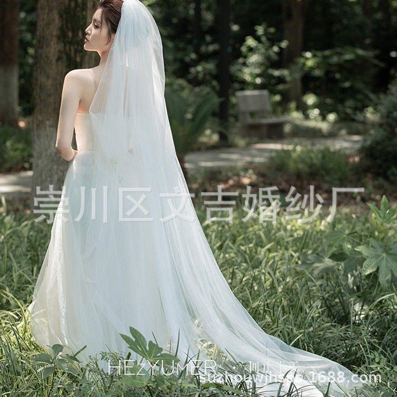 新娘头纱短款网红两层蝴蝶结丝带简约发光地摊软蓬蓬白色儿童批发