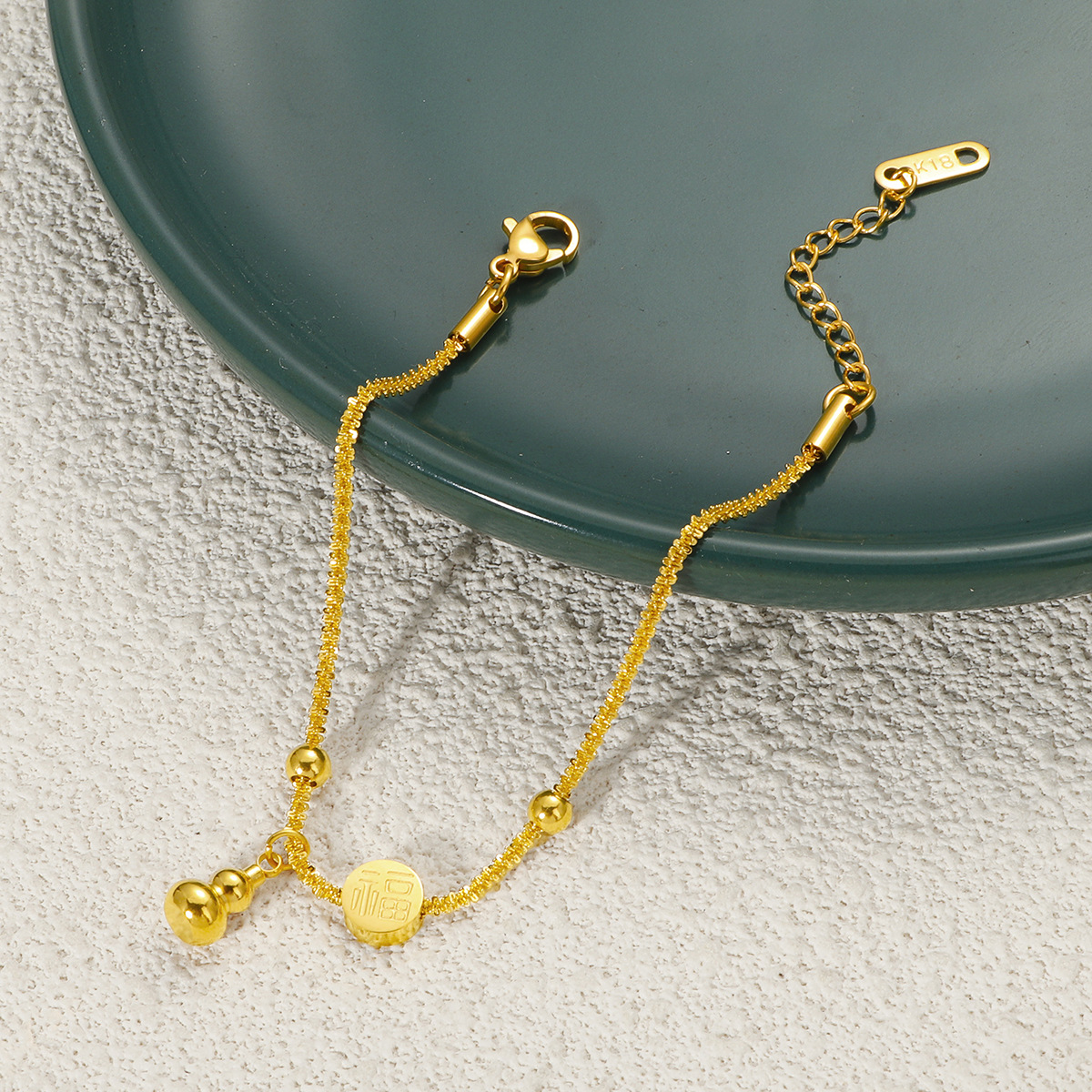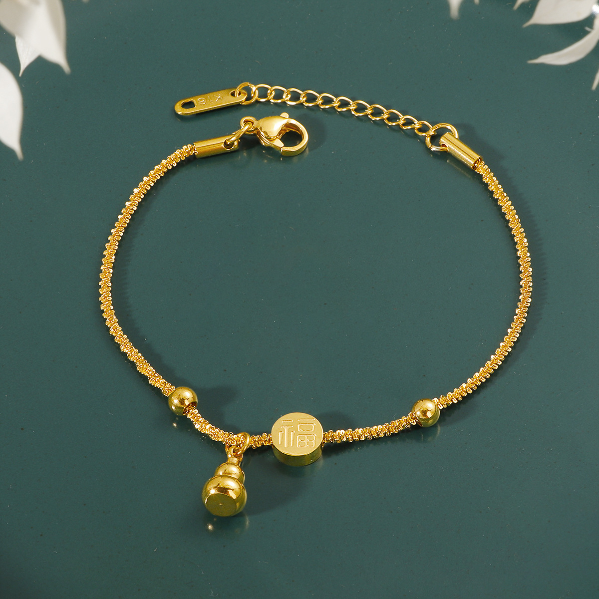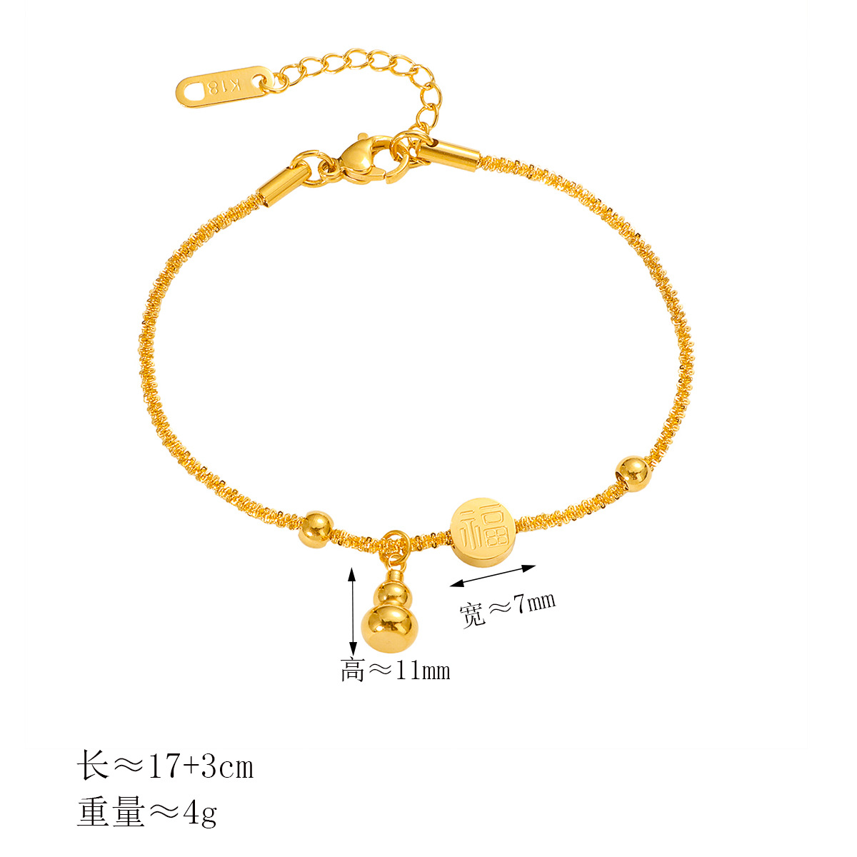 2024年新款福字葫芦手链平安福牌钛钢手饰轻奢精致新中式不掉色链