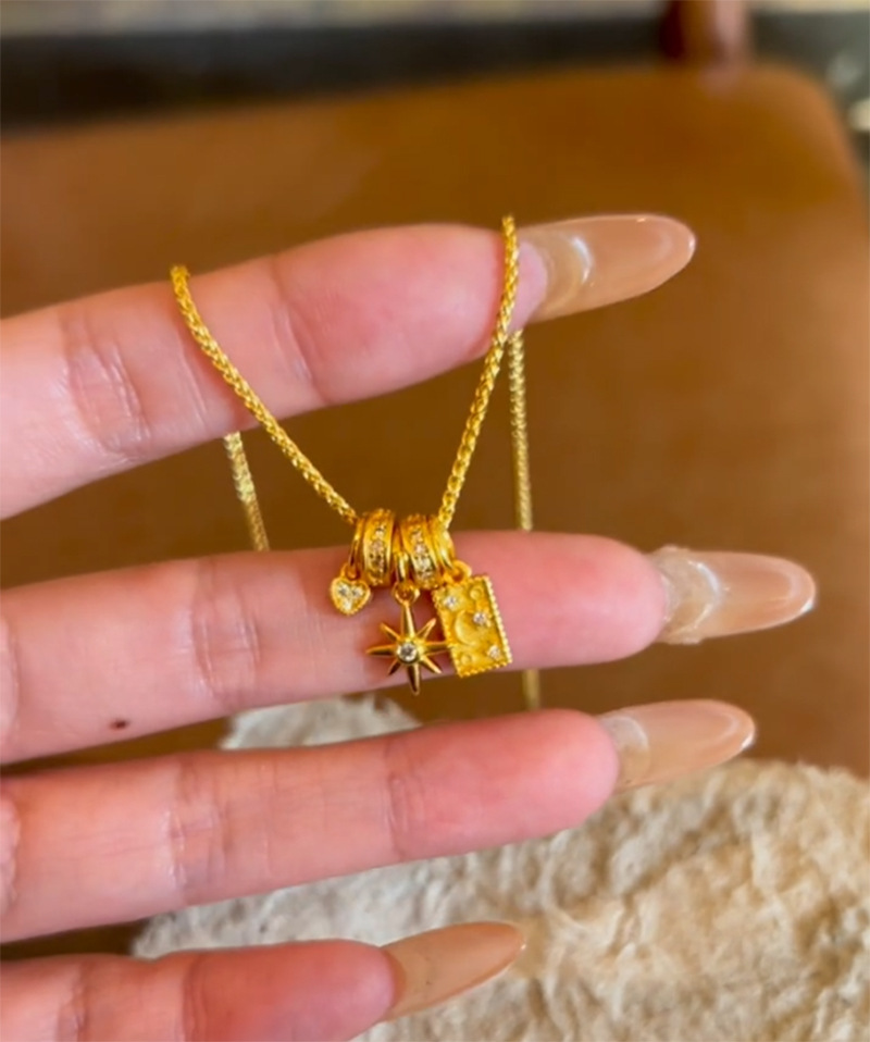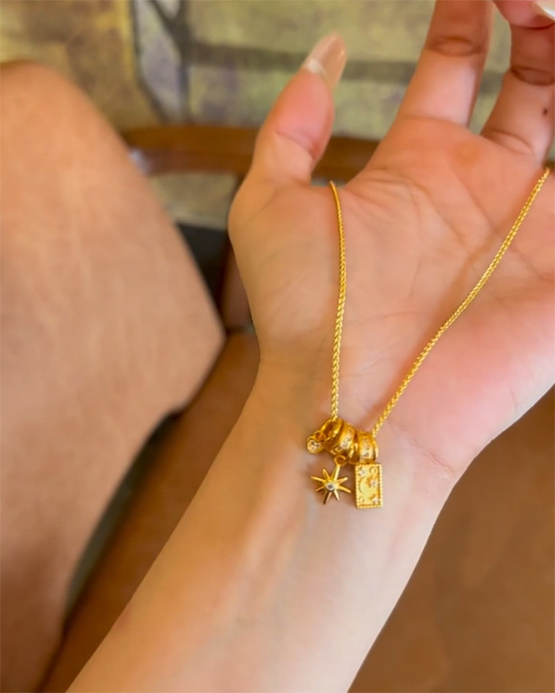 小红书爆款星月神话项链女太阳花点缀小星星diy月光牌心形吊坠