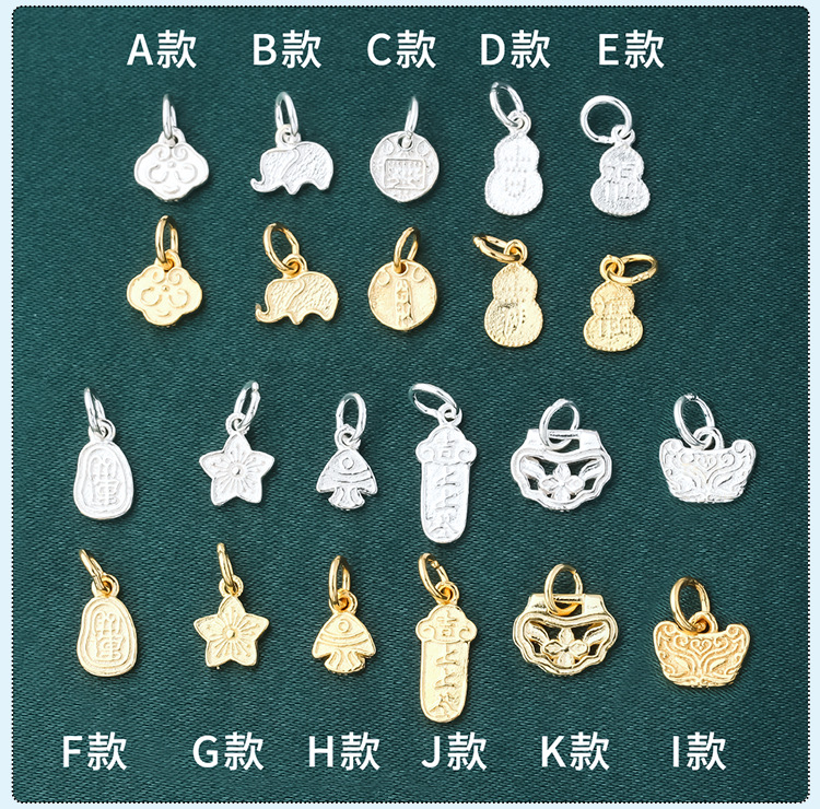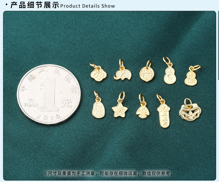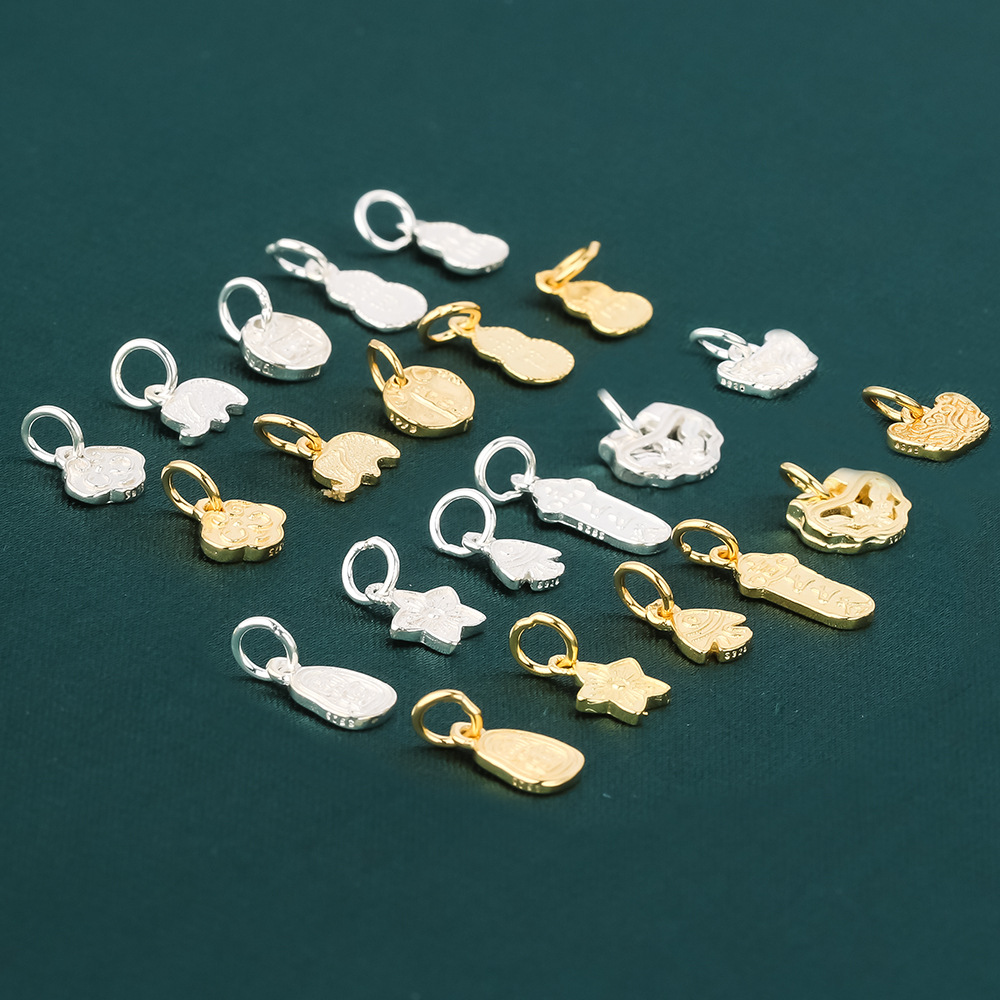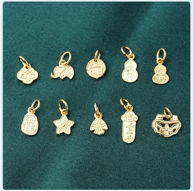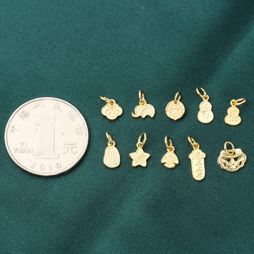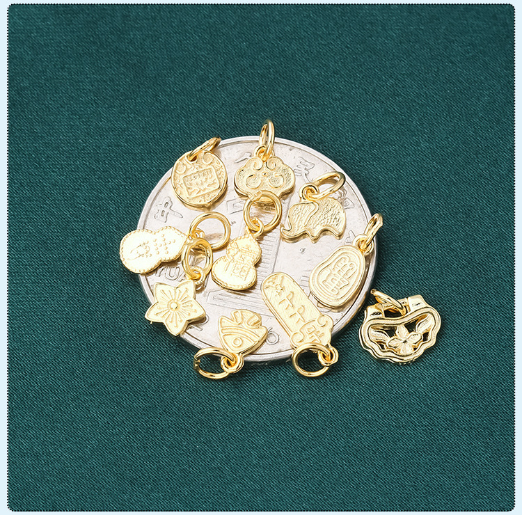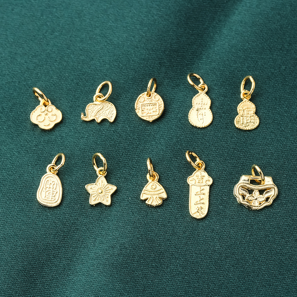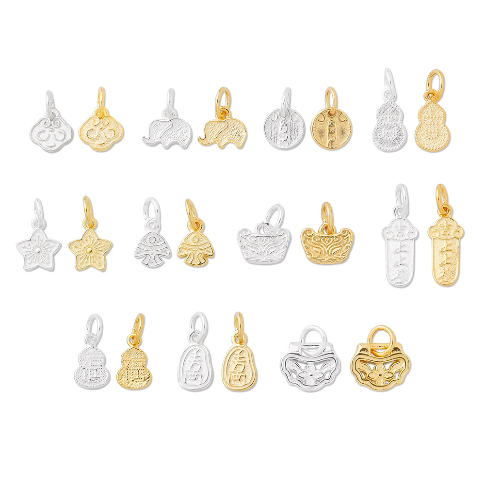 s925纯银镀黄金色复古小象如意福禄桃花上上签五路财神小提溜吊坠