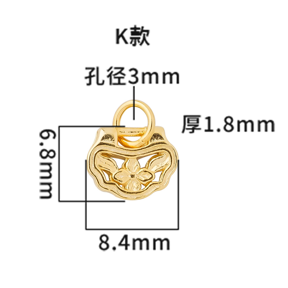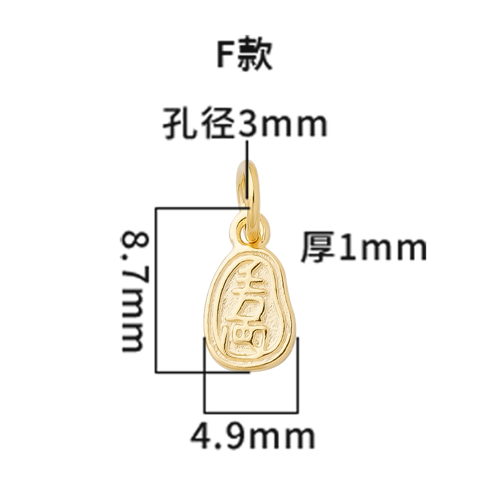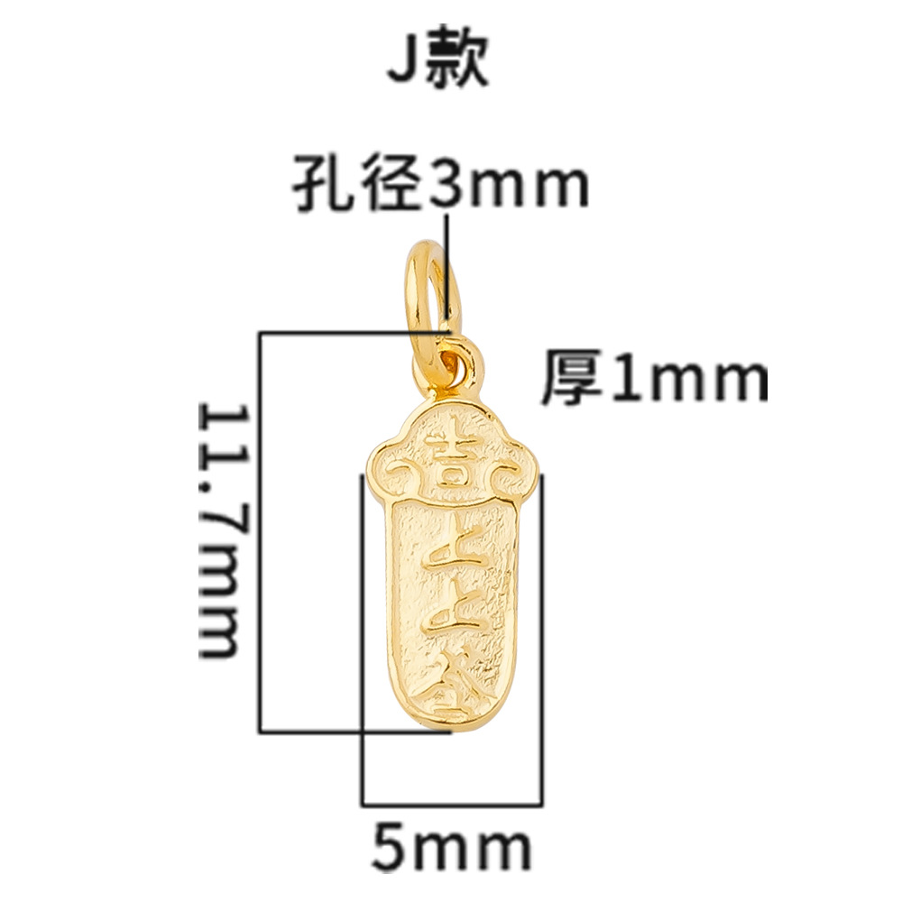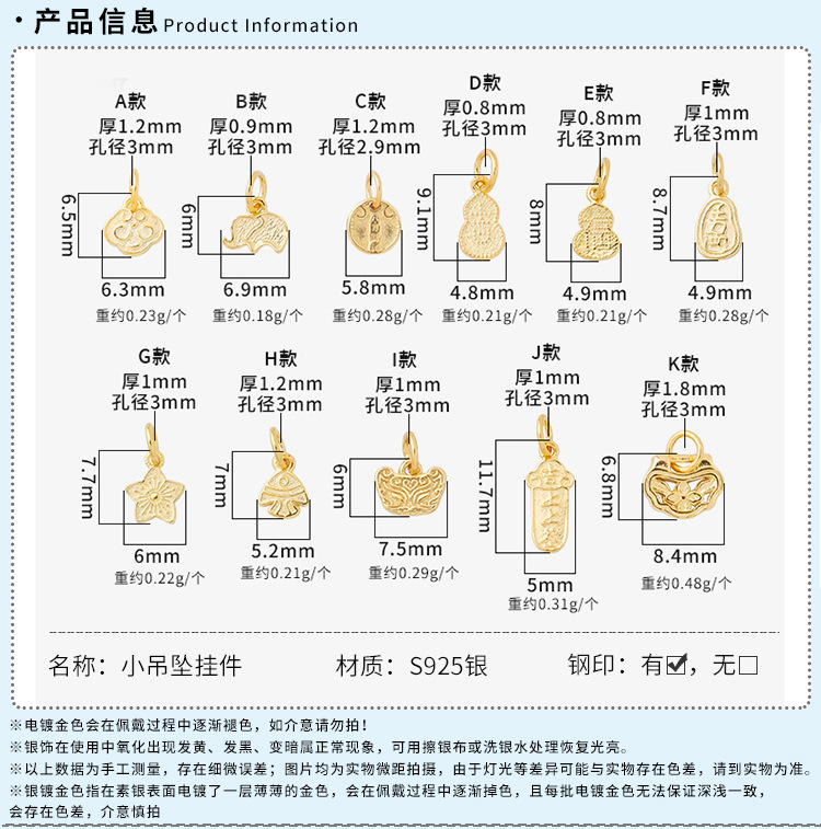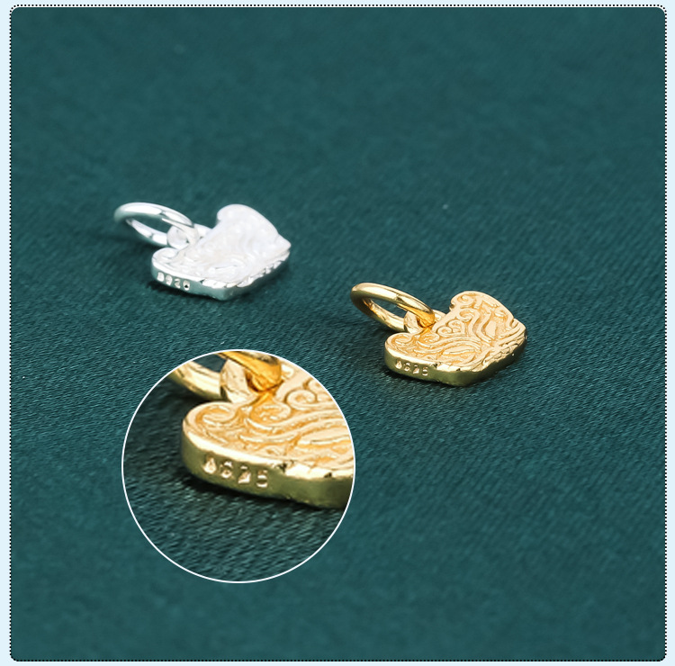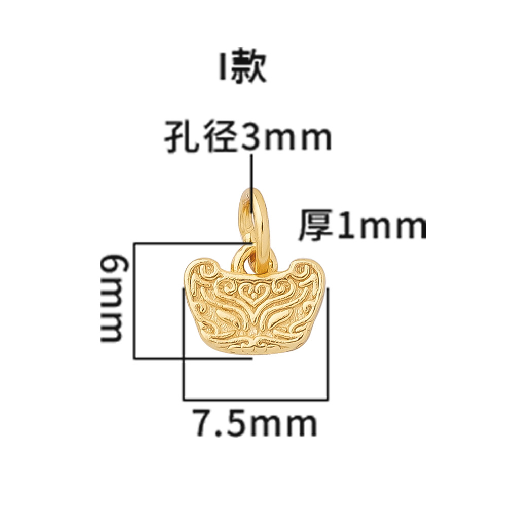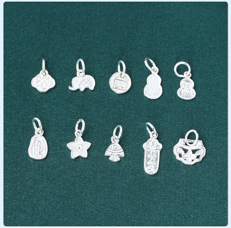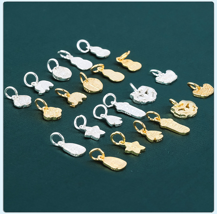 s925纯银镀黄金色复古小象如意福禄桃花上上签五路财神小提溜吊坠