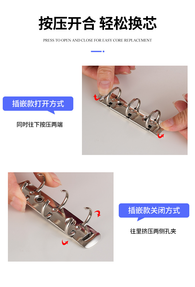金属圆形银色叻色A45678多环文件夹子6孔笔记本扣环活页夹装订夹