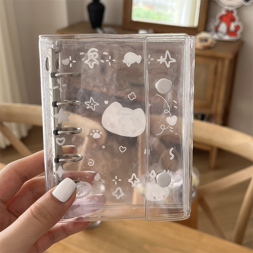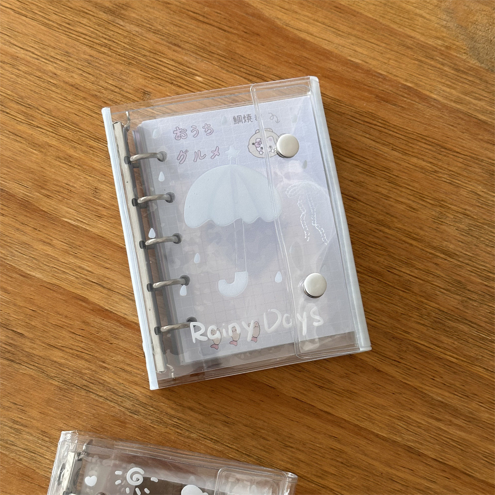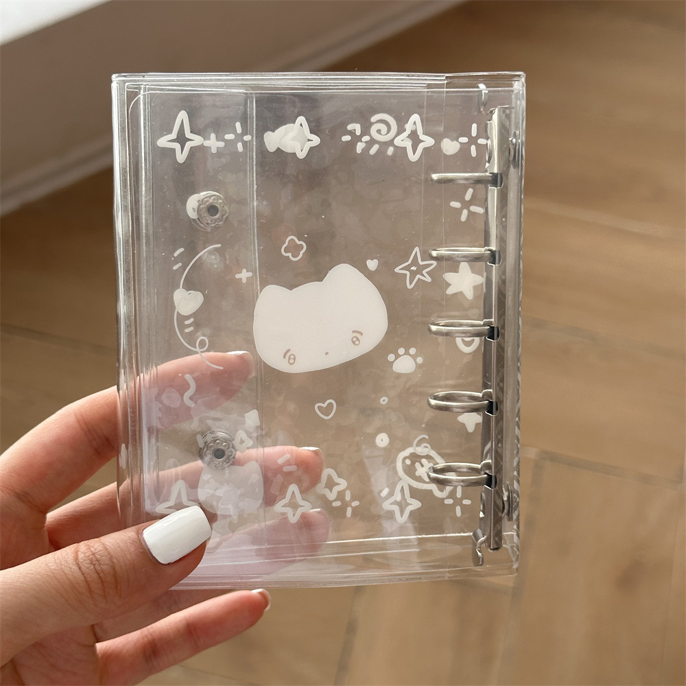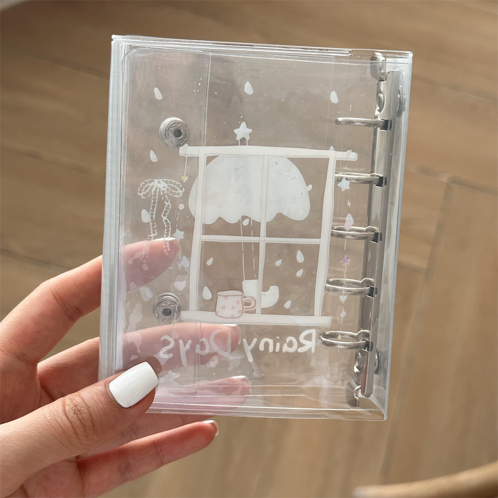 原创ins小清新雨天透明爱心猫猫m5活页本手账本pvc双扣日记本卡册