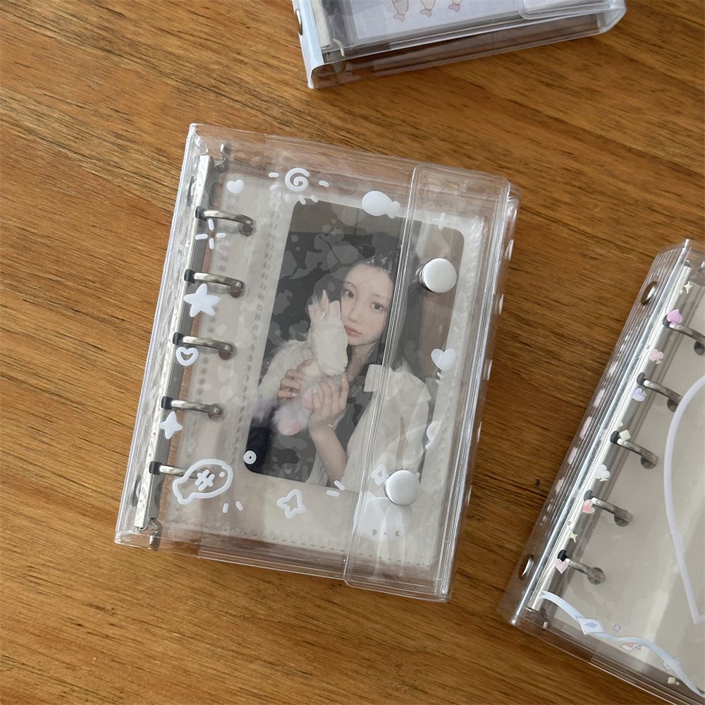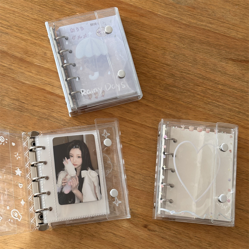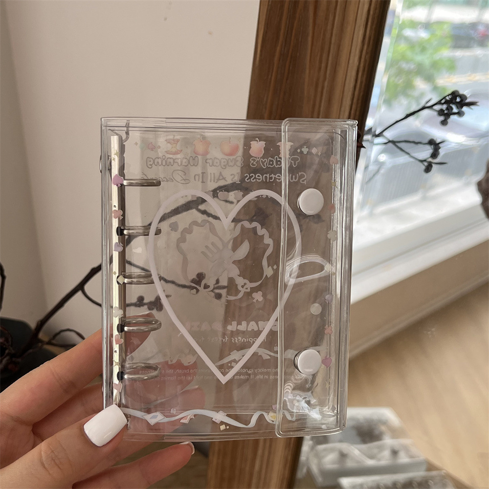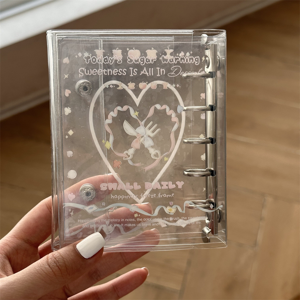 原创ins小清新雨天透明爱心猫猫m5活页本手账本pvc双扣日记本卡册