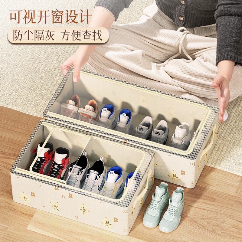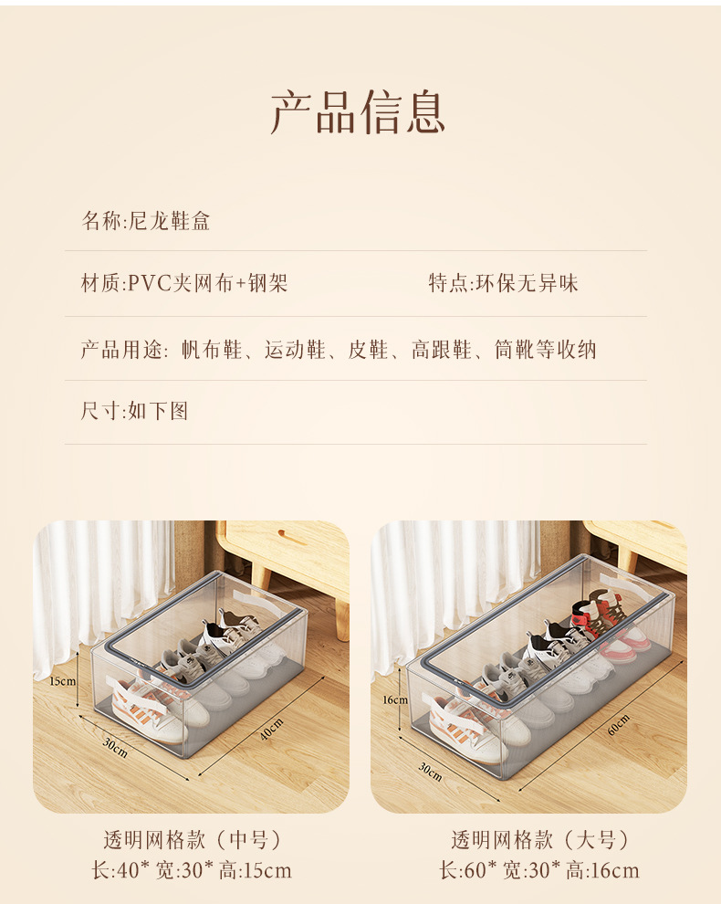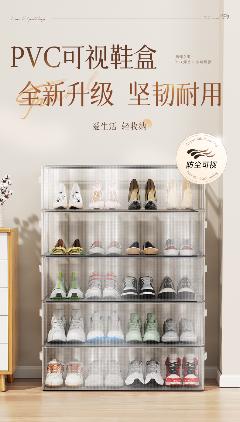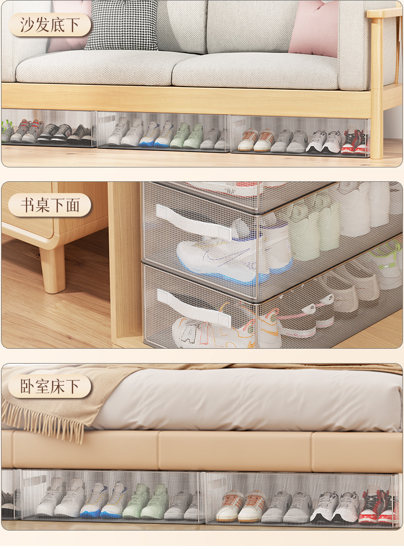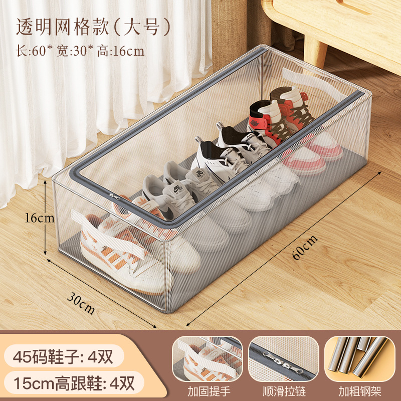 可折叠收纳鞋盒家用免安装鞋子收纳盒透明鞋靴收纳箱带盖防尘鞋盒