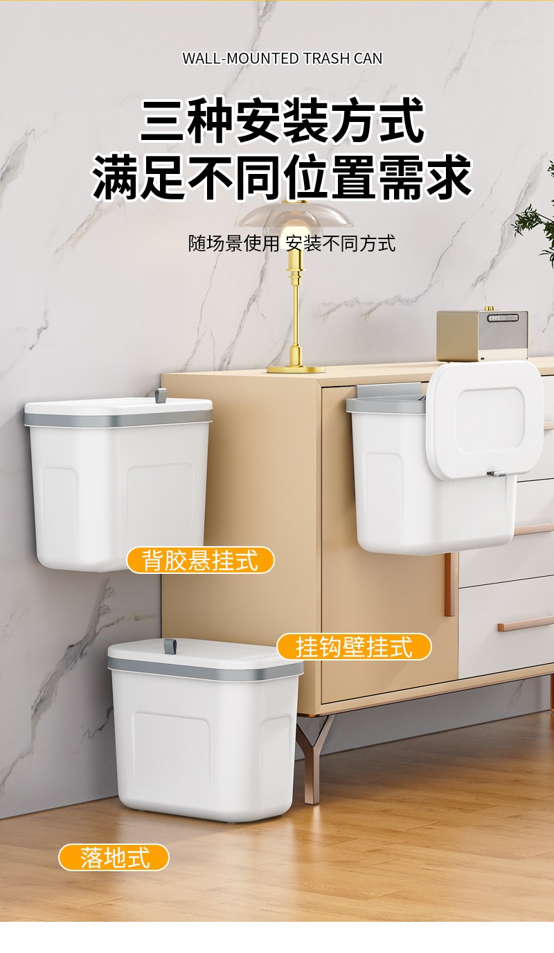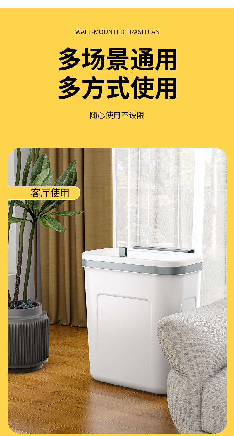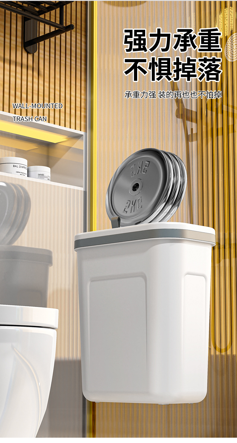 工厂货壁挂式垃圾桶家用高颜值塑料厕所带盖大号悬挂式办公室厨房