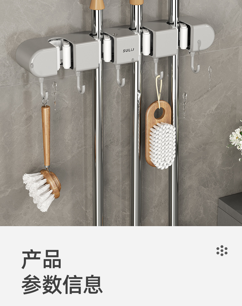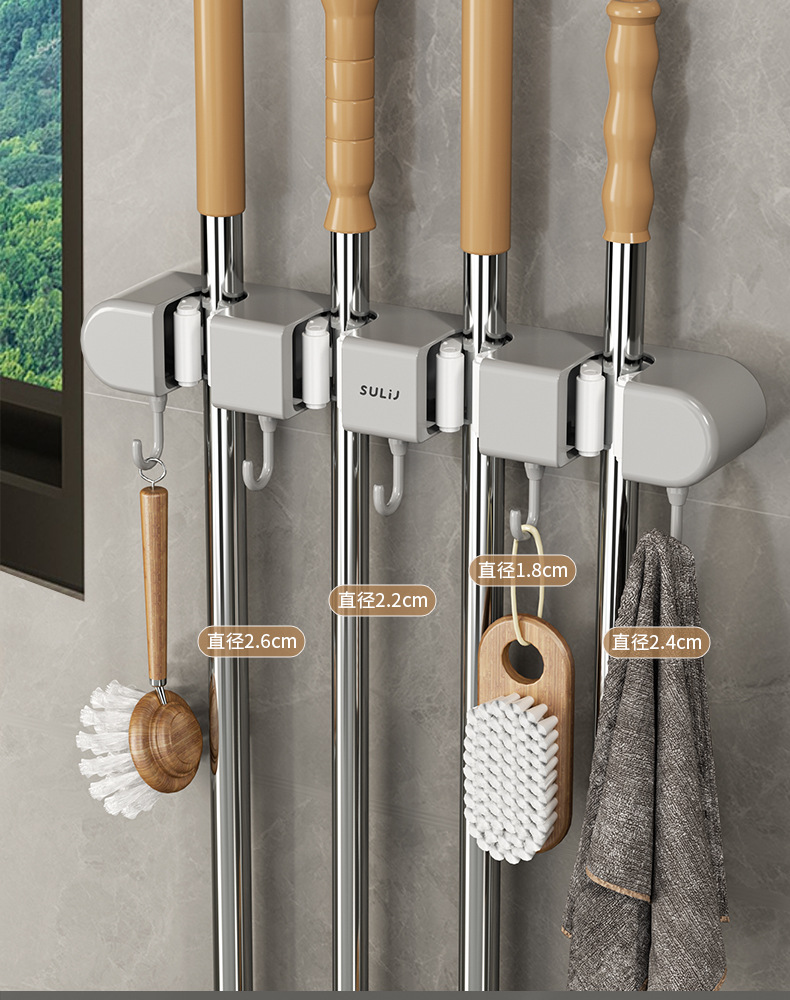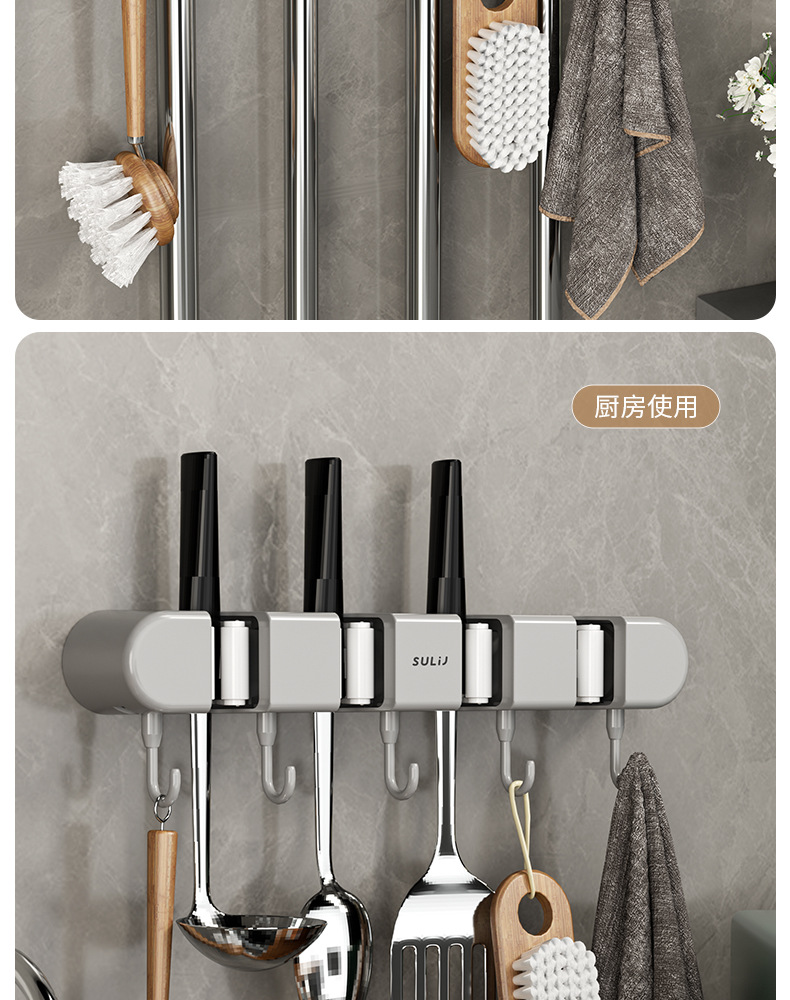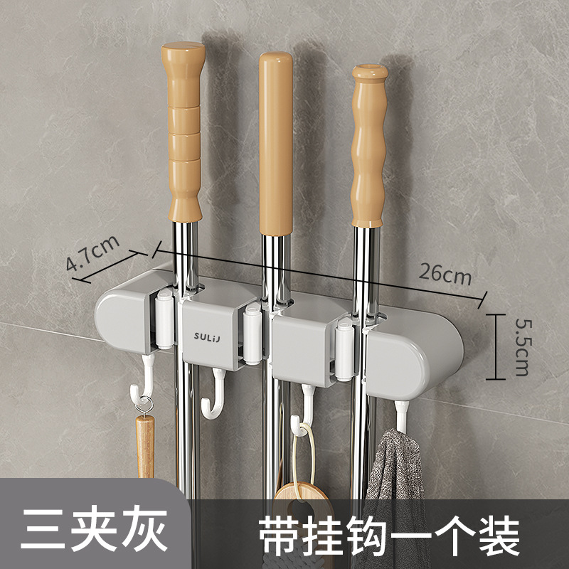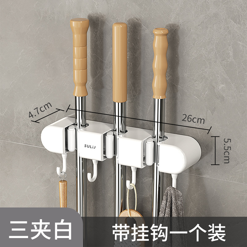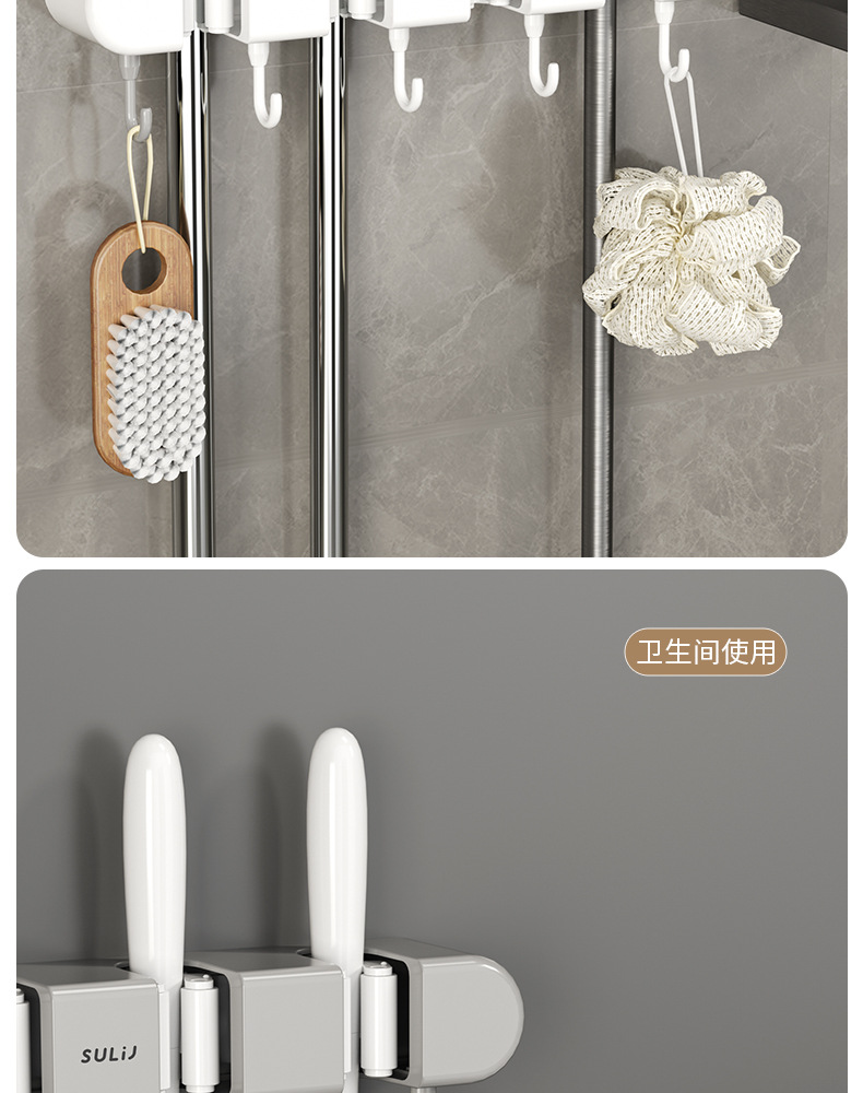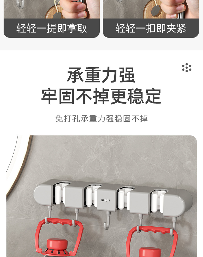 拖把夹挂钩壁挂免打孔拖把架卫生间拖布收纳挂钩拖把架固定卡扣