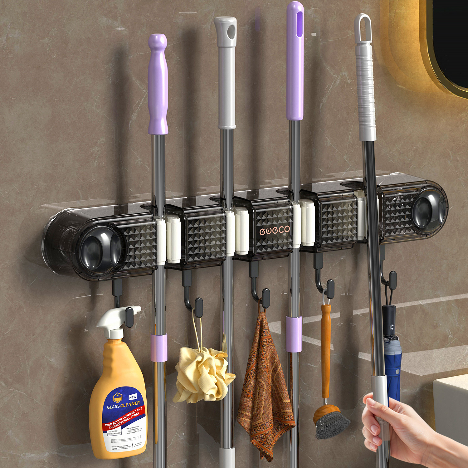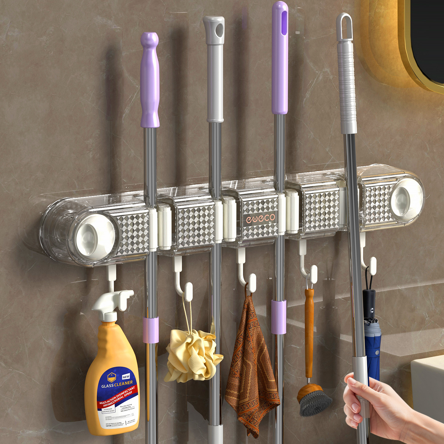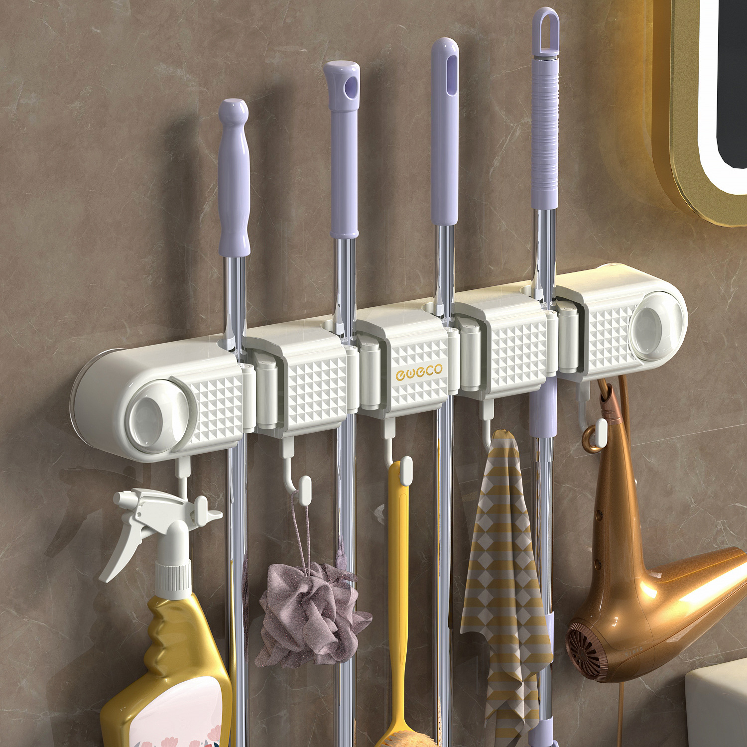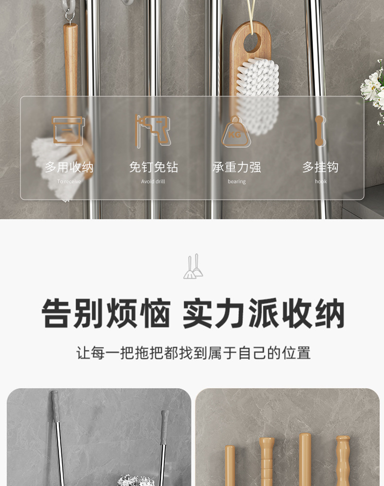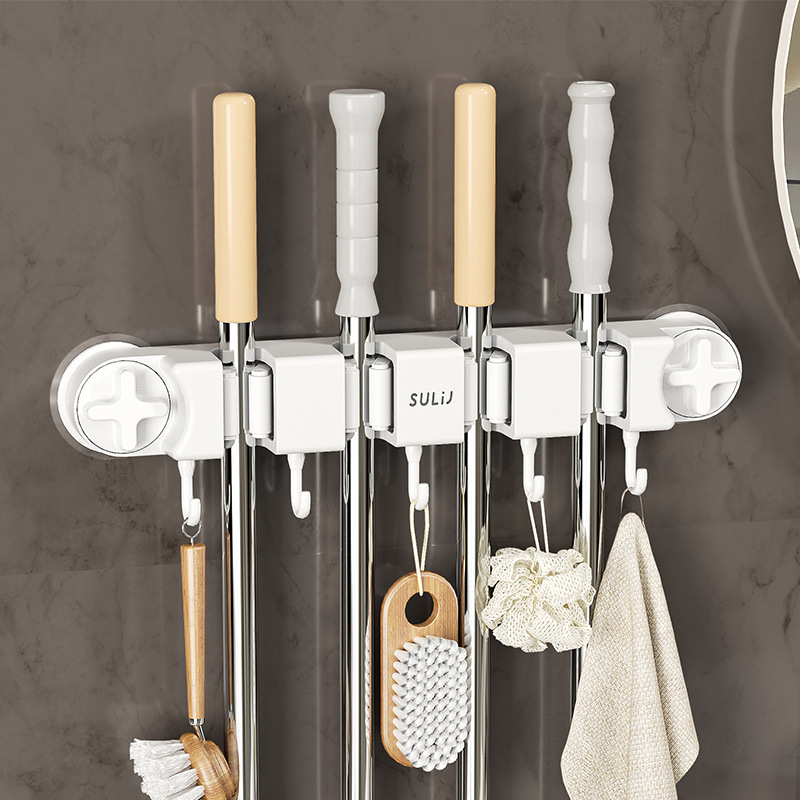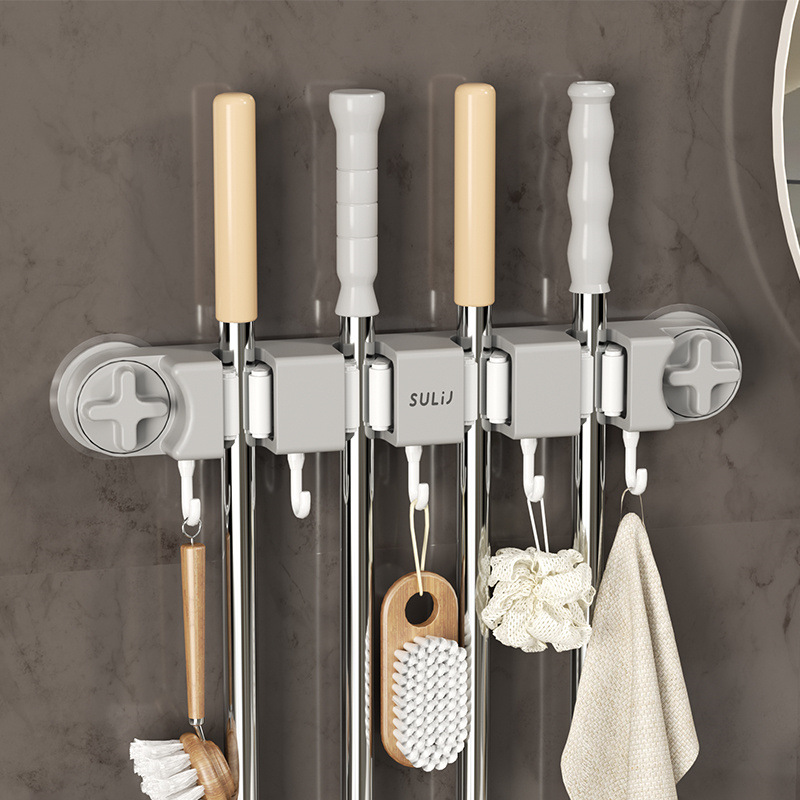 拖把夹挂钩壁挂免打孔拖把架卫生间拖布收纳挂钩拖把架固定卡扣