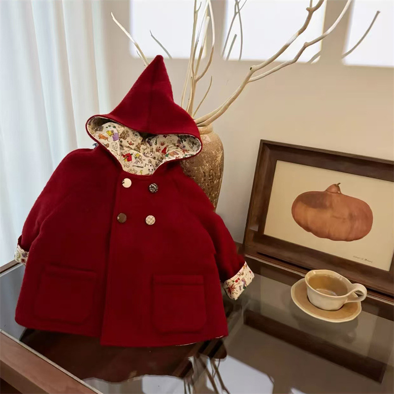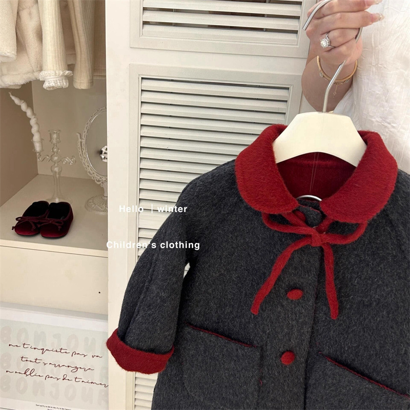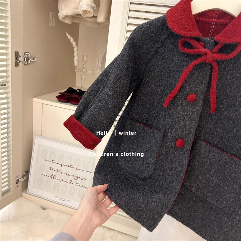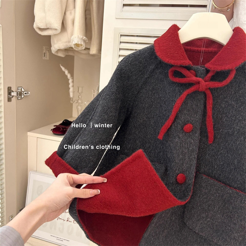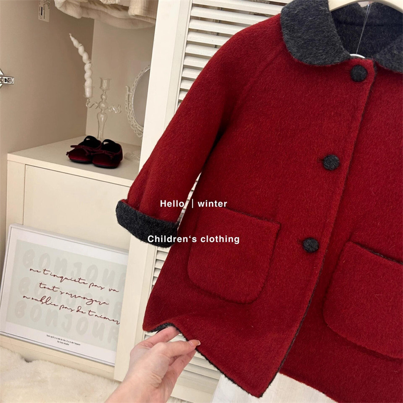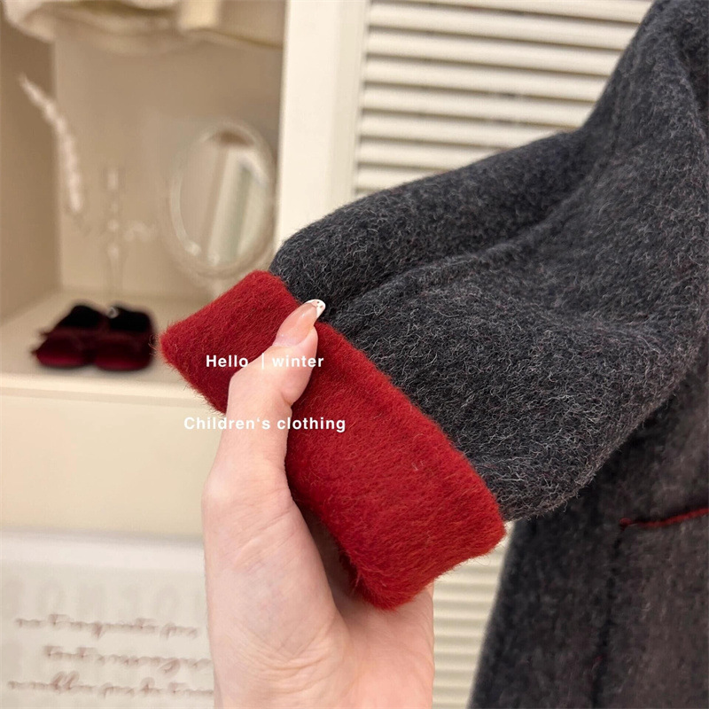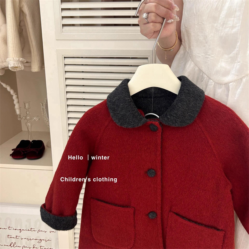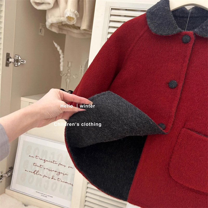咸柠七 女童大衣秋冬2024新款儿童两面穿毛呢外套中长款衣服韩版