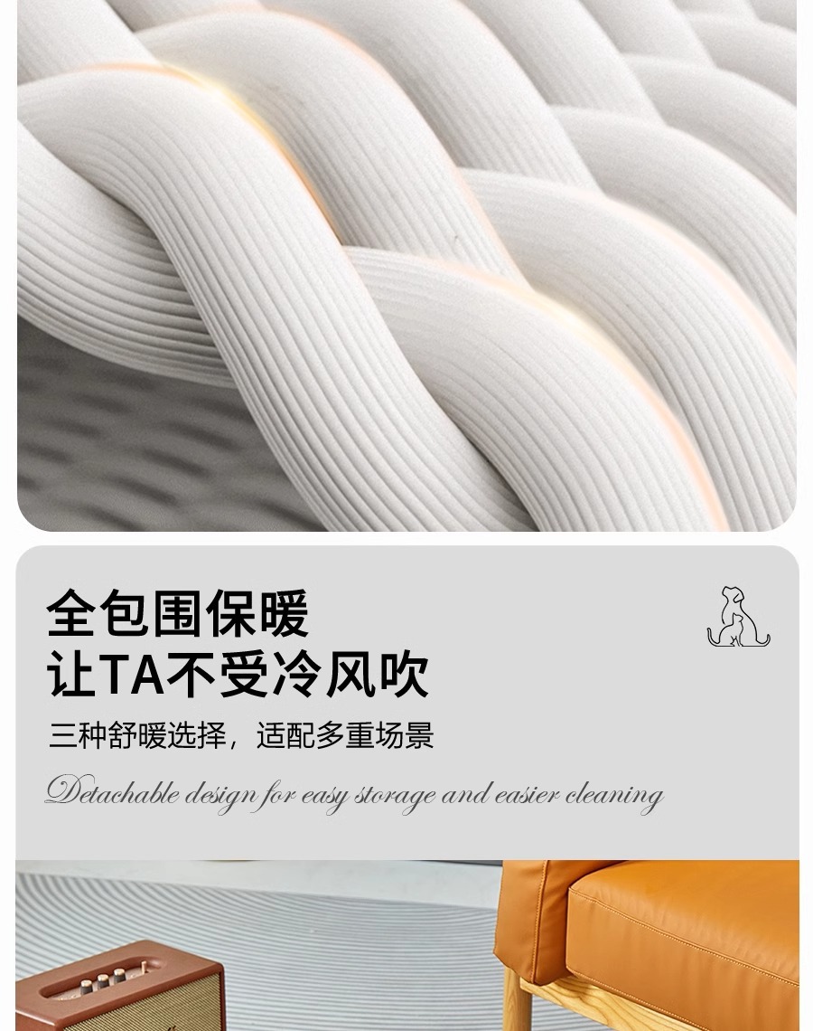 狗窝冬季保暖四季通用可拆洗半封闭猫窝小型犬睡垫子狗窝冬天保暖