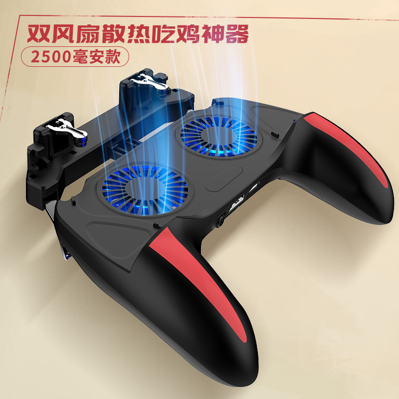 新款游戏手柄带电池手机散热器吃鸡神器风扇散热六指吃鸡手柄拉伸