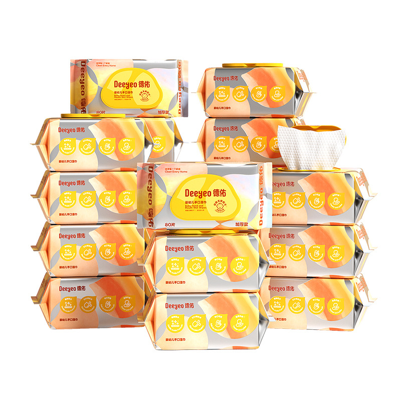 【严选】德佑湿巾婴儿手口湿巾80抽湿纸巾五包装婴儿湿巾批发