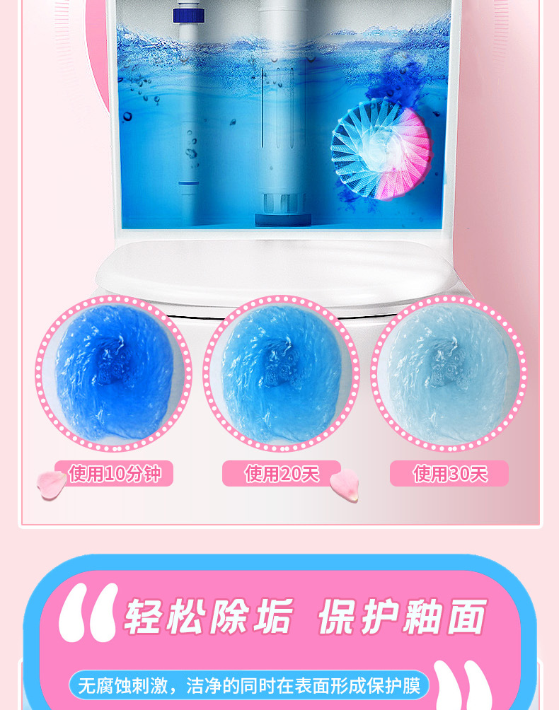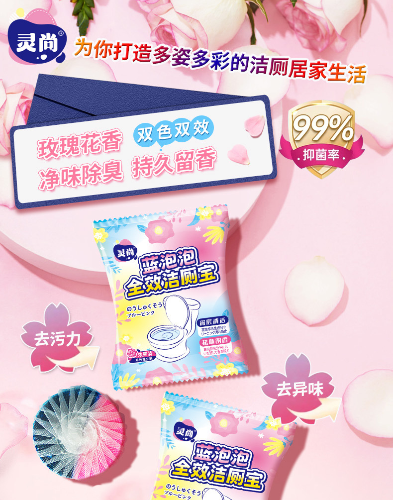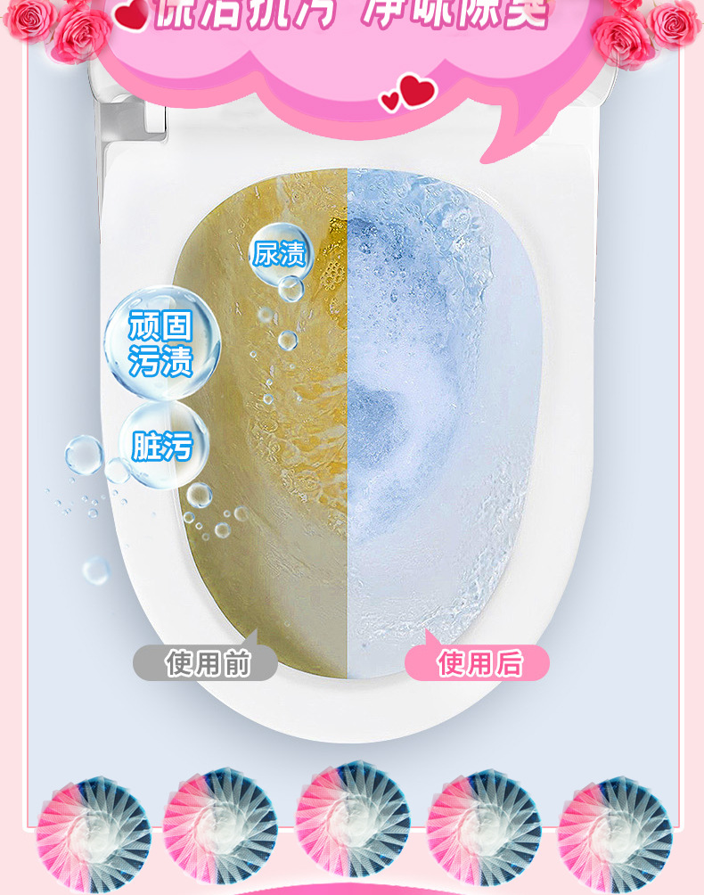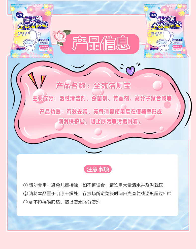 春节代发蓝泡泡粉蓝双色洁厕宝除臭除垢香薰玫瑰花马桶洁厕块