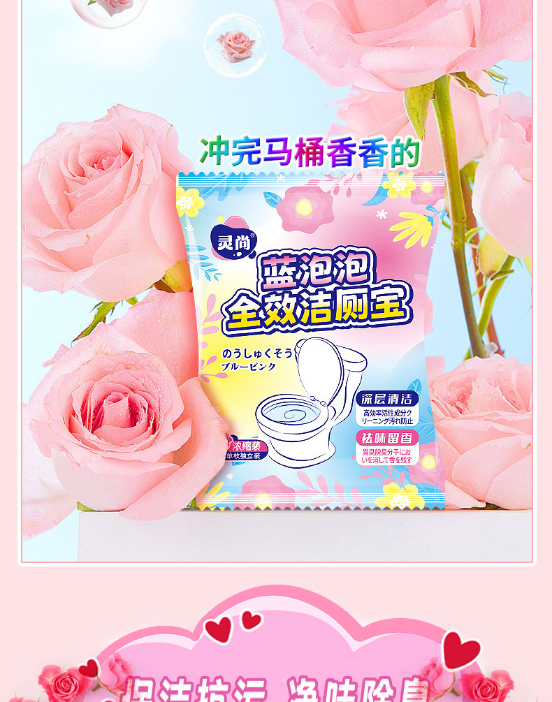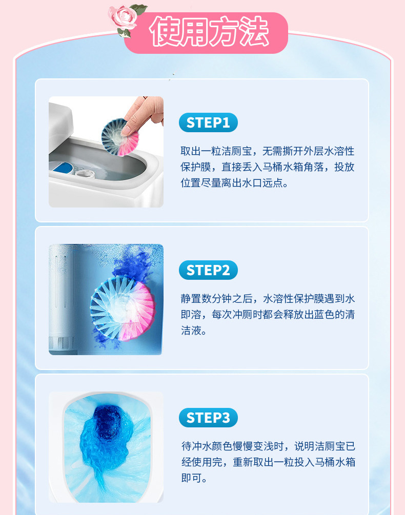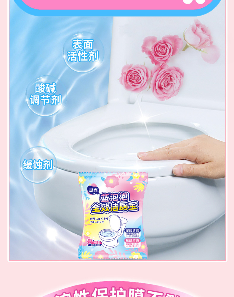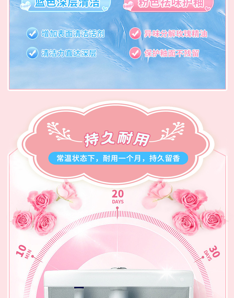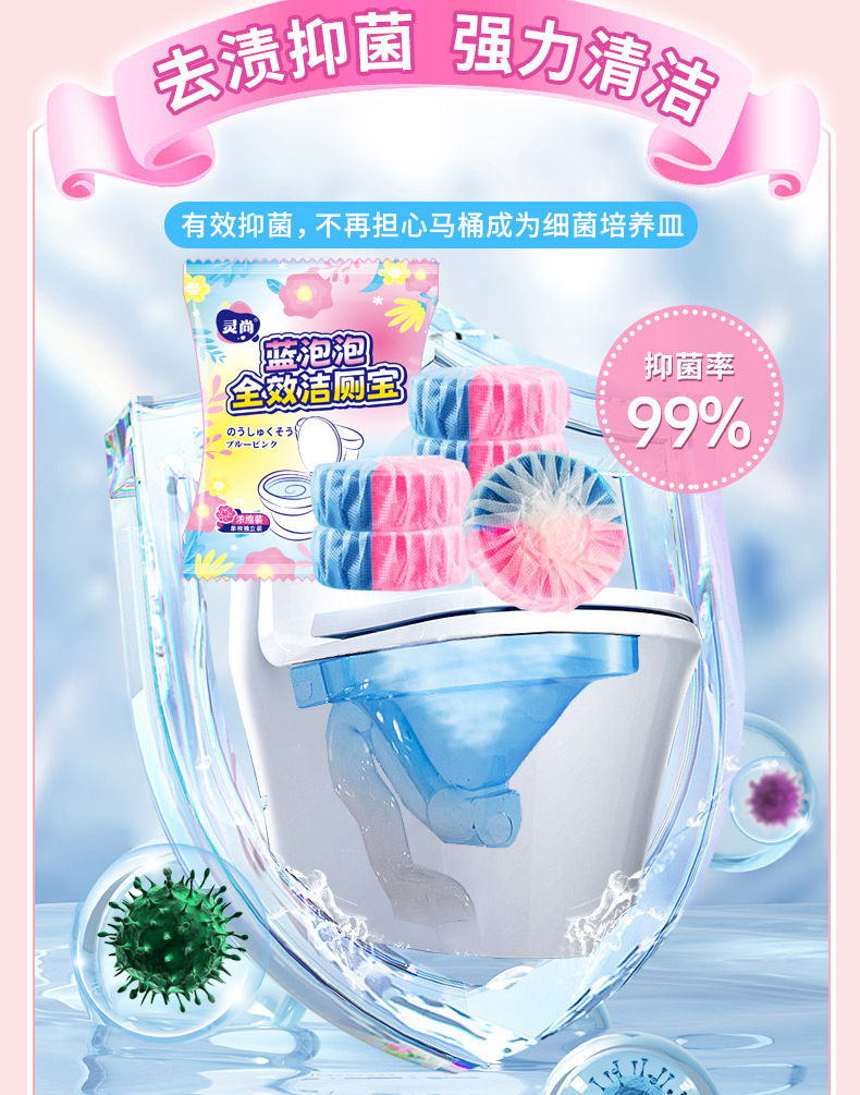 春节代发蓝泡泡粉蓝双色洁厕宝除臭除垢香薰玫瑰花马桶洁厕块